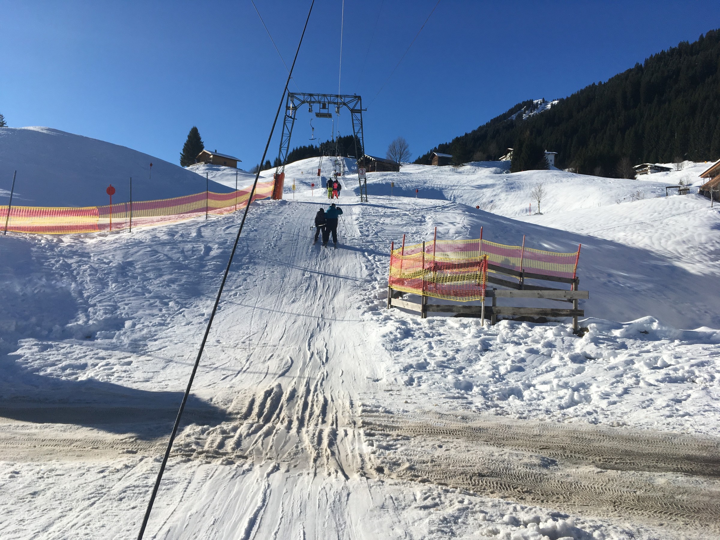 Daneben war die Freundin auch nicht ganz so fit und das Material hakte etwas, da passten die kurzen Pisten im Tal auch gut dazu. Der sportliche Aspekt stand klar im Hintergrund, zumal ich selber auch eher der Genussfahrer bin. Auch vom Wetter her waren es ja nur zwei wirklich gute Tage, da wurde uns sicherlich nicht langweilig. Passend zu deinem Radio gab es natürlich auch viele Fahrten an meinem Lieblingslift - ich meine natürlich den Schlößle, den Kult-Kurzbügler in Hirschegg