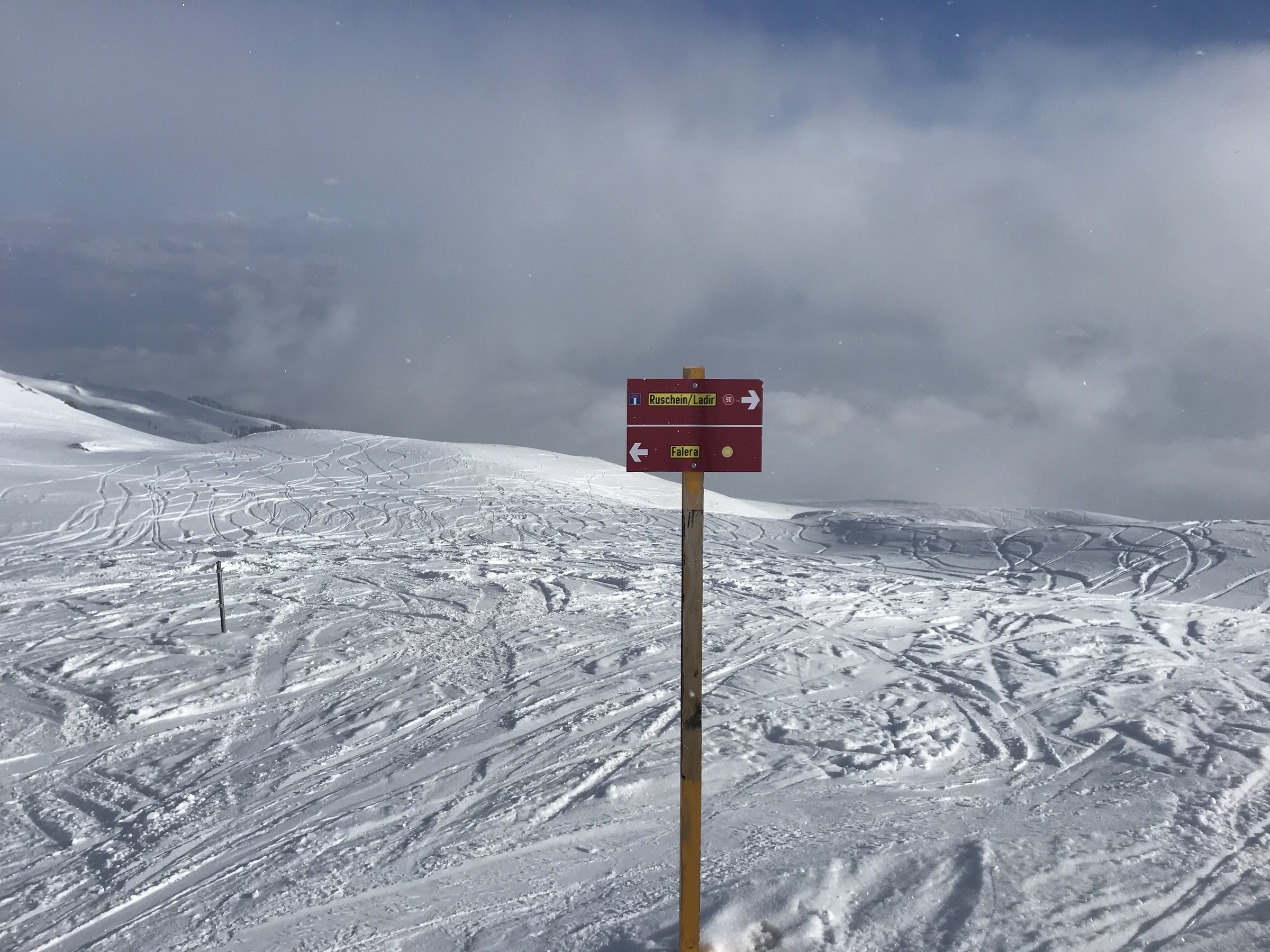 Zufällig erreiche ich aber Masegn unmittelbar in dem Moment, als Lavadinas und die Vorab-EUB öffnen. Entsprechend frisch sind die Pisten: