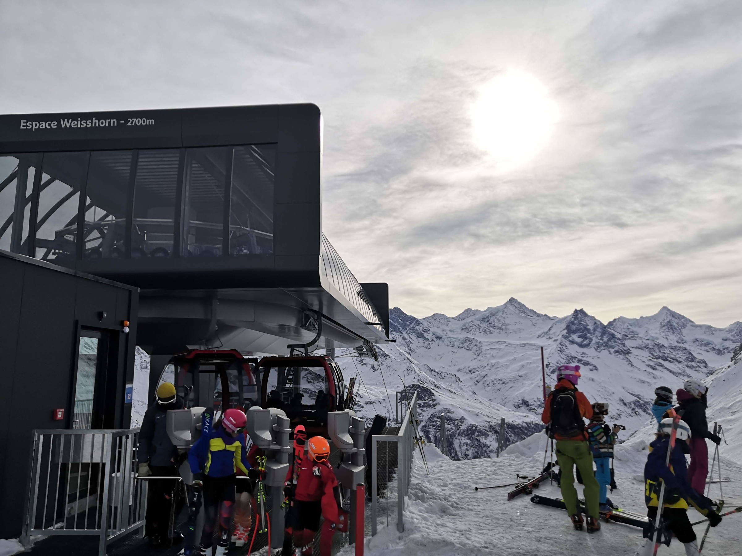 In Zinal gibt es ja heuer einen neuen Zustieg aus dem Dorf, eine 10-EUB von Garaventa. Dank ihr kommt man direkt zur Verbindungs-PB nach Grimentz und man kann die Aussicht beim Anstieg ins Skigebiet geniessen. Im Zuge des Neubaus gab es auch einen neuen Skiraum an der Talstation. Er ist relativ teuer, jedoch werden die Schuhhaken usw alle beheizt. Weil die Bahnen im Gebiet erst ziemlich spät öffnen und wenig später auch die Skischule beginnt, muss man an beiden Talstationen zwischen 9:30 und 10:30 manchmal 20. min warten. Aus der neuen Bahn sieht man zwischen Stütze 3 und 5 oft Gämsen und weiter oben das Matterhorn, was mit den Panoramafenstern wirklich toll ist. Die 2. Sektion würde eigentlich tolle Wiederholungsfahrten ermöglichen, immer die Skis auszuziehen ist jedoch etwas mühsam.