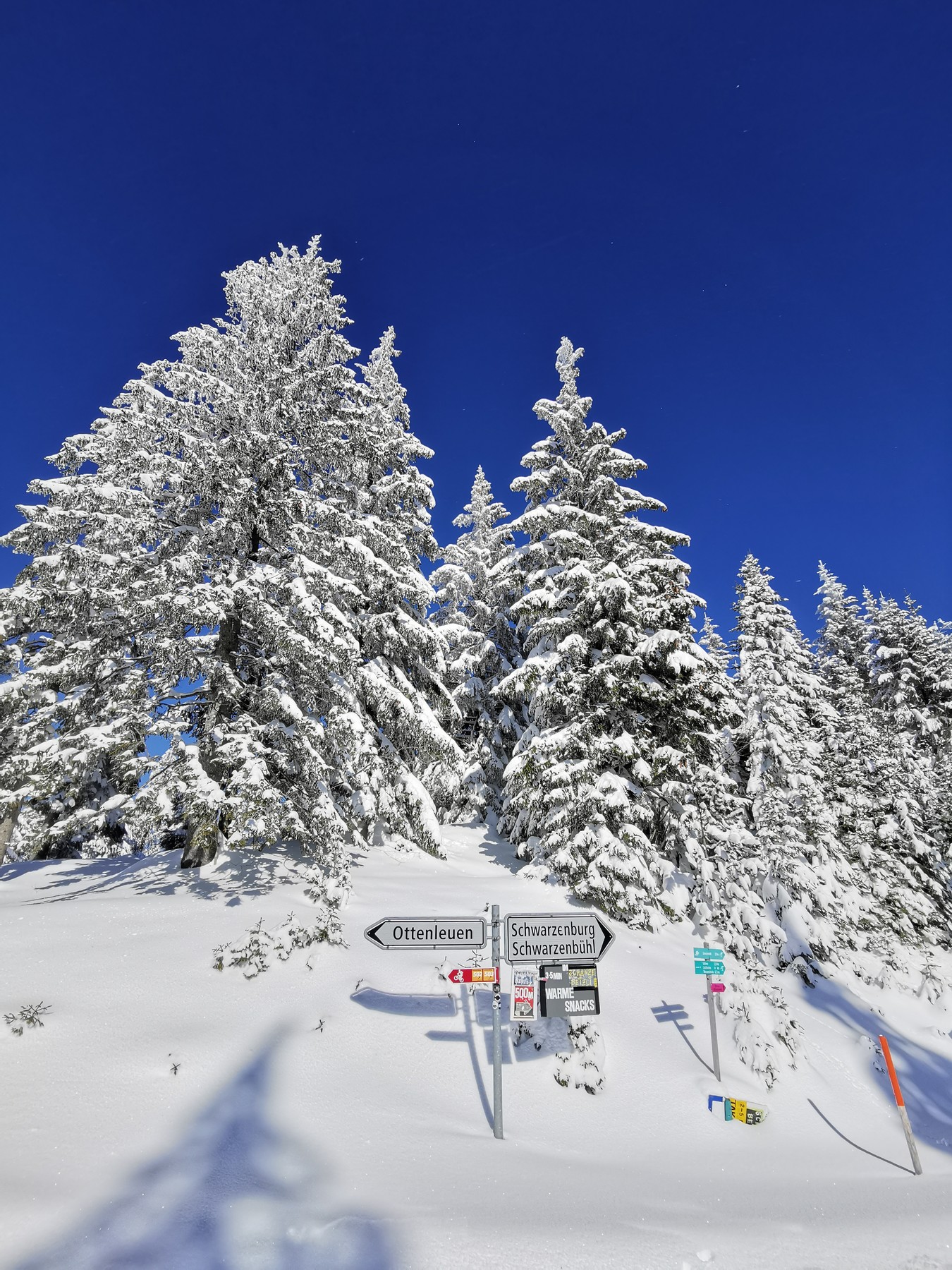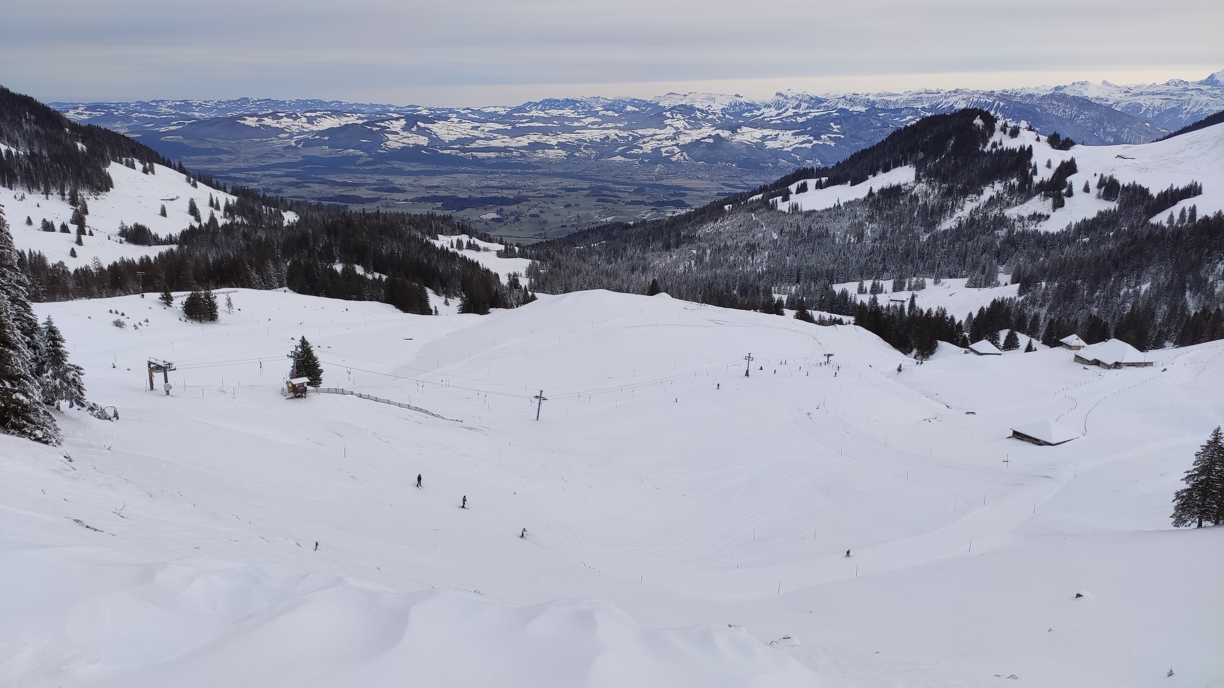 Bin heute mal am Gurnigelpass vorbeigekommen und dabei ein paar Bilder vom Skigebiet gemacht. Wetter war etwas bedeckt, die Sonne hat sich aber noch mit einem Halo durchkämpfen können. Deswegen war ich auch nur zu Fuss unterwegs, hat sich für mich nicht wirklich gelohnt, aufs Brett zu steigen. Die Pisten am Bügellift sahen ganz passabel aus, am Tellerlift waren einige dunkle Flecken zu sehen. War relativ viel Betrieb, gegen Mittag wurden dann die Parkplätze voll. Es kommen aber auch viele nur zum Wandern, Langlaufen oder Schlitteln. Ein Take Away gibt's auch. Abseits der Piste war relativ wenig Schnee.