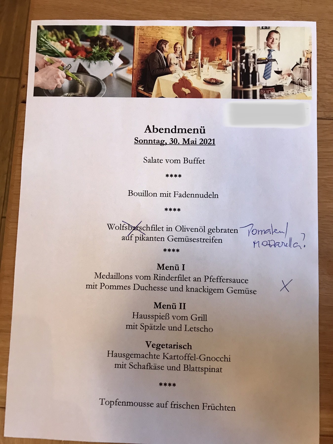 Nach 131 Skitagen in der Schweiz (die komplette Liste inkl. sämtlicher Berichte findet man hier) steht heute endlich mal seit 22.10.20 wieder ein Skitag in Österreich auf dem Programm. Gestern Nachmittag fuhr ich nach Landeck und bezog ein schönes und preiswertes 4*-Hotel für zwei Nächte, das ich einige Tage zuvor gebucht hatte: Die Wellnessanlage hatte ich für mich alleine: Beim Abendessen waren es dann 10 Personen und alles war sehr gut und gemütlich: Eigentlich wollte ich ja den ersten Tag auf dem Pitztaler Gletscher verbringen und den zweiten auf dem Kaunertaler, doch wegen der Ausreisetestpflicht, liess ich das bleiben. Ich hatte mich für Österreich entschieden, da ich als seit 22 Tagen Erstgeimpfter seit wenigen Tagen testfrei einreisen kann. Da kann es doch nicht sein, dass ich mich dann doch noch dieser Testerei unterziehen müsste. Und weil mir der Kaunertaler für zwei Tage zu langweilig ist, nehme ich halt 2x 1h zusätzliche Autofahrt auf mich. Pünktlich um 8.15 Uhr kriege ich in der Tiefgarage einen Parkplatz direkt beim Ausgang, weil die doch recht vielen Autos wie üblich alle auf die Aussenparkplätze fahren. Die Wartezeiten an der 4EUB und der 2EUB betragen jeweils 4min, kein Problem. In der 5EUB sitze ich dann alleine. Los geht’s: Anschliessend fahre ich zum GB3. Die neue Kabine rauscht tatsächlich nicht mehr. Sehr angenehm. Etwas weniger angenehm ist die FFP2-Pflicht. Den ganzen Winter kam ich in der Schweiz mit einem gewöhnlichen Buff aus, jetzt muss ich mich am das Handling mit dieser Maske erst noch gewöhnen. Gut aber, dass an meiner Hauptbeschäftigungsanlage, der 3KSB der Buff akzeptiert wird. Leider ist meine Lieblingspiste 11R nicht offen, aber die 11L und die 12 sind beide gut zu fahren. Oben pulvrig griffig, unten etwas hart. Die Präparierung ist tuxtypisch nicht so gut, aber weit entfernt vom Acker am Titlis, aber auch weit entfernt von den perfekten Teppichen in Zermatt. Das Wetter könnte nicht perfekter sein. Morgens recht frisch, dann zunehmend wärmer, ohne dass es zu sulzig wird. Ein toller Frühling! An der 3KSB gibt es immer wieder einige Minuten Wartezeit, sonst aber nichts Nennenswertes. Das schwierigste war, einen Platz auf der Restaurantterrasse zu ergattern. Beim Eintreten in den SB-Bereich wird der Impfausweis kontrolliert. Was völlig Neues für mich, gibt es in der Schweiz nicht. Dafür habe ich jetzt einen Mickeymouse-Stempel auf der Hand