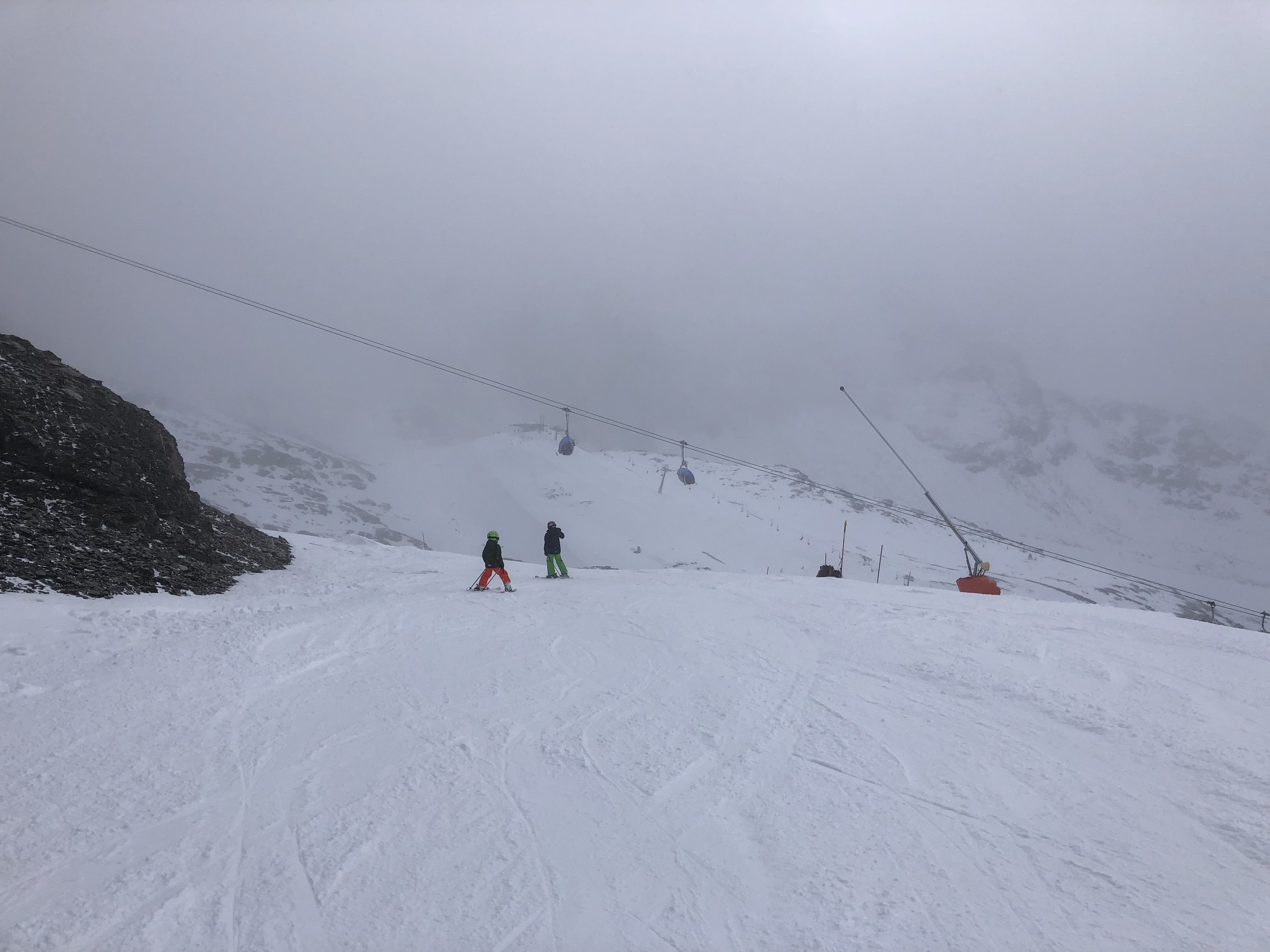 Die Pisten haben mich nach dem pitztal gestern positiv überrascht! Morgens echt hart aber sehr griffig. Unter der KSB kommt eine große Eisplatte durch aber um die nicht zu sehen muss man blind sein. Ansonsten kommt hier und da am Rand etwas Dreck mit nen paar Steinen durch aber da kommt man locker dran vorbei. Die Pisten an sich haben sie, meiner Meinung nach, gut hinbekommen, hier und da mal etwas Versatz in den Bulli spuren aber für mein Empfinden 100mal besser zu fahren als gestern am Gletscher. Los ist auch nicht wirklich viel jeden Sessel ohne Wartezeiten und alleine.