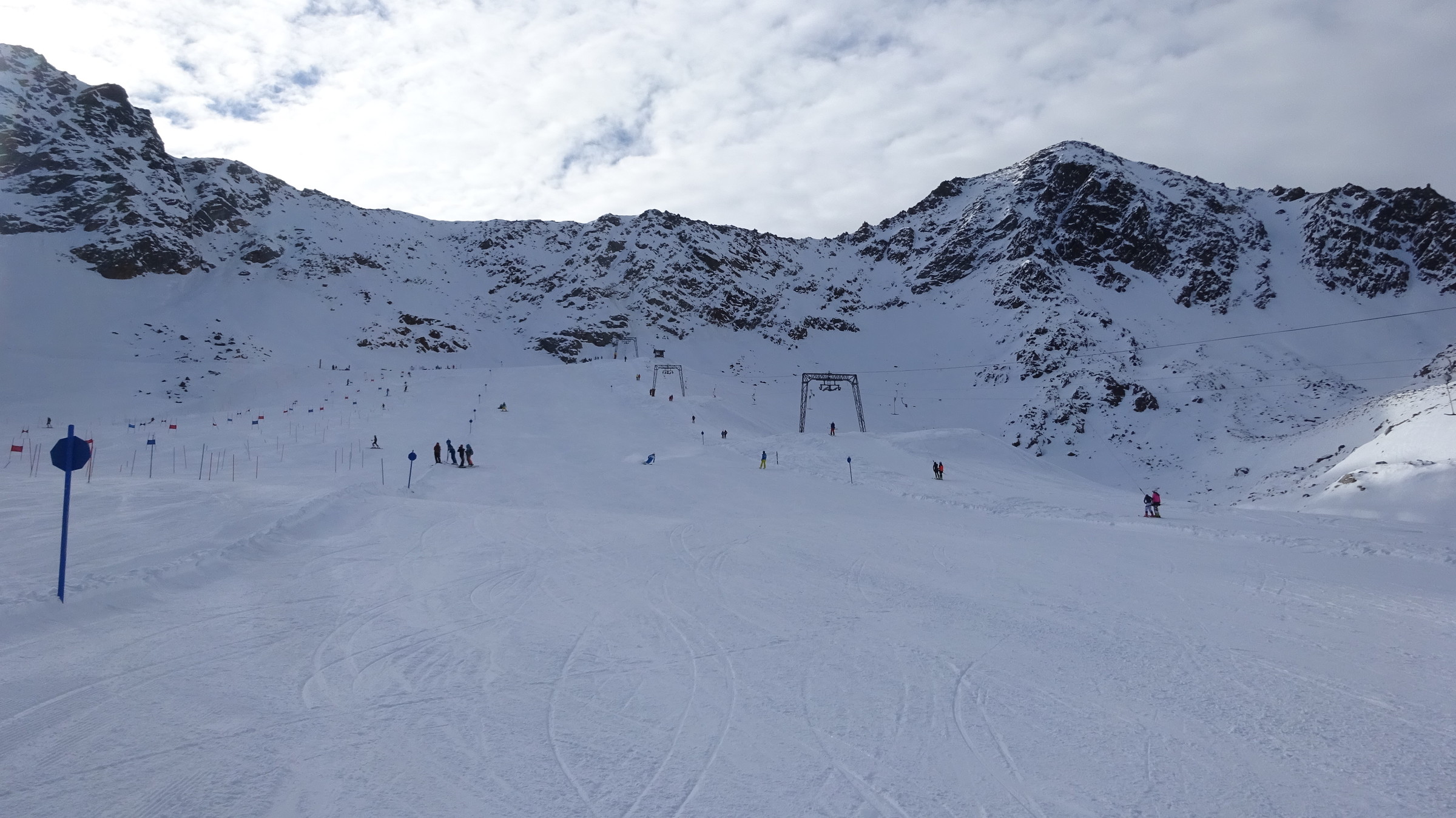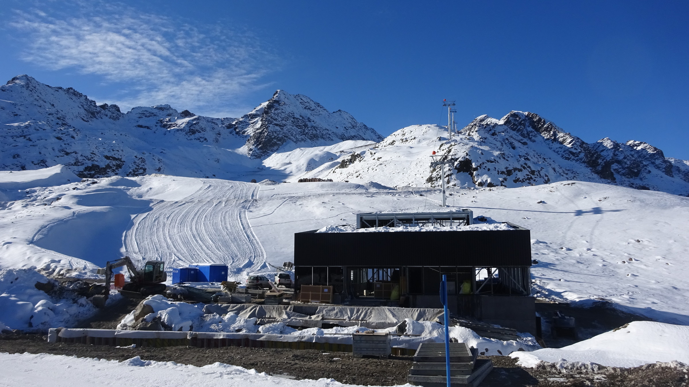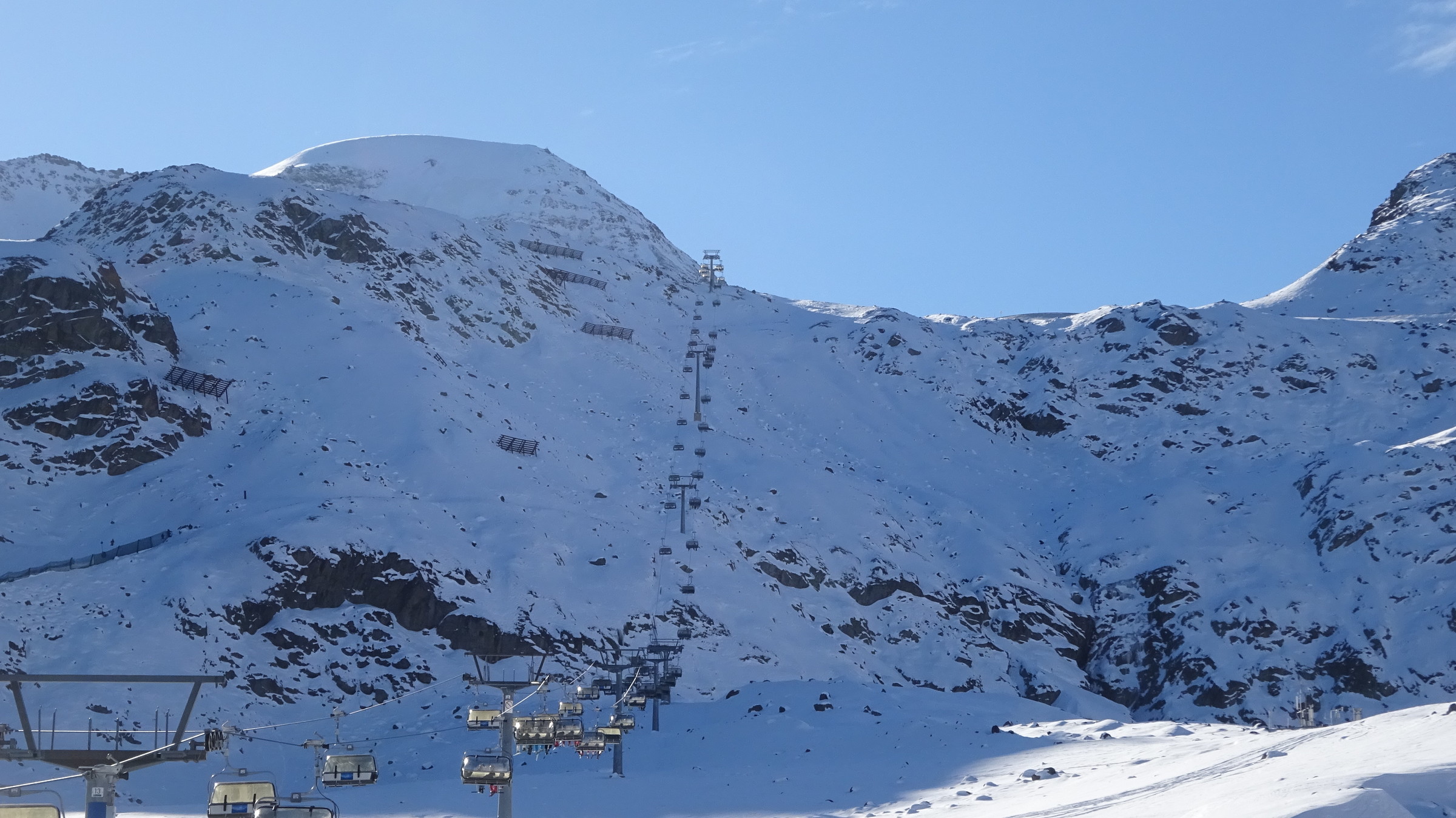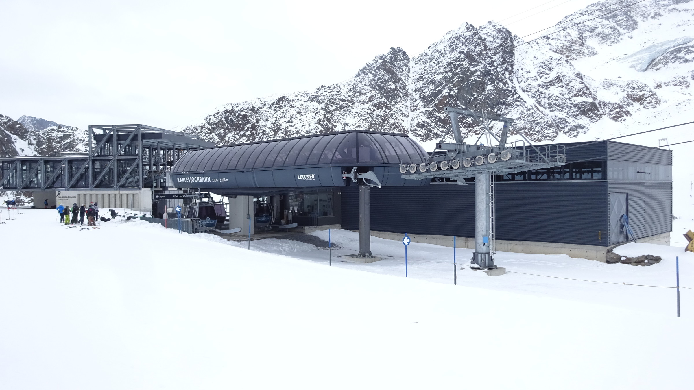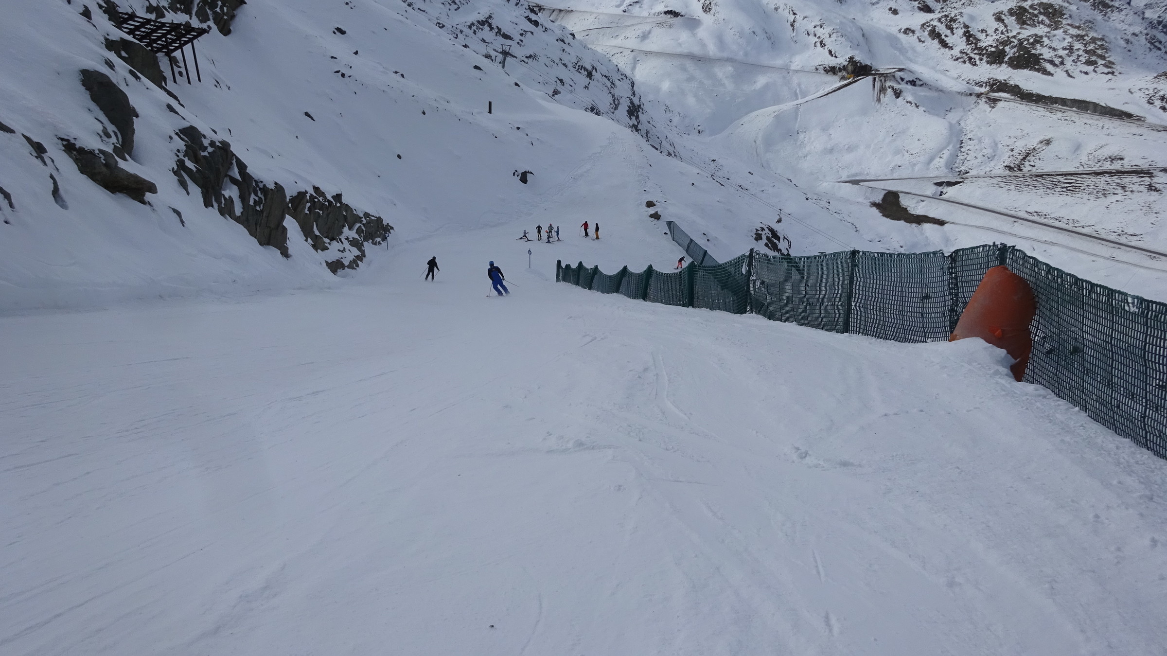 Morgendlicher Blick auf die Ochsenalmbahn vom Parkplatz aus, welcher um 8:30 nicht sehr gefüllt war. (Wir waren den ganzen Tag über der einzige Bus dort) Dann ging es zunächst gleich noch auf das Karlesjoch hinauf. Von dort aus hat man einen sehr schönen Ausblick in Richtung Südtirol VinschgauDie Karlesjochbahn, jedoch haben die an ihren beiden Kuppelbarenbahnen sehr komische Abstände. (z.B fehlen bei der Karlesjochbahn zwischendrin 2 Kabinen sodass, dort eine rießige Lücke entsteht:?: Blick auf die Piste Dann bin ich zunächst einmal von ganz oben bis nach unten gefahren. Die Pisten and der Karlesjochbahn wahren sehr schön sonnig. An der Ochsenalm war es sehr schattig aber die Pisten waren sehr schön griffigTalstation der neuen Weisseejochbahn. Es wurde sogar am Samstag gearbeitet EIn Blick auf die zukünftige Piste. Meiner Meinung nach wird das Pistentechnisch nix gescheites, da die wohl doch sehr schmal ausfallen wird