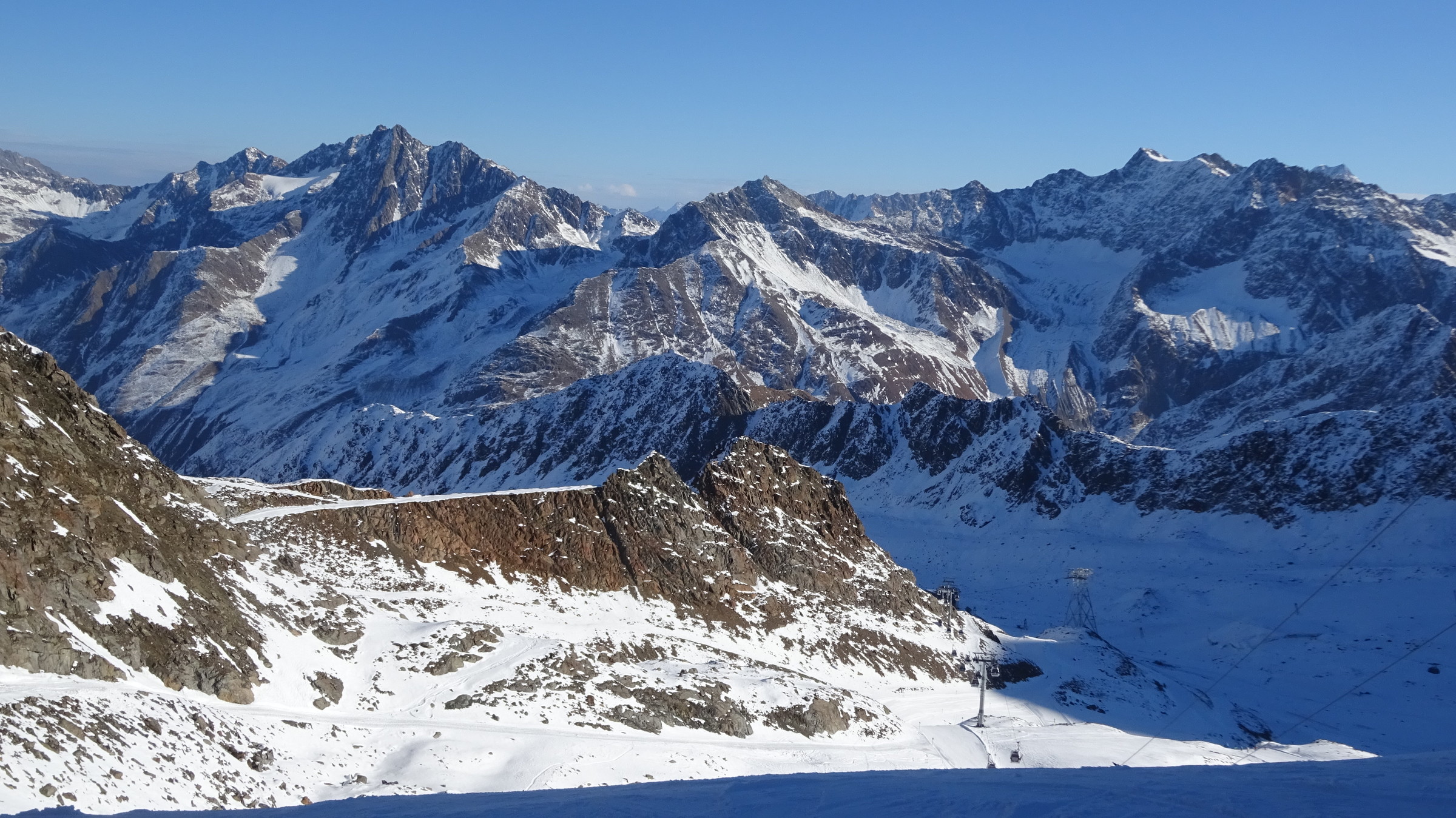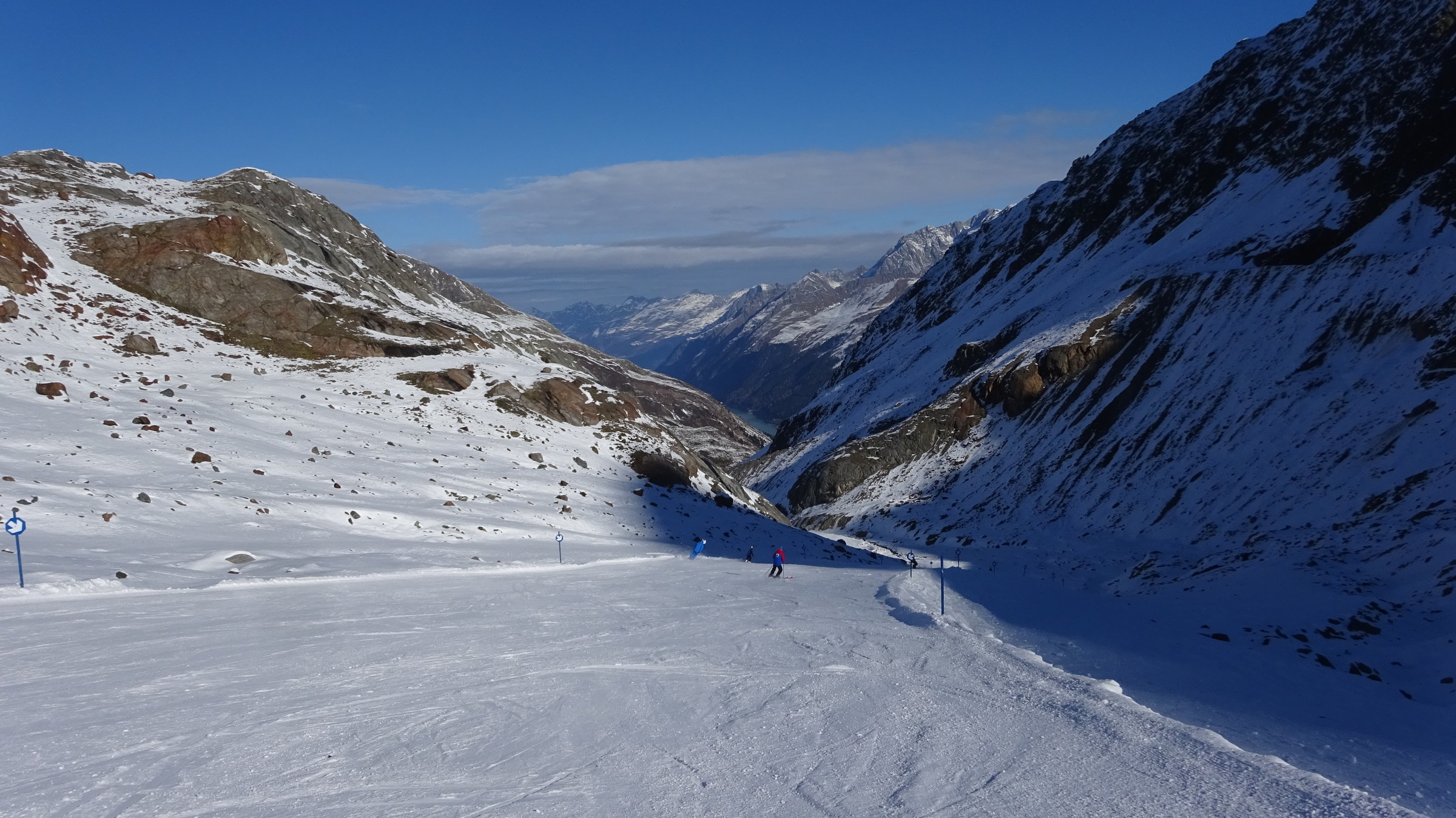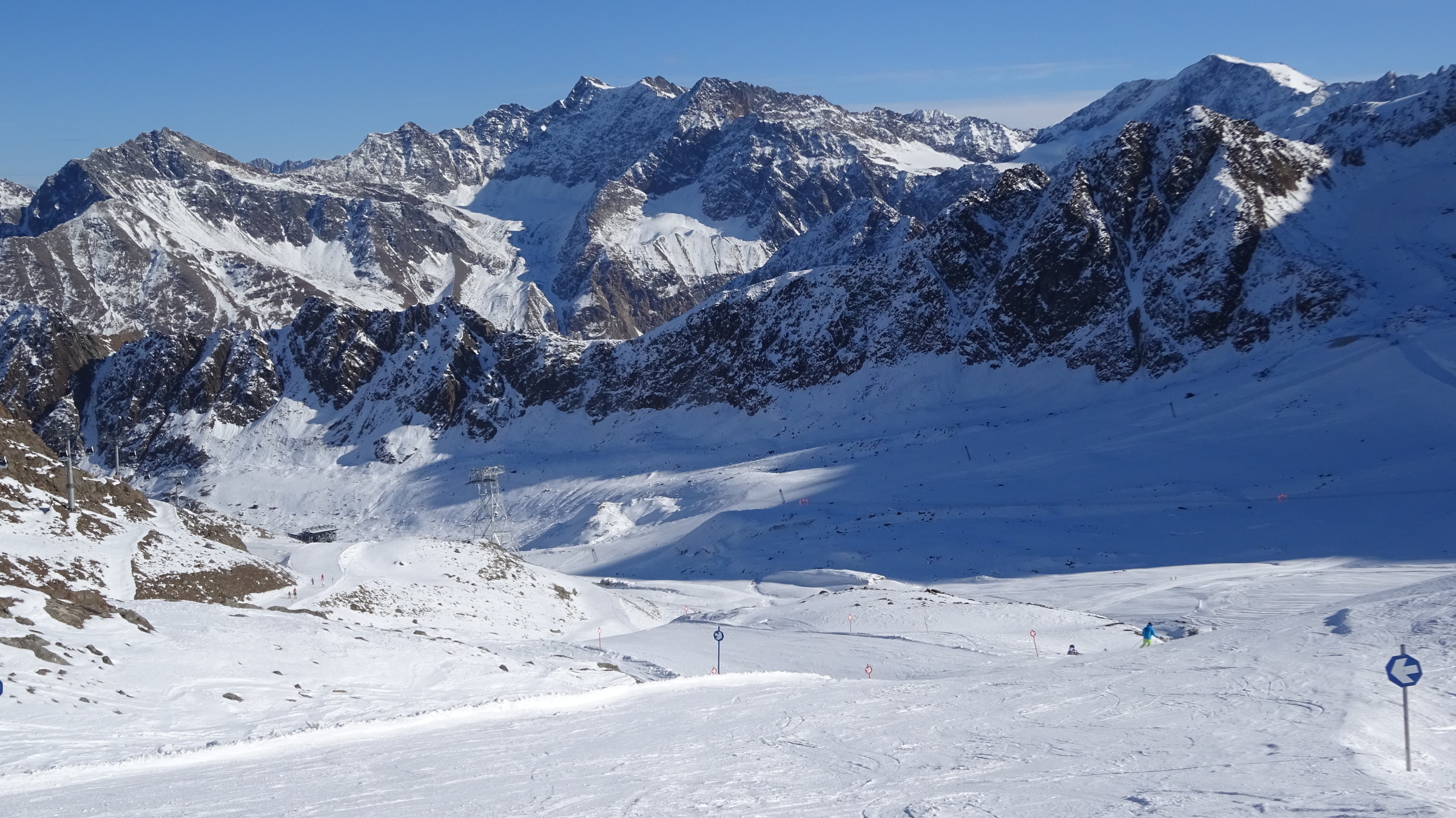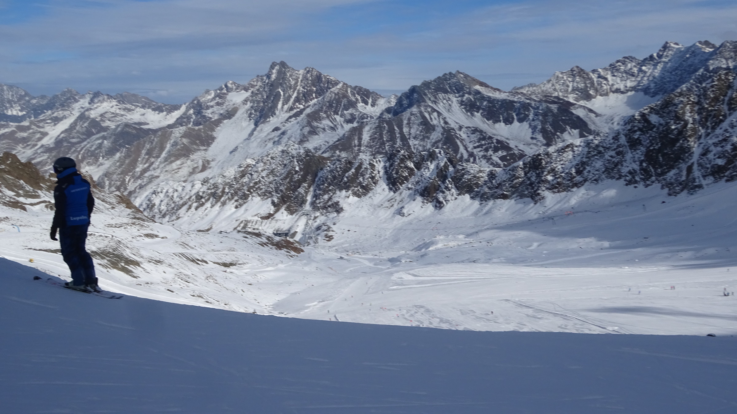 Morgendlicher Blick auf die Ochsenalmbahn vom Parkplatz aus, welcher um 8:30 nicht sehr gefüllt war. (Wir waren den ganzen Tag über der einzige Bus dort) Dann ging es zunächst gleich noch auf das Karlesjoch hinauf. Von dort aus hat man einen sehr schönen Ausblick in Richtung Südtirol VinschgauDie Karlesjochbahn, jedoch haben die an ihren beiden Kuppelbarenbahnen sehr komische Abstände. (z.B fehlen bei der Karlesjochbahn zwischendrin 2 Kabinen sodass, dort eine rießige Lücke entsteht:?: Blick auf die Piste Dann bin ich zunächst einmal von ganz oben bis nach unten gefahren. Die Pisten and der Karlesjochbahn wahren sehr schön sonnig. An der Ochsenalm war es sehr schattig aber die Pisten waren sehr schön griffigTalstation der neuen Weisseejochbahn. Es wurde sogar am Samstag gearbeitet EIn Blick auf die zukünftige Piste. Meiner Meinung nach wird das Pistentechnisch nix gescheites, da die wohl doch sehr schmal ausfallen wird