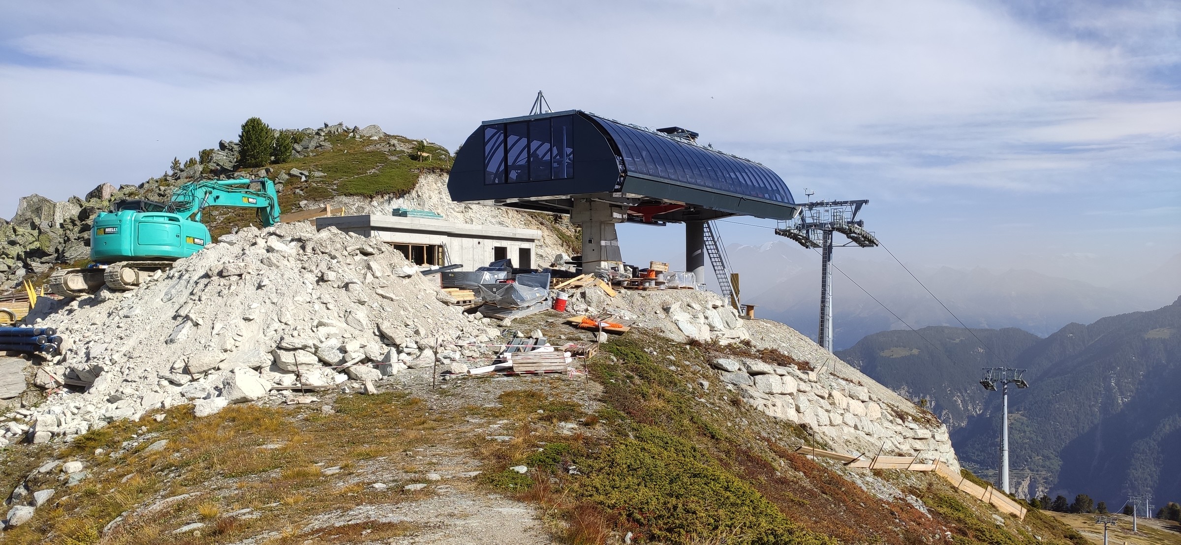 Ich habe heute mal in Vercorin eine Wandertour mit Infrastruktur-Spotting kombiniert entlang der neuen Bahn. Die Bergstation sieht schon recht komplett aus, nur das Wärter-Hüüsli wird noch gebaut. Kabel sind auch schon gespannt. Die nach unten versetzte Bergstation vom Cabanon SL steht noch nicht, dort wurde noch gebaggert. Die Talstation ist in etwa auf der Höhe der Kurve vom alten Schlepper, d.h. man verliert knapp 100 Höhenmeter, aber aus ökonomischen Gesichtspunkten hätte dort auch nicht wirklich eine Zwischenstation Sinn gemacht. Der Einstieg sieht sehr geräumig aus, der Platz ist gut gewählt. Die Sessel sind schon in der Nähe der Talstation deponiert. Beschneiungs-Equipment von Technoalpin habe ich auch unterwegs gesehen. Ich freue mich jedenfalls schon auf die neue Bahn.
