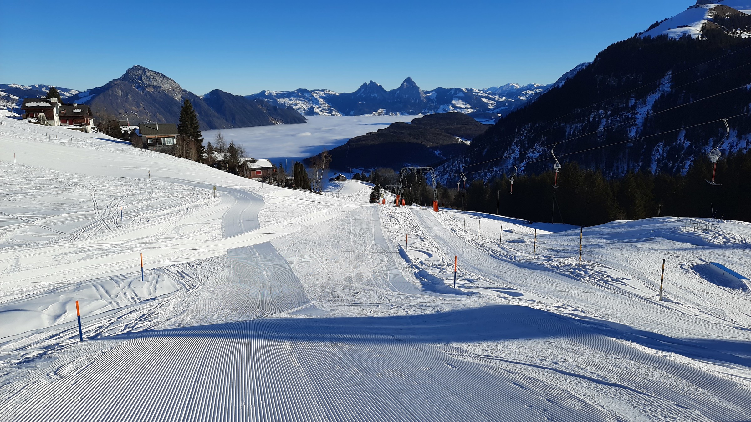 Nach Neuschnee direkt oder lieber warten? Klar die Talabfahrt nach Beckenried ist nur machbar wenn man hoch flexibel ist. Ist es schwer das Skigebiet ohne Nebel zu erleben?