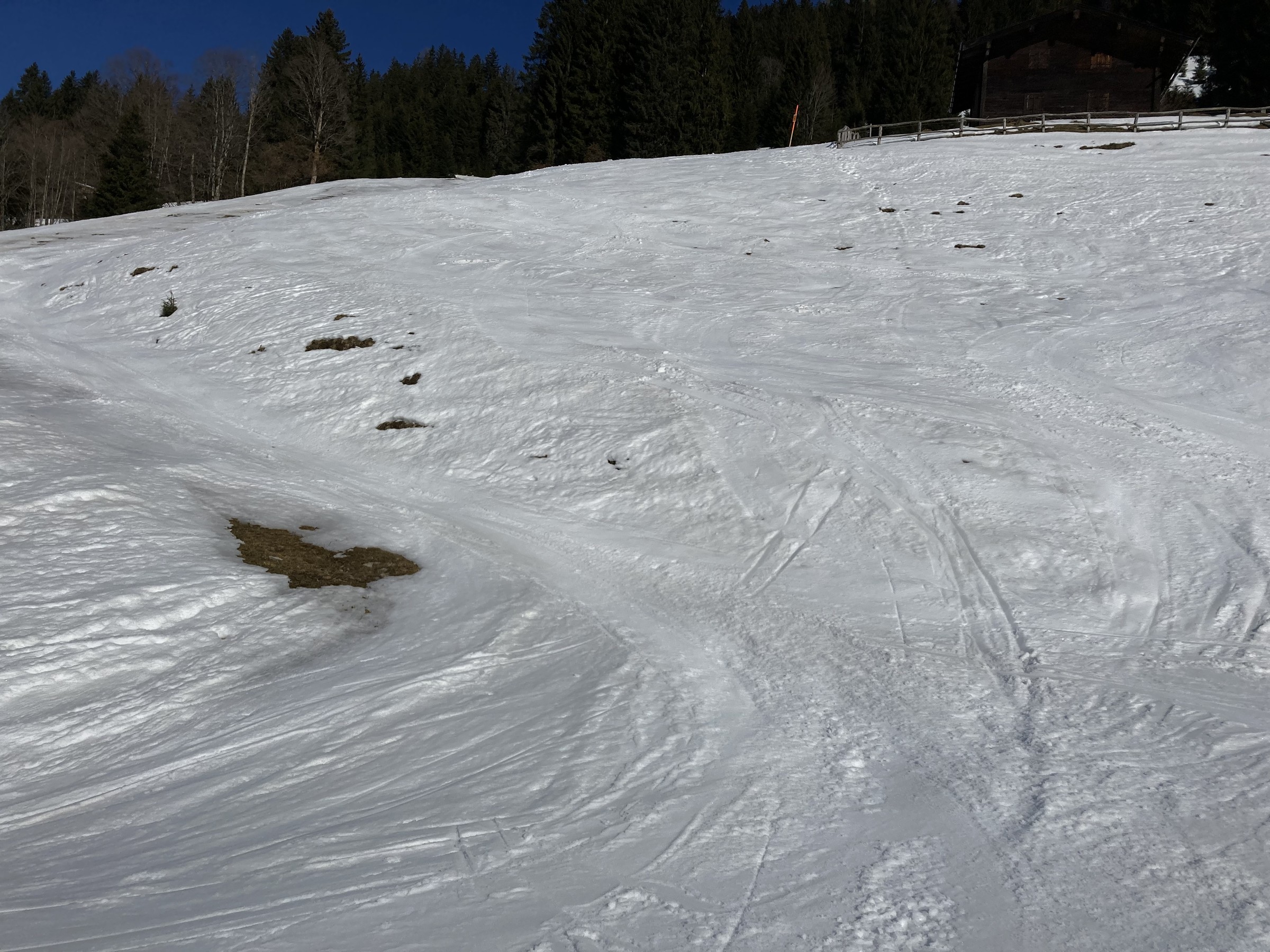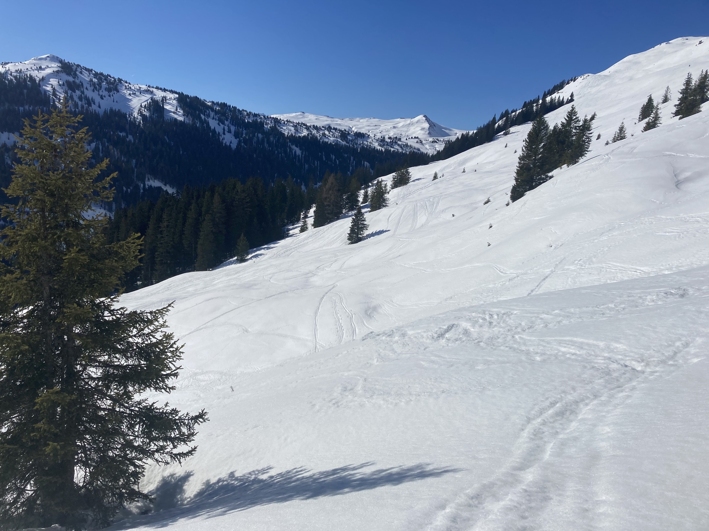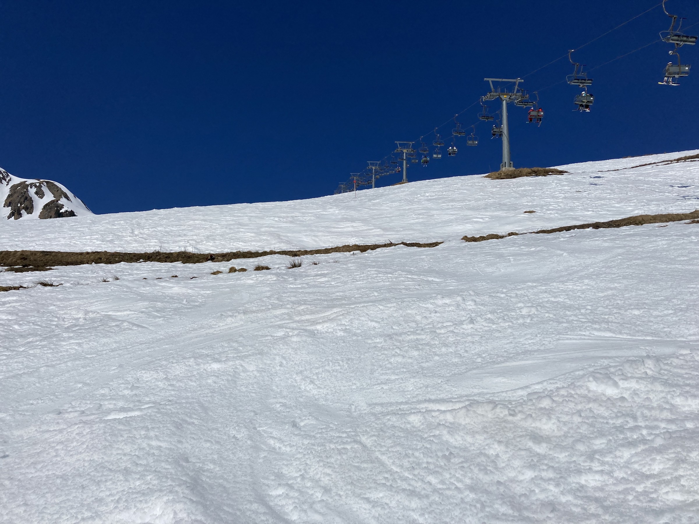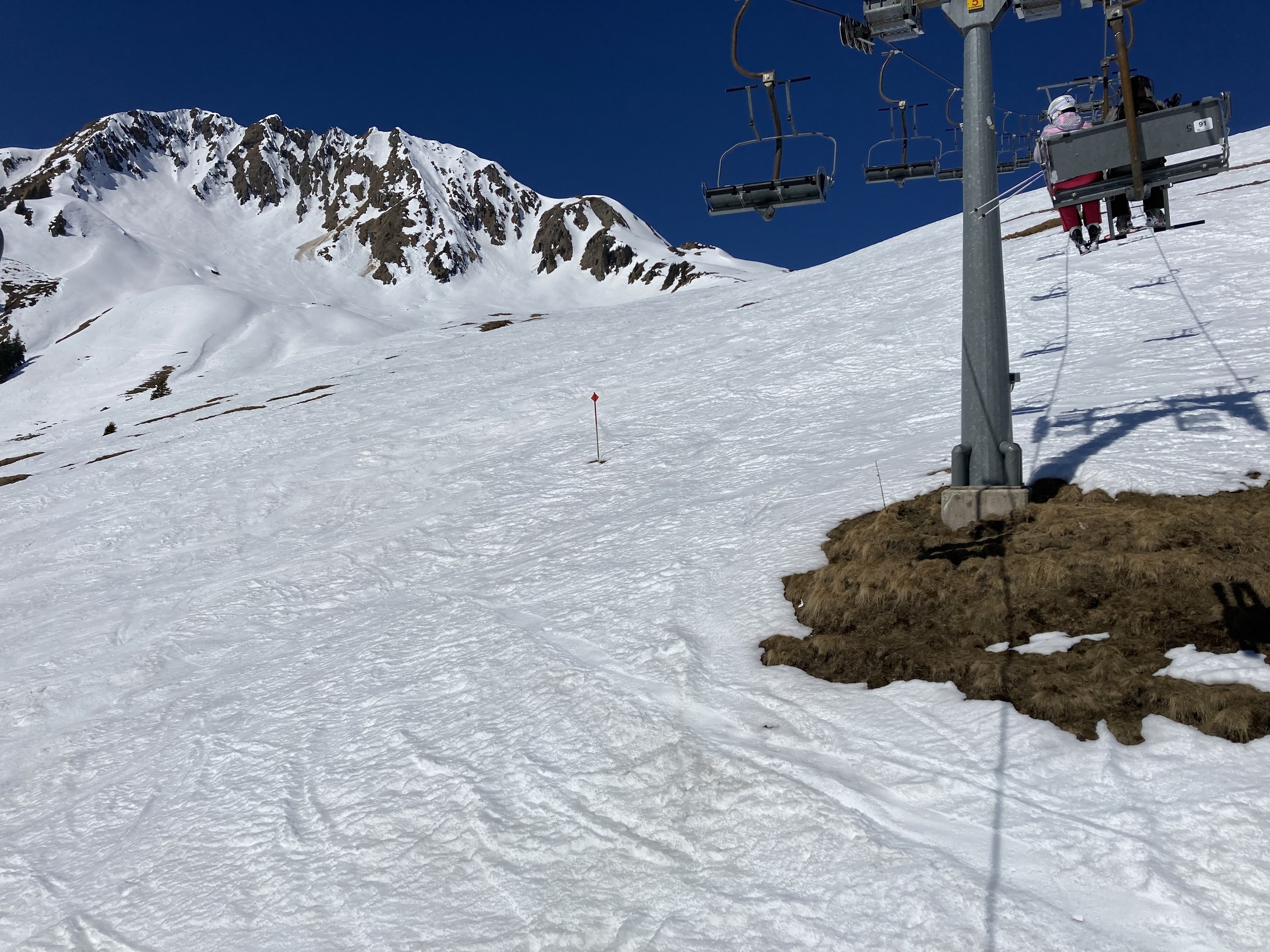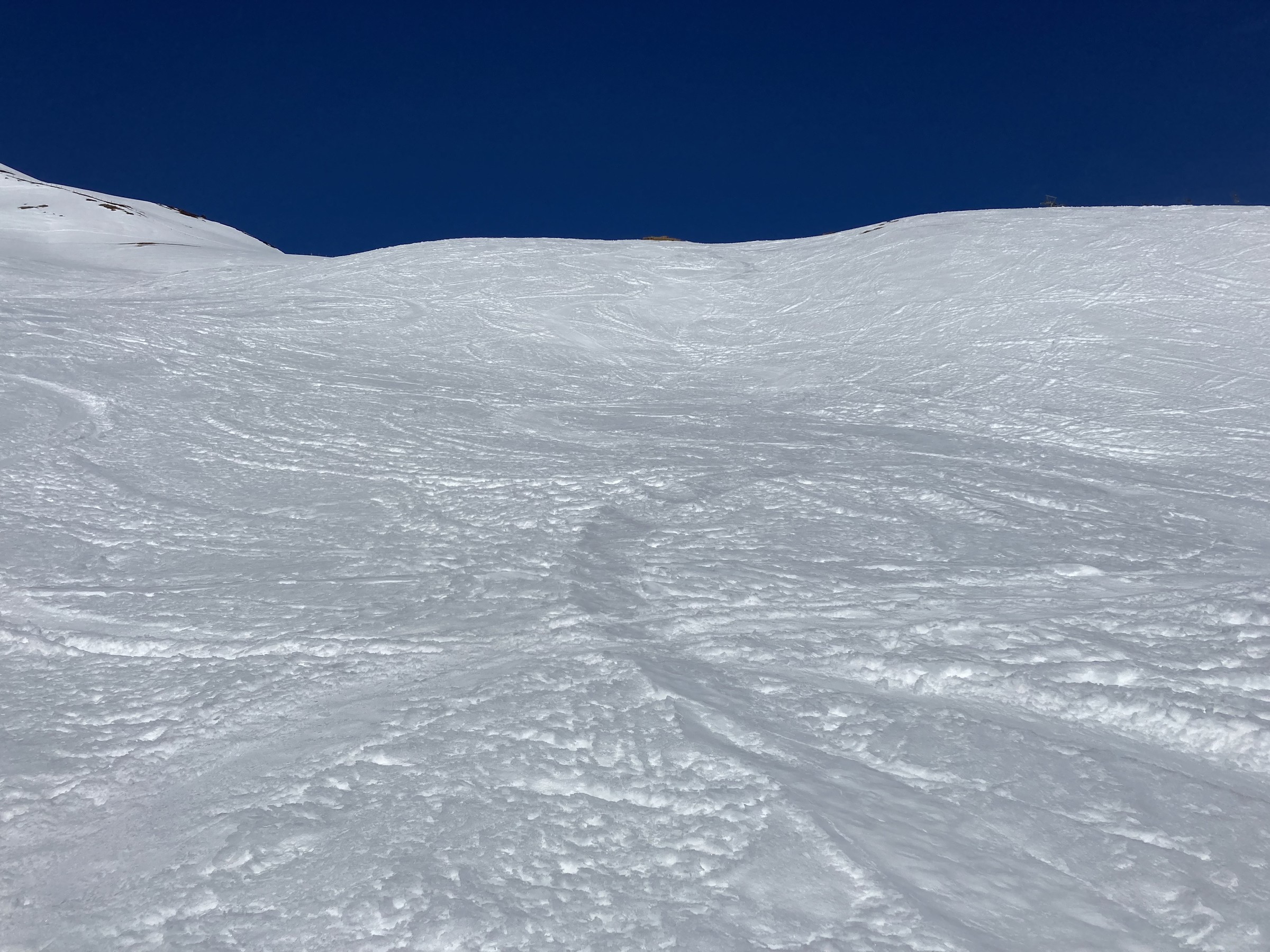 Die Schwarze Piste am Hochsaukaser sah ganz nett aus, aber ich bin ja nicht zum Pistenfahren gekommen. Auf dem Papier ideale Firnhänge, aber eben noch total umgegraben.