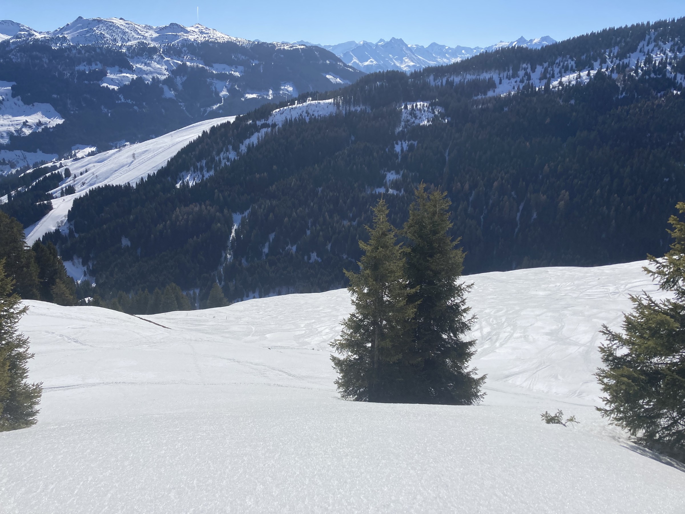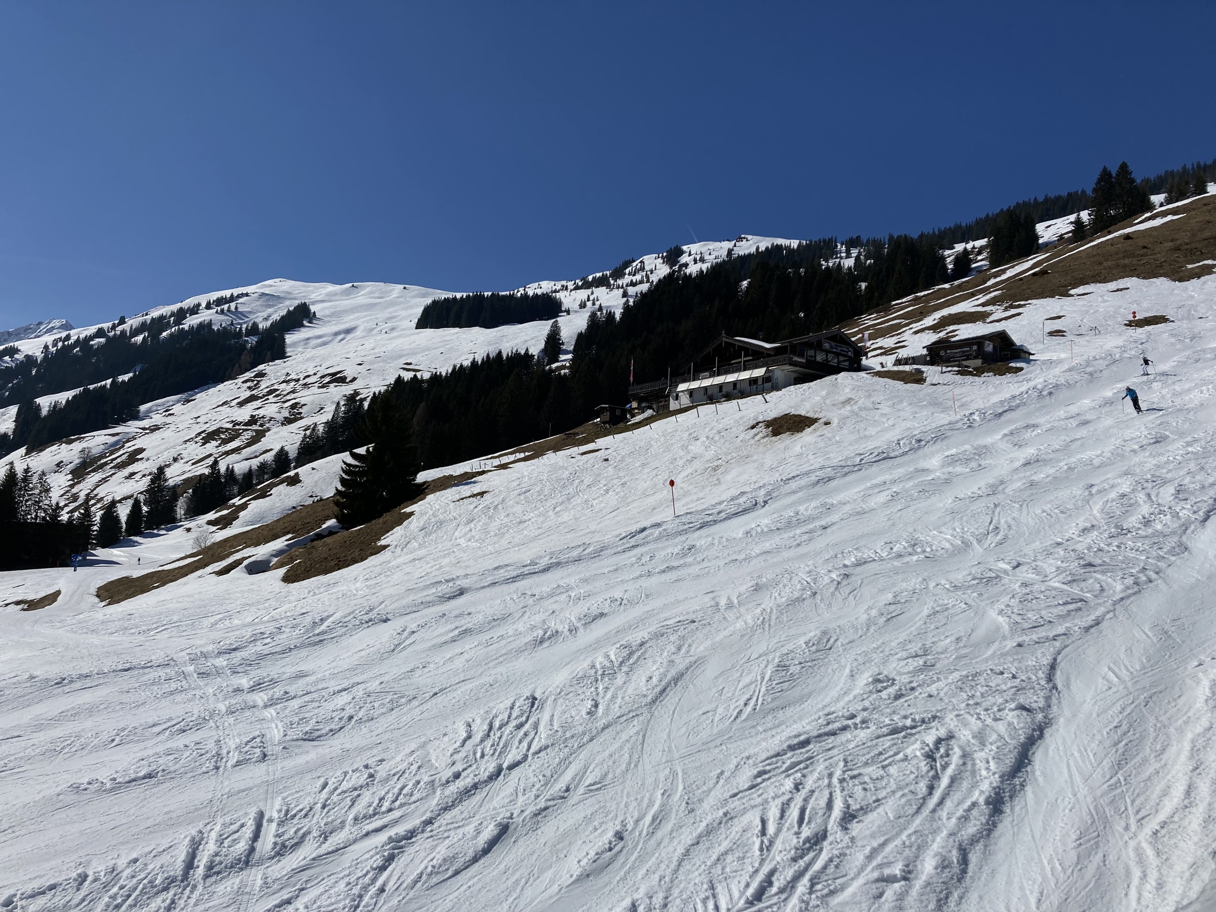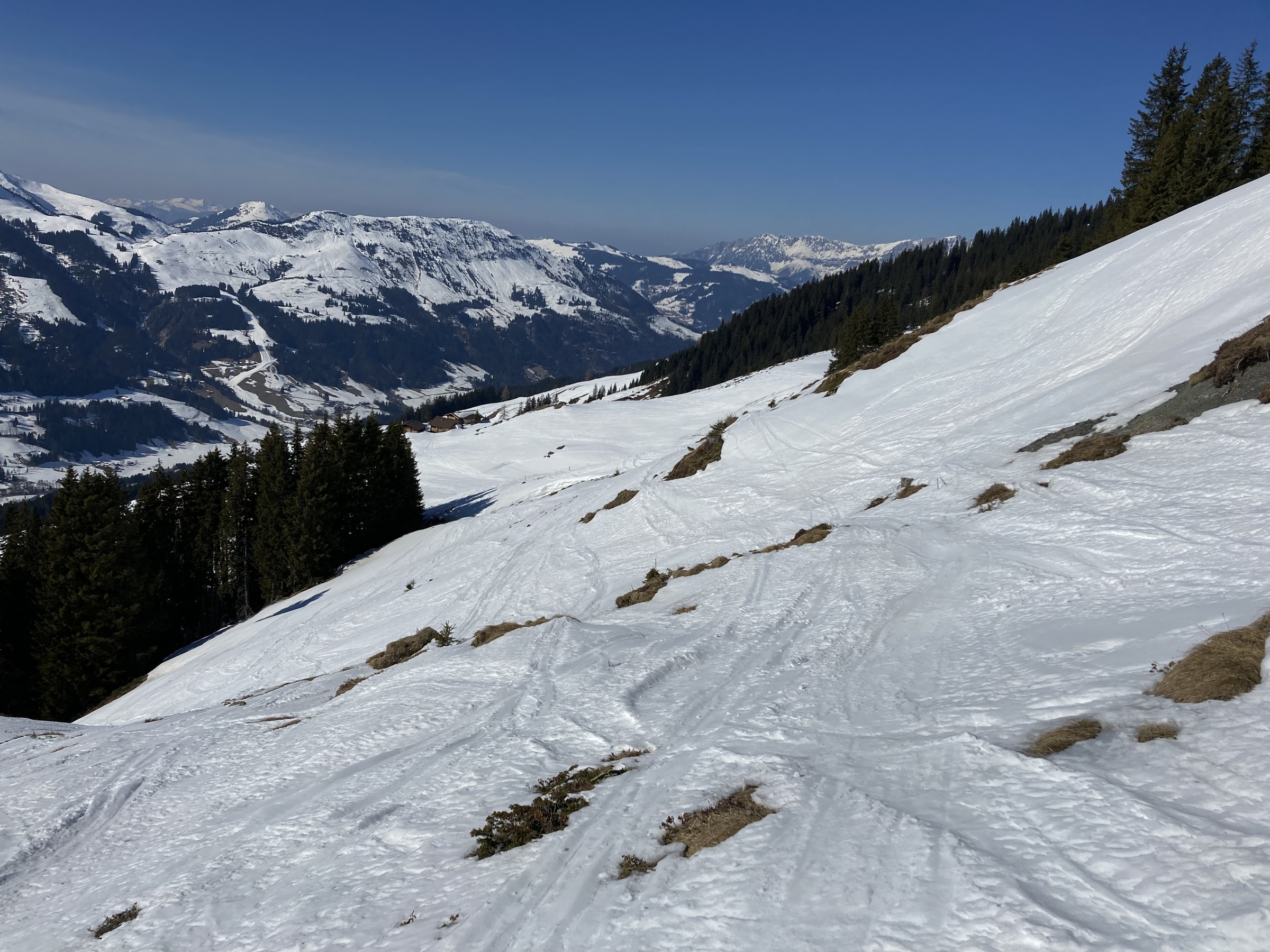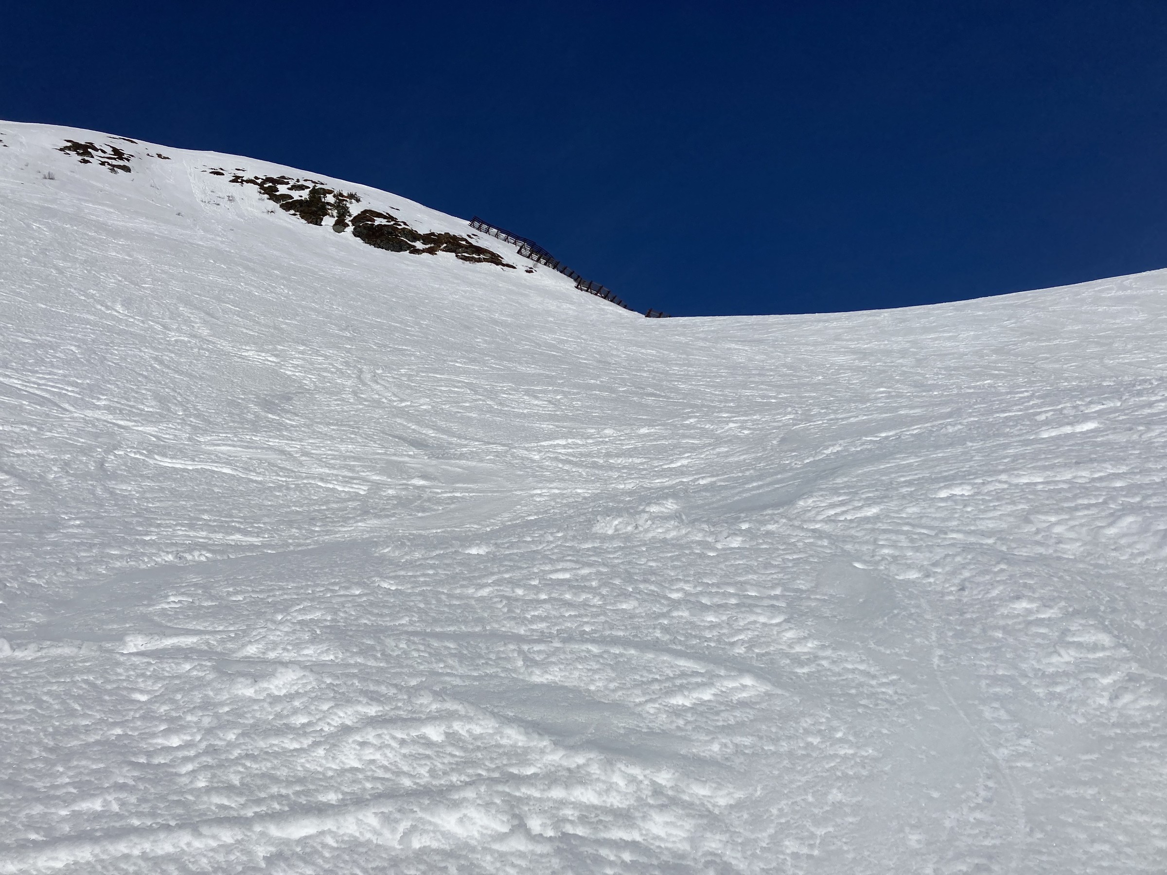 Die Schwarze Piste am Hochsaukaser sah ganz nett aus, aber ich bin ja nicht zum Pistenfahren gekommen. Auf dem Papier ideale Firnhänge, aber eben noch total umgegraben.