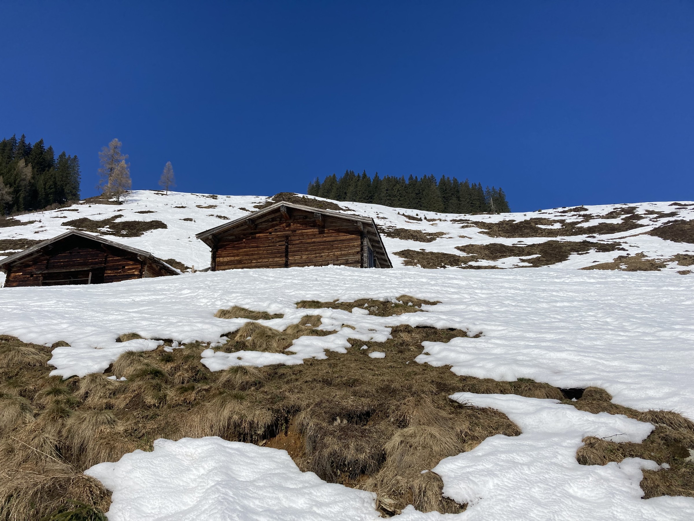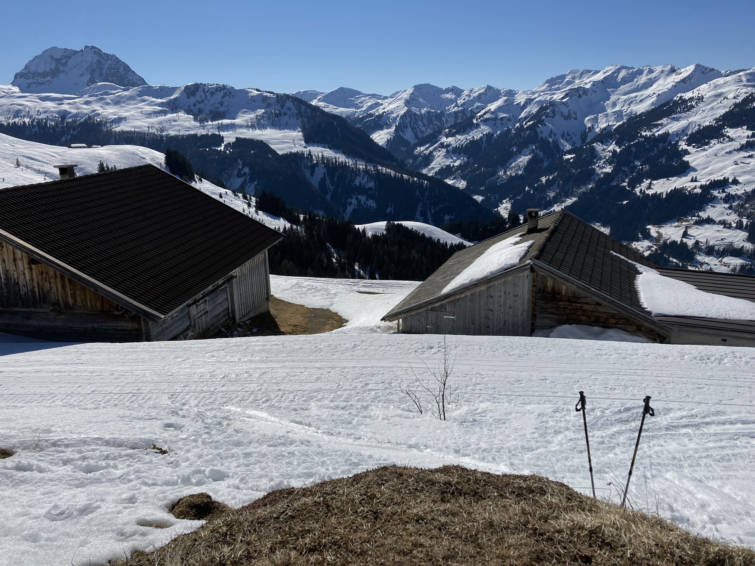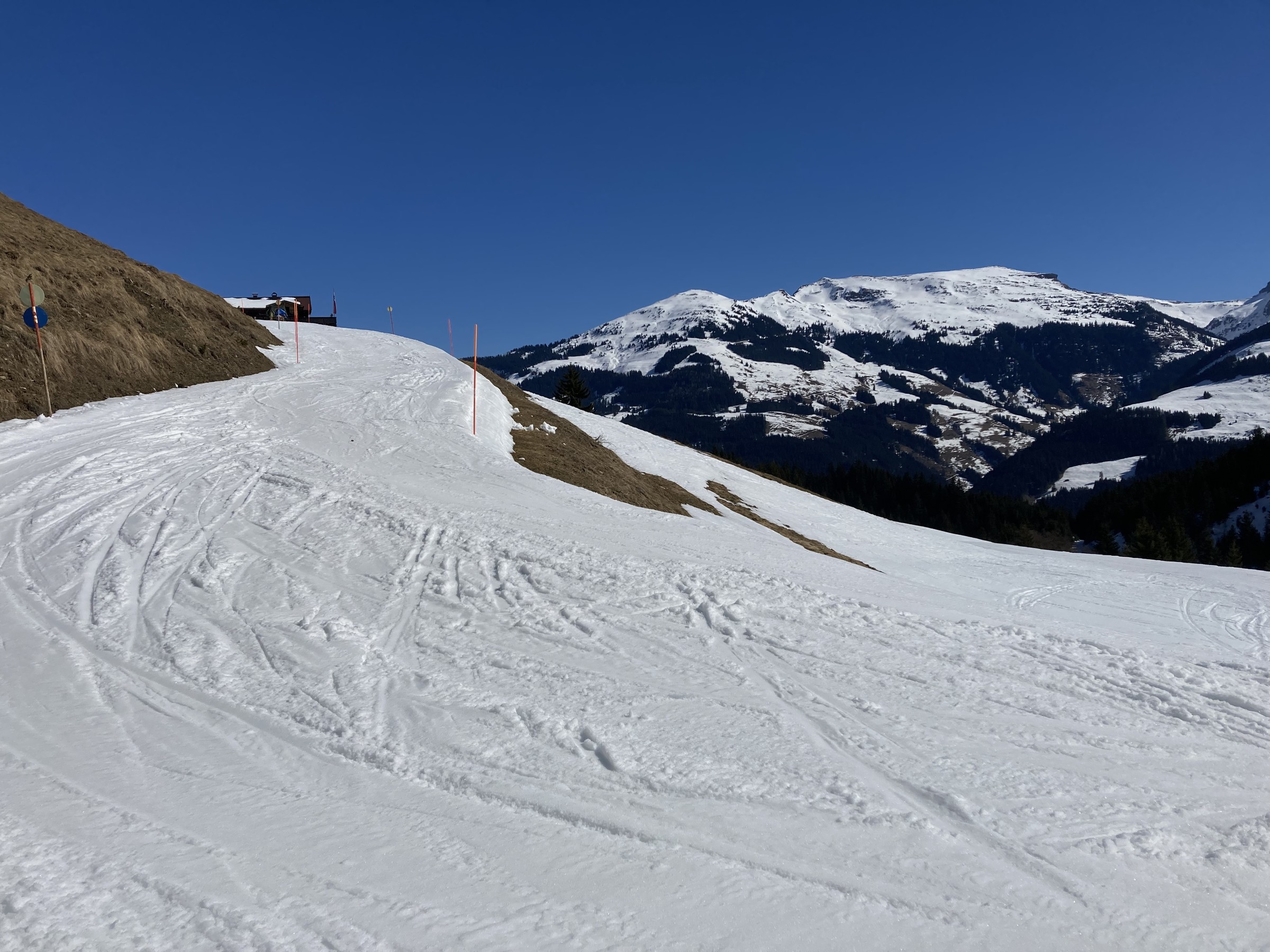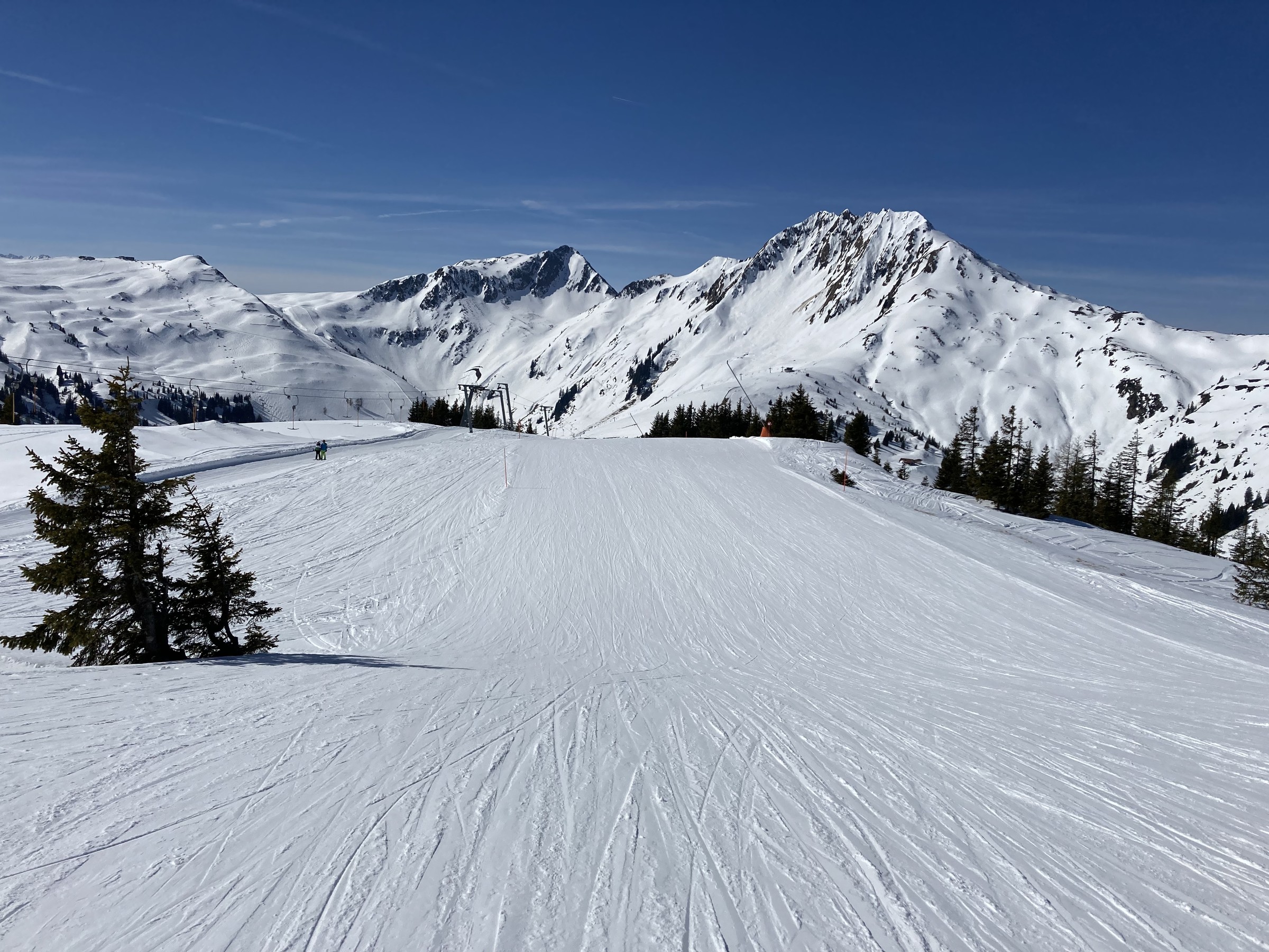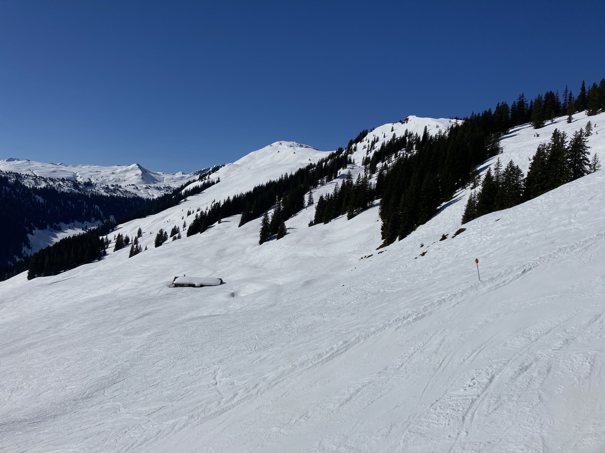 Die Schwarze Piste am Hochsaukaser sah ganz nett aus, aber ich bin ja nicht zum Pistenfahren gekommen. Auf dem Papier ideale Firnhänge, aber eben noch total umgegraben.