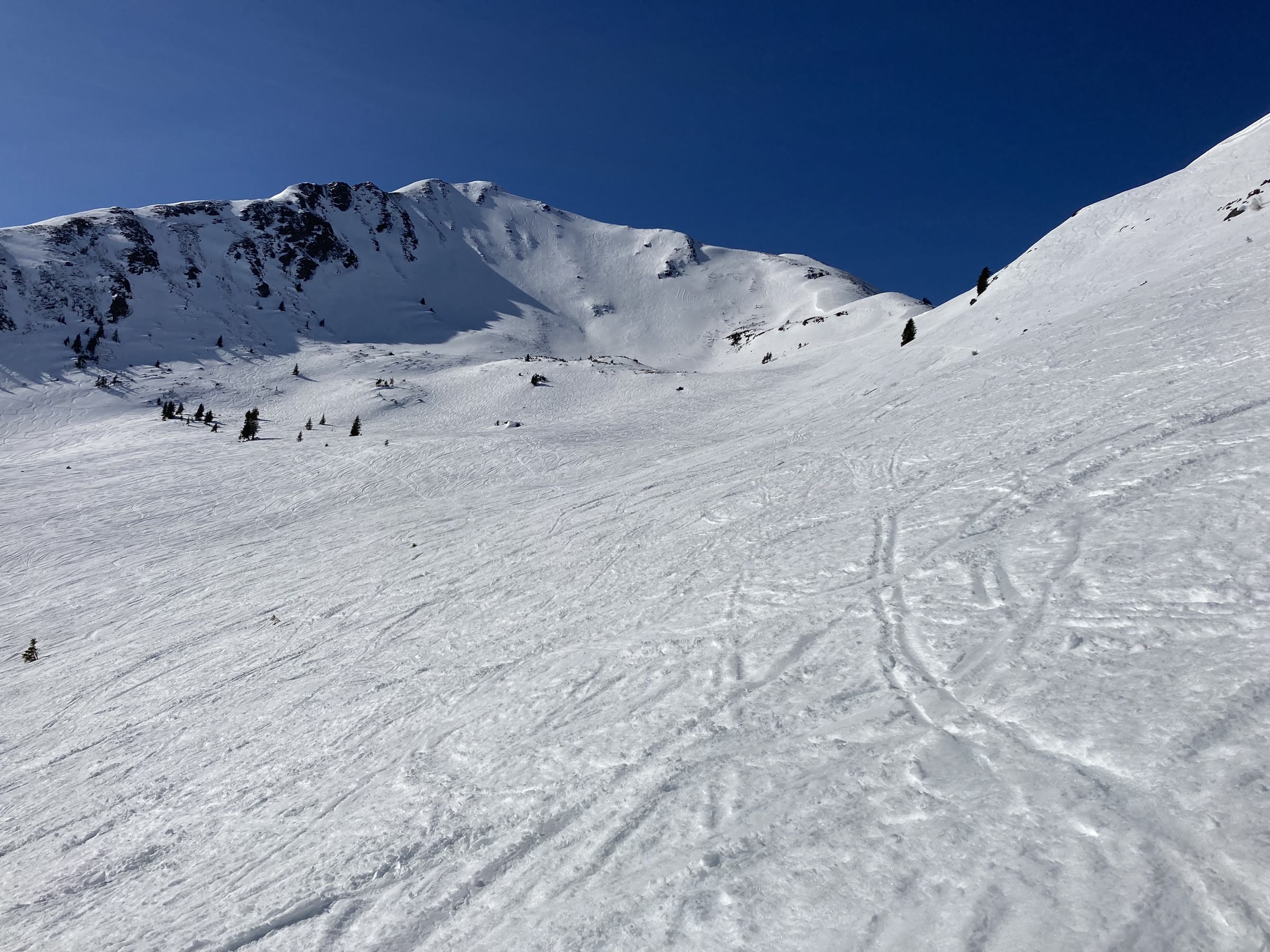 Eigentlich schöne Variante im südlichen Kar, aber heute nix. Dabei hätte es vom Firnfenster von etwa 10-11h heute gut gepasst.