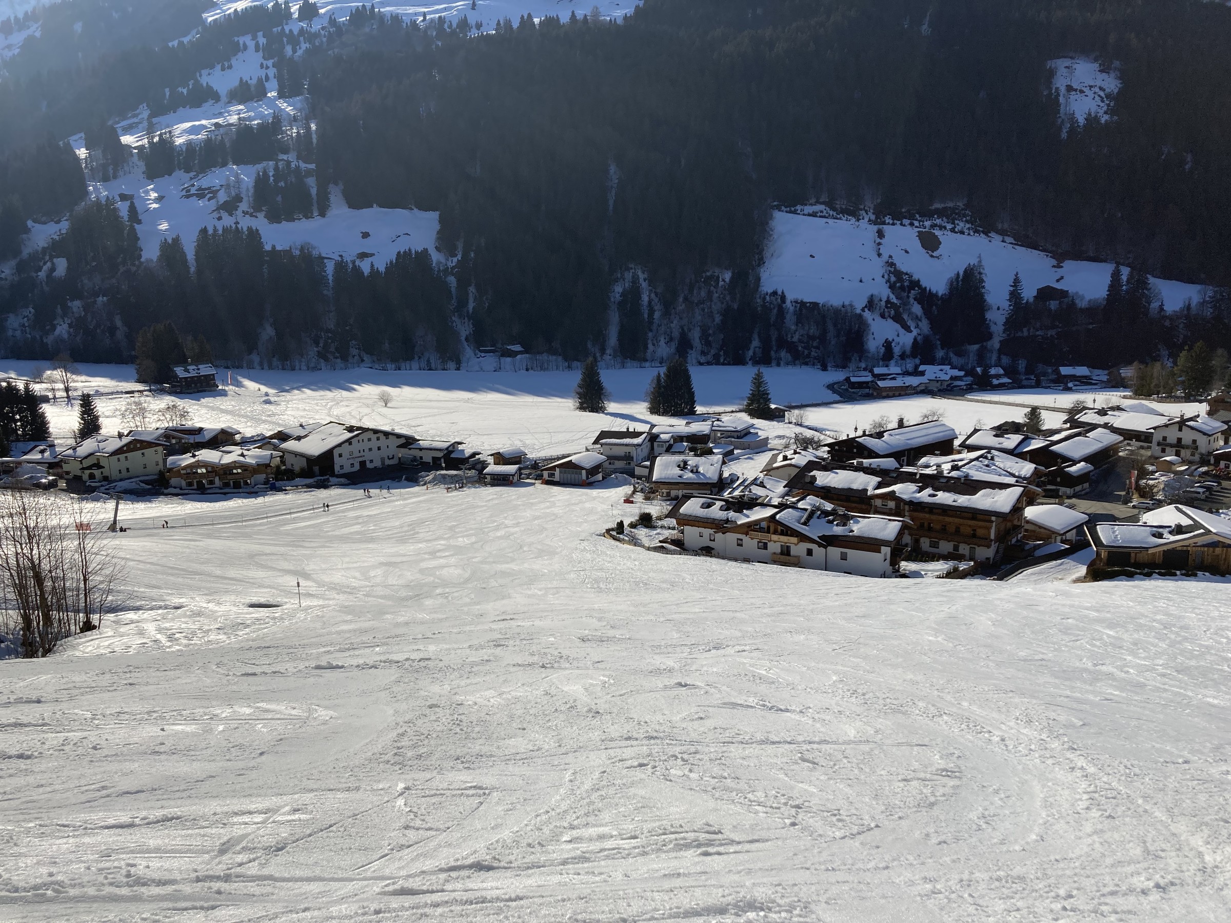 Man kommt in Aschau am Dorfschlepper raus, der aber gerne länger sein dürfte. Ist halt ein Übungslift. Besser rechts davon schon abbiegen, dann kommt man direkt am Bus raus, der etwa alle halbe Stunde zurück fährt.