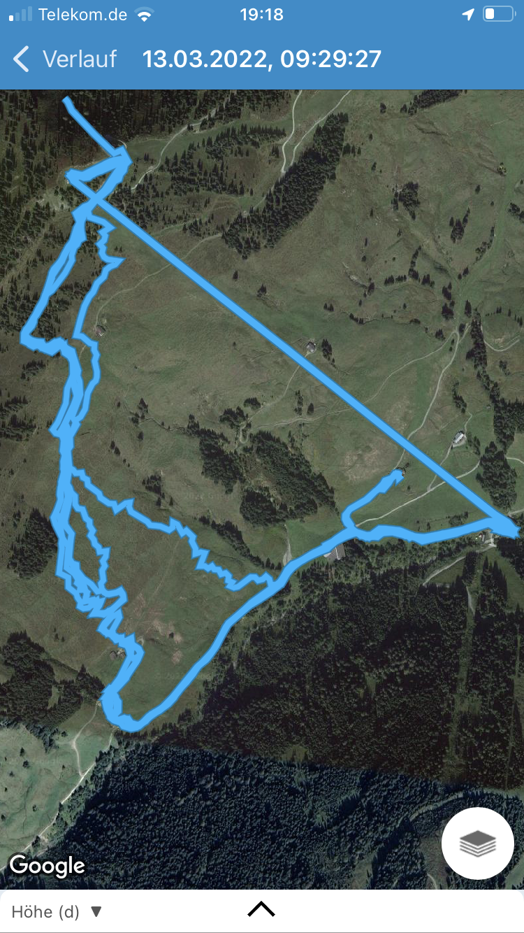 Das gleiche gilt für die Westhänge des Pengelsteins am Hieslegg, wo schlichtweg auch der Schnee fehlt (abgeblasen). Hier konnte ich aber eine Möglichkeit finden, die gut fahrbare Aschauer Route im oberen Bereich durch Rückfahrt über die Usterkaralm zu wiederholen.