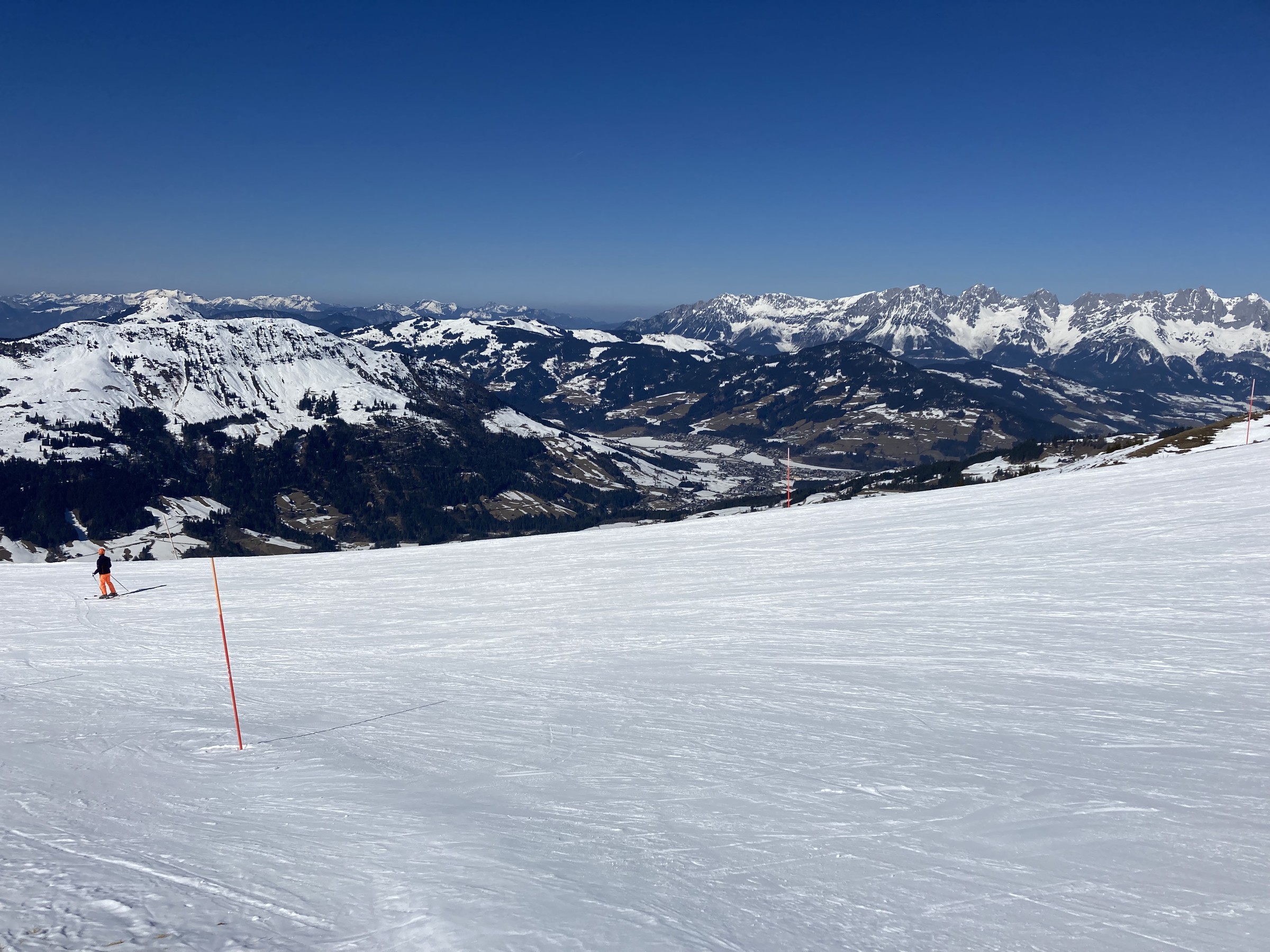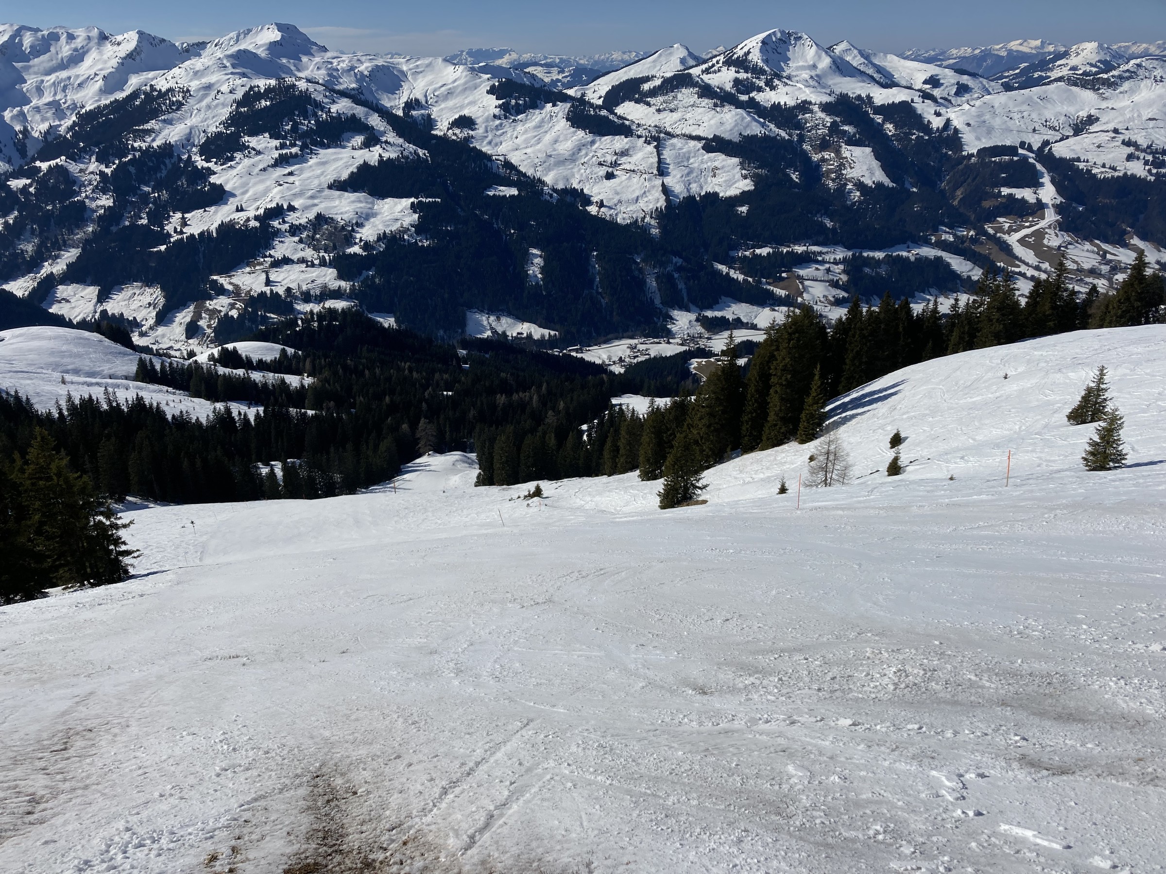 Man könnte auch noch weiter von Richtung Schwarzkogel kommen, da sollte man aus dem Bereich der Aschauer Route mit etwas Aufsteigen gut hinkommen. Wäre vielleicht mal bei gutem Powder interessant, dafür mag ich solche flachen Hänge. Aber Kitzbühel im Winter ist vom Stresslevel her natürlich nochmal eine ganz andere Hausnummer als jetzt…