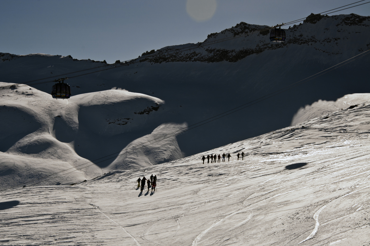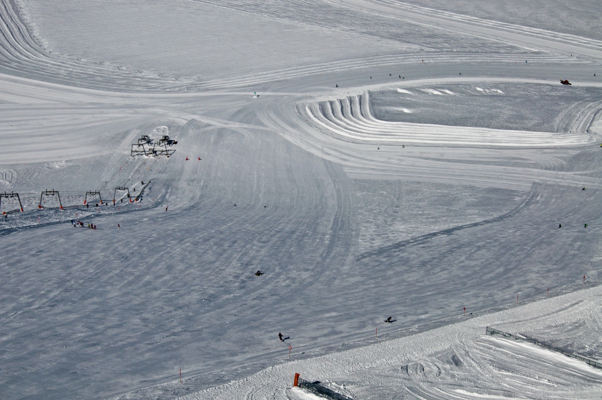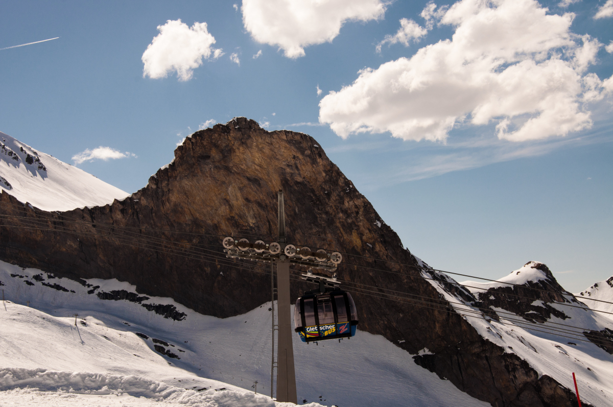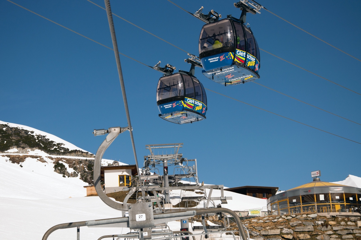 An den ersten beiden Sektionen war ein bisserl Anstehen angesagt, aber an der neuen Kabinenbahn selbst war kaum was los – die Masse nahm den Gletscherbus III.