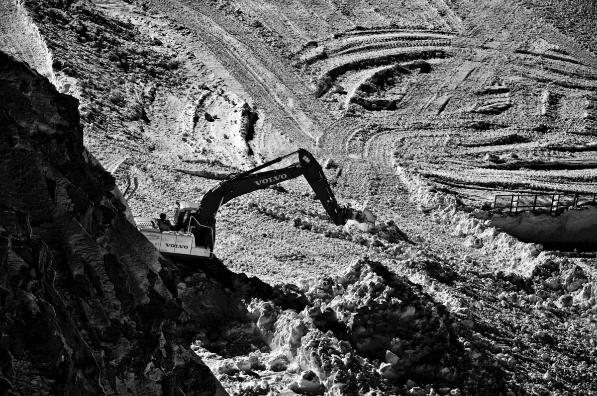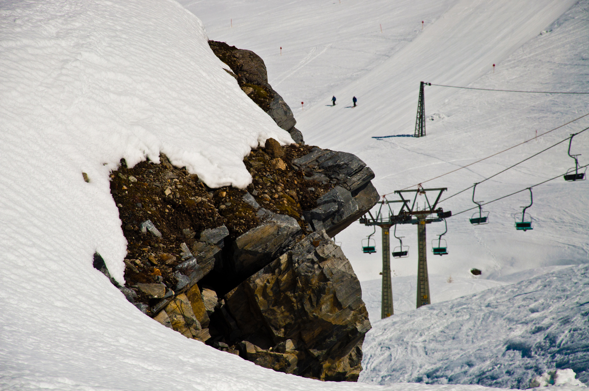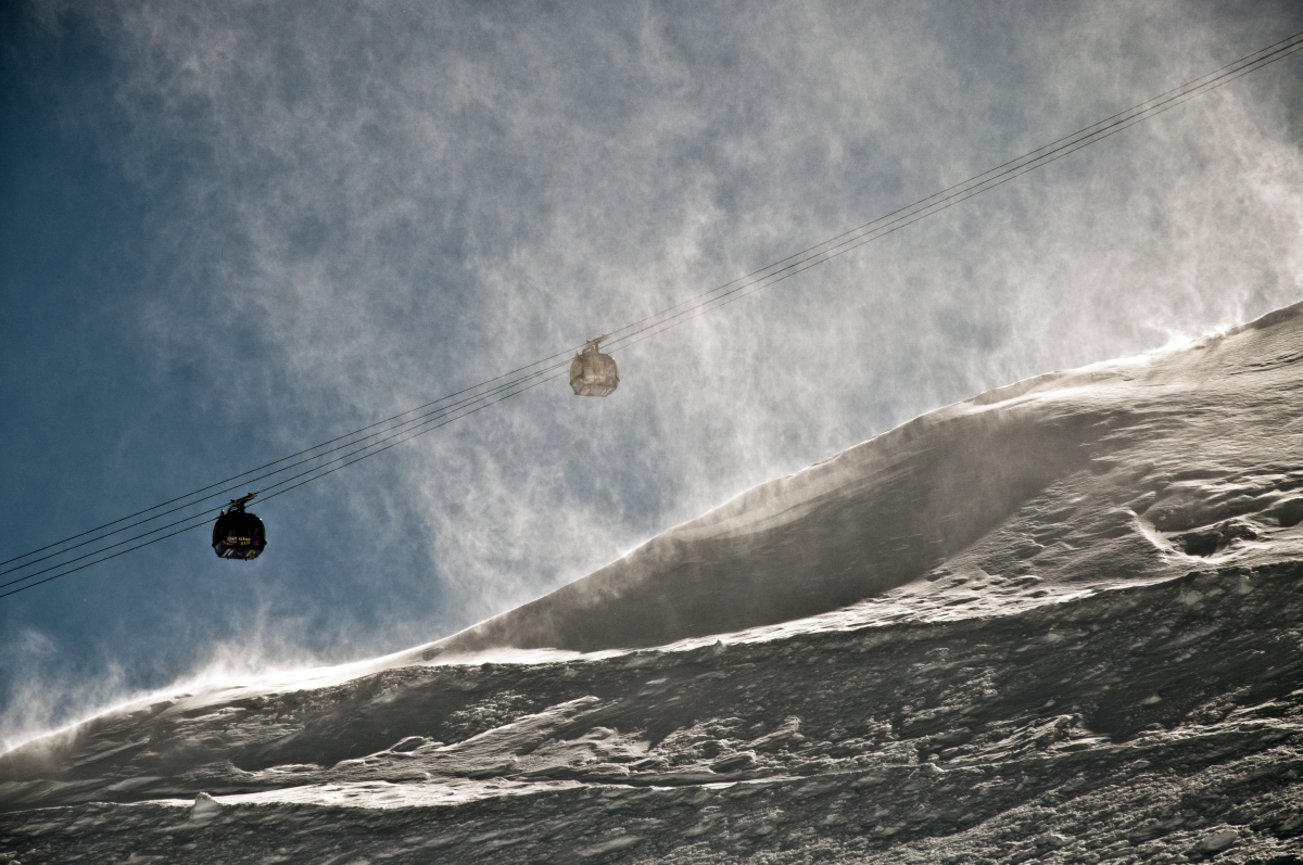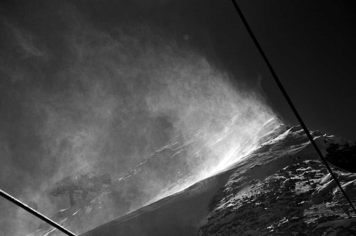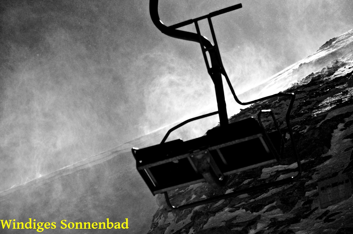 Nun sollte meine erste DSB-Fahrt mit der 4.Sektion folgen. Der Wind pfiff um die Felsen und blies den Schnee auf.