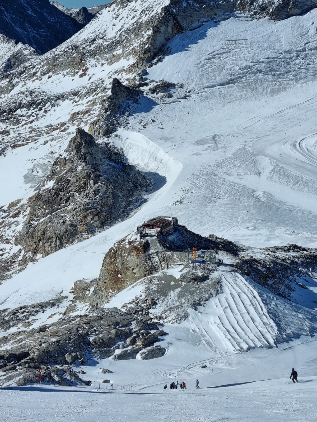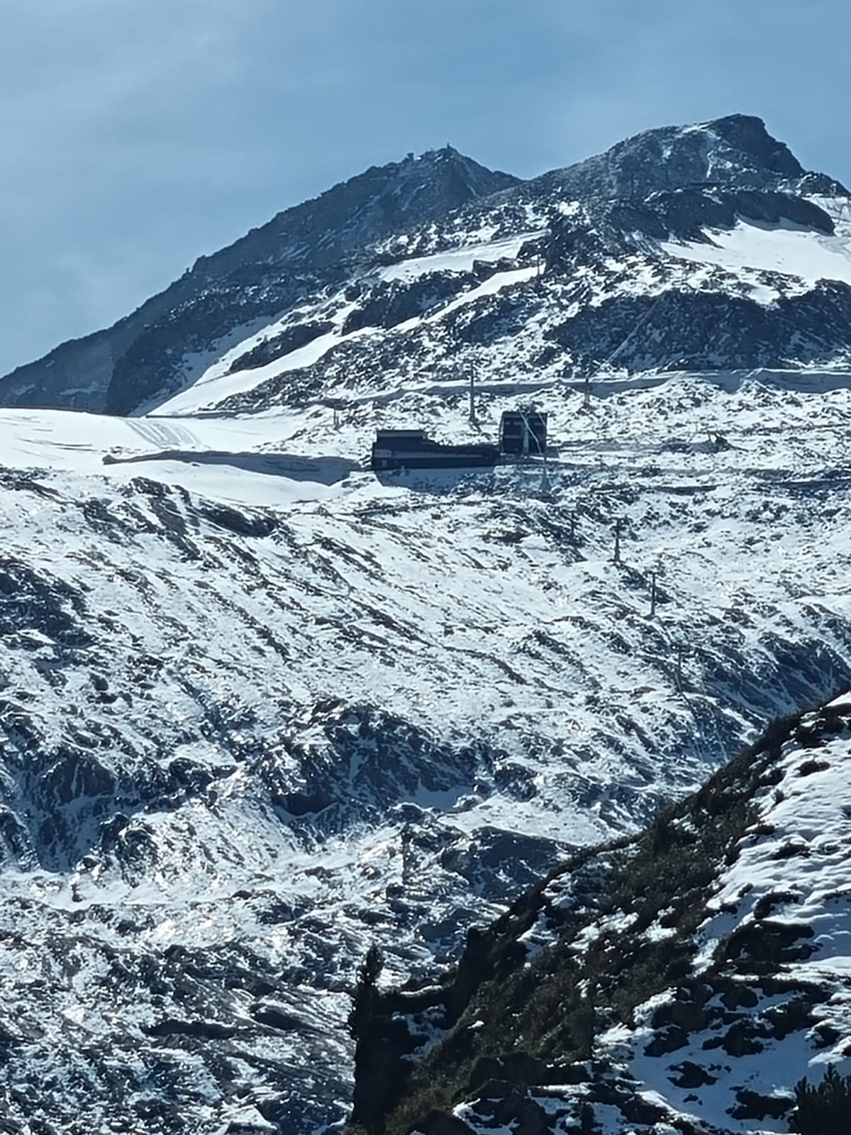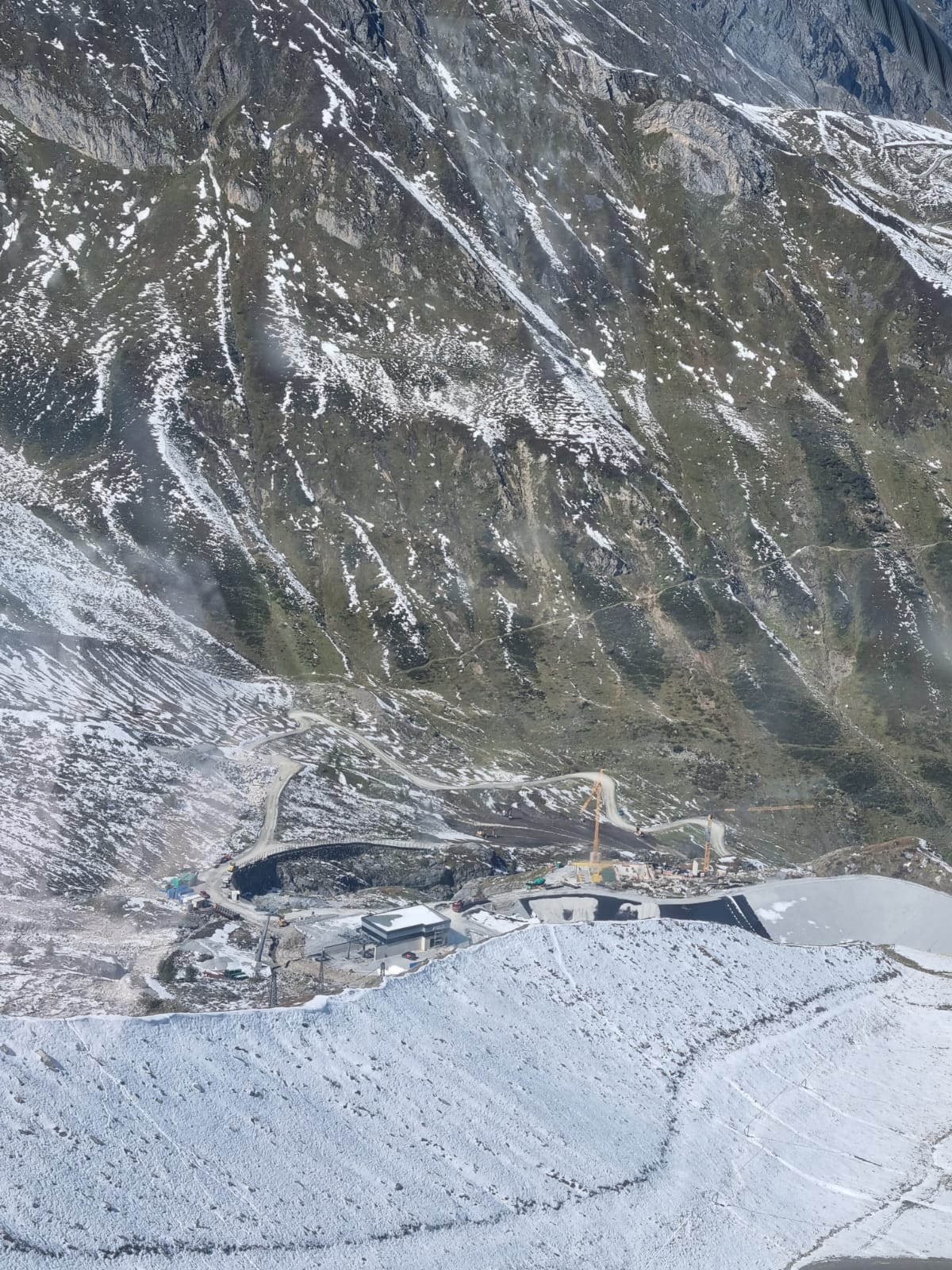 Die Lärmstange 1 wirkt "fertig". Der Speichersee wird aktuell foliert. Ansonsten das übliche aus Tux, viele Betonmischer, LKW, Bullys am Berg unterwegs. Man merkt das der fehlende Permafrost sowie starkes Gletscherabschmelzen den Bergbahnen sehr große Probleme bereitet.