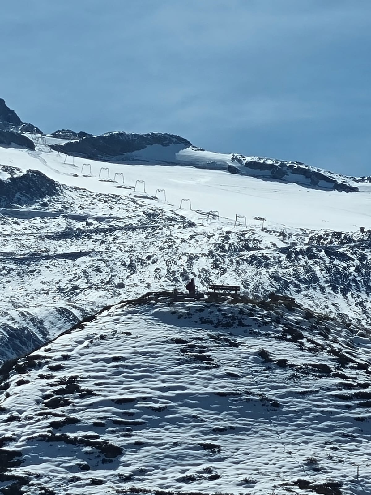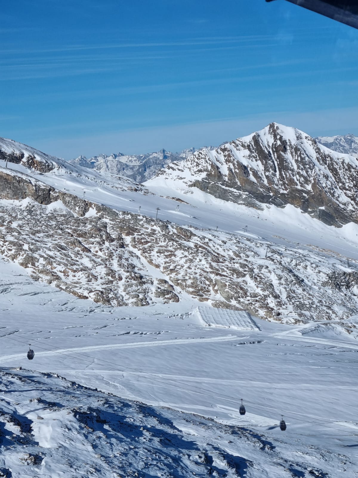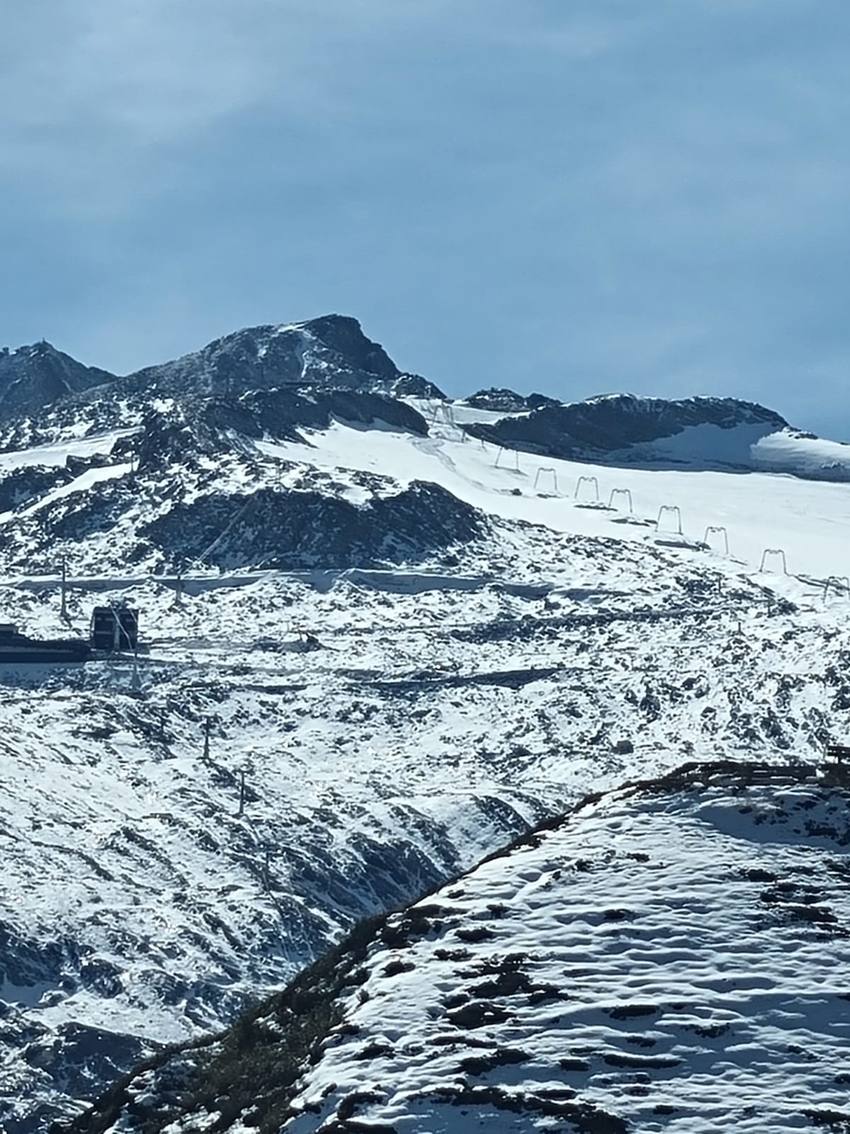 Die Lärmstange 1 wirkt "fertig". Der Speichersee wird aktuell foliert. Ansonsten das übliche aus Tux, viele Betonmischer, LKW, Bullys am Berg unterwegs. Man merkt das der fehlende Permafrost sowie starkes Gletscherabschmelzen den Bergbahnen sehr große Probleme bereitet.