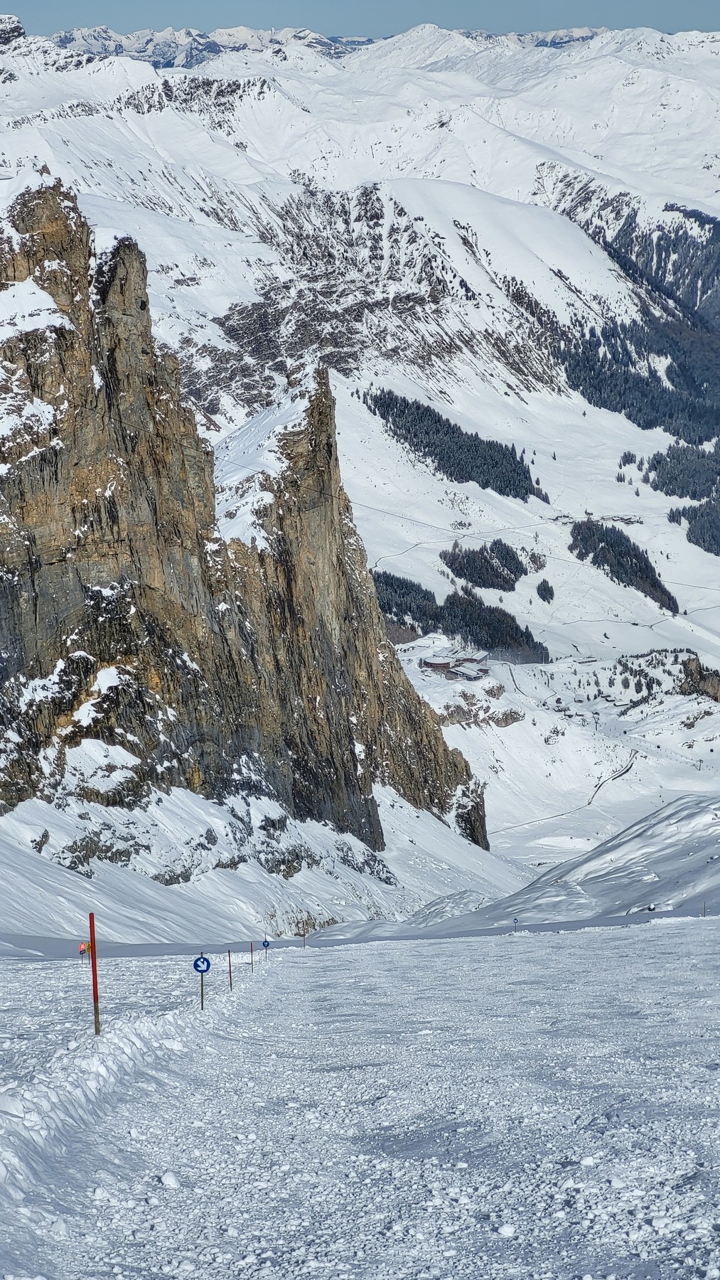 Die Bahnen wurden heute bereits um 7.45 für alle geöffnet und der Pistenchef hat die Leute wie auch gestern schon immer wieder zum langsamen Gehen ermahnt. Natürlich wurde trotzdem von hinten und seitlich gedrückt und angeschoben…