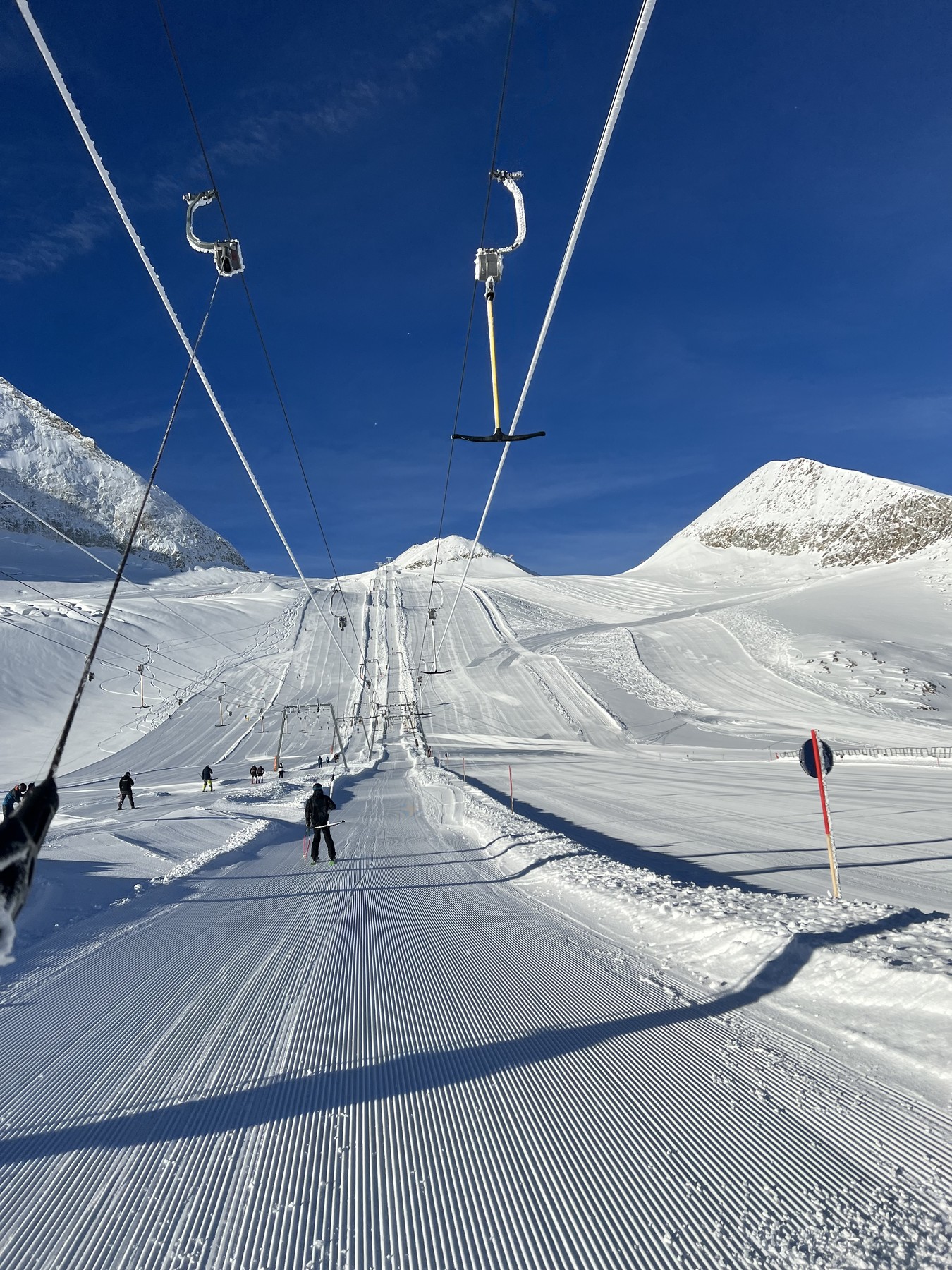 An allen Liften oben am Gletscher war dann Anstehen angesagt, außer an den SL Gefrorene Wand, da konnte man fast immer durchgehen.