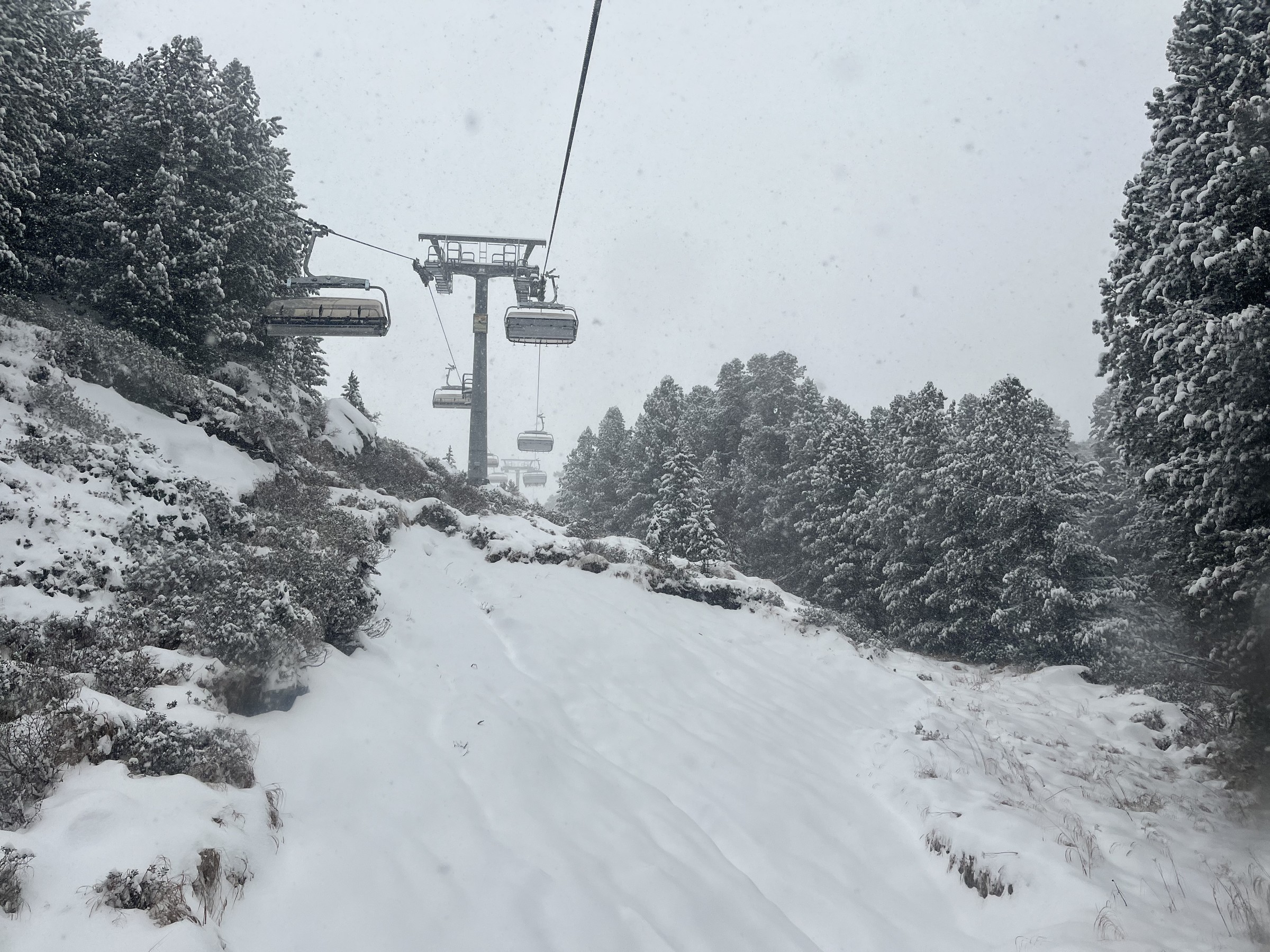 Eine Schneekanone ist genau auf Wurmkogel 1 gerichtet und hat meine Ski angspritzt. Da setzte sich dann grad Eis an und es hat mich beim Ausstieg fast überschlagen. Vielen anderen ging es gleich. Ziemlich ungünstig sowas. Mittlerweile wurde sie abgeschaltet.