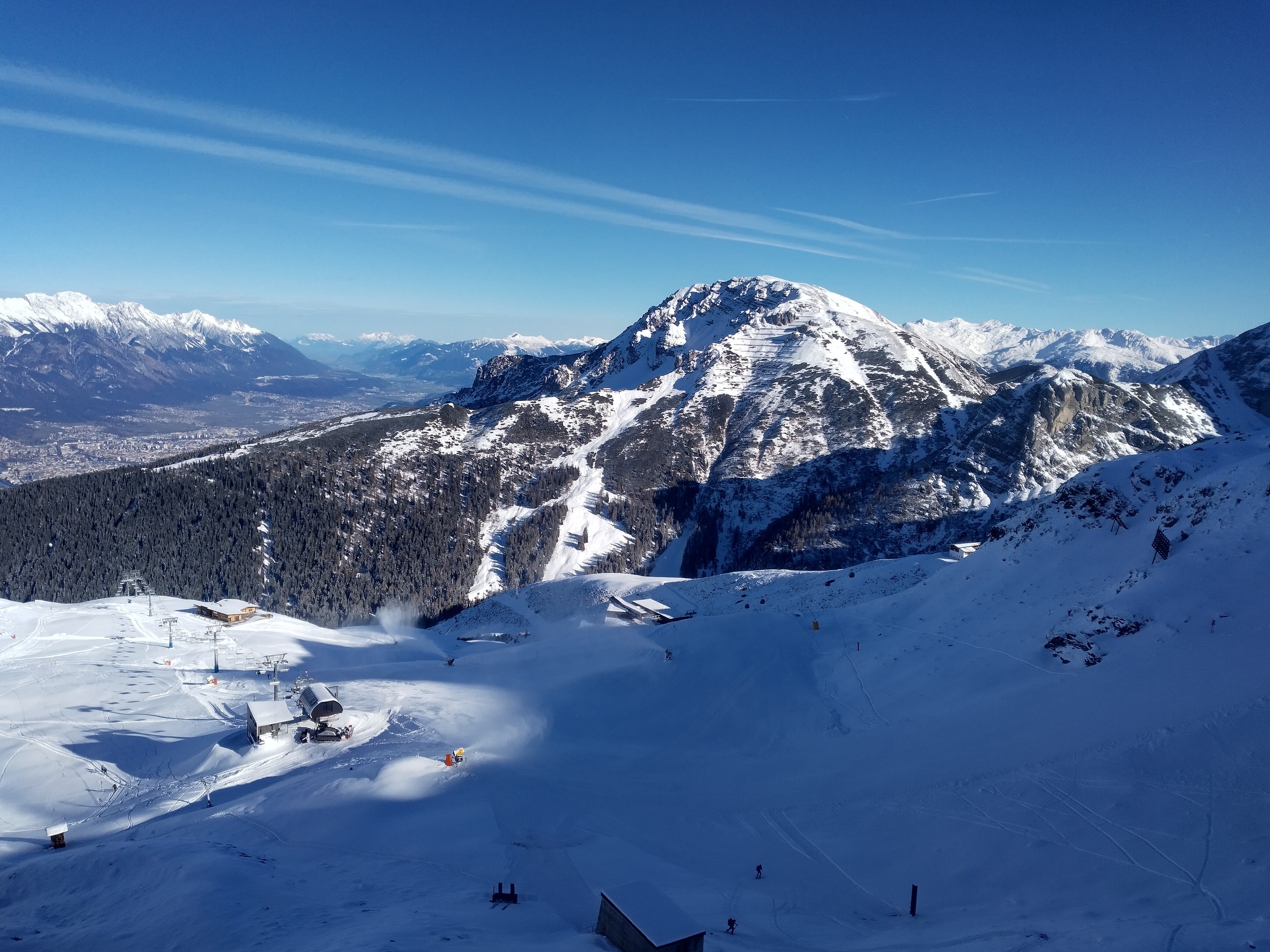 Oben ist dann ziemlich viel Trubel. Die honorigen Gäste sind wohl inzwischen oben, und es ist alles dabei was das alpin-urbane Tirol auszeichnet. Hochdekorierte Schützenkommandanten, ein Priester der die neue Seilbahn gesegnet hat, und ziemlich viele ältere Herren in braunen Anzügen. Der Geschäftsführer der Axamer Lizum erklärt unterdessen in der Sonne sitzend einer jungen Dame die Welt. Eine Horde Italiener baut Zelte für die morgige Publikumseröffnung auf. Ich genieße währenddessen eine Semmel mit Mailänder Salami und einen wohlverdientes hopfenhaltiges Getränk und lasse die Szenerie auf mich einwirken. Währen Corona wahr es hier definitiv ruhiger
