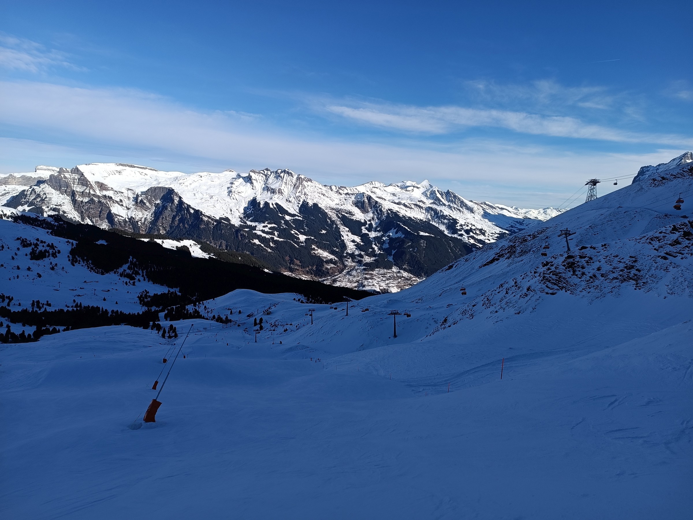 Anyway, allgemein im Gebiet eher wenig Schnee, Pisten zudem hier nicht nur am Morgen alle etwas auf der eisigeren Seite, v.a. am Männlichen und die roten Grindelwaldner Talabfahrten (und lokal sogar noch Gemüse!). Honegg, Wixi/Lauberhorn sowie Wengen Abfahrt oben besser, aber auch hier oft etwas Eisplatten-Risiko. Im Vergleich mit meinen 6 Tagen in 4 Vallées in der 2. Jan.-Hälfte wo 90% der Pisten ideal Härte, und meist griffig und so praktisch perfekt waren, hier gerade etwas gewöhnungsbedürftig.