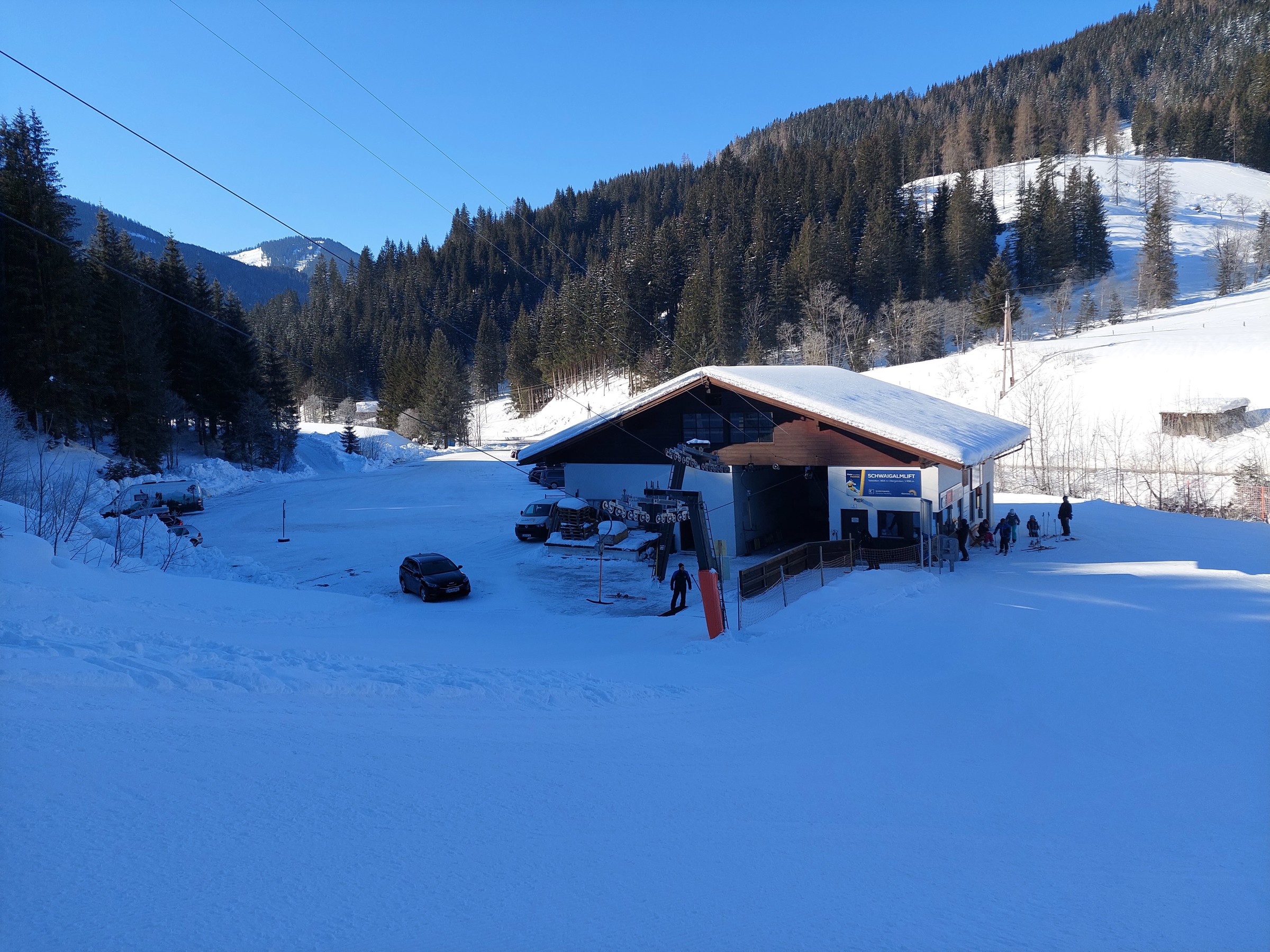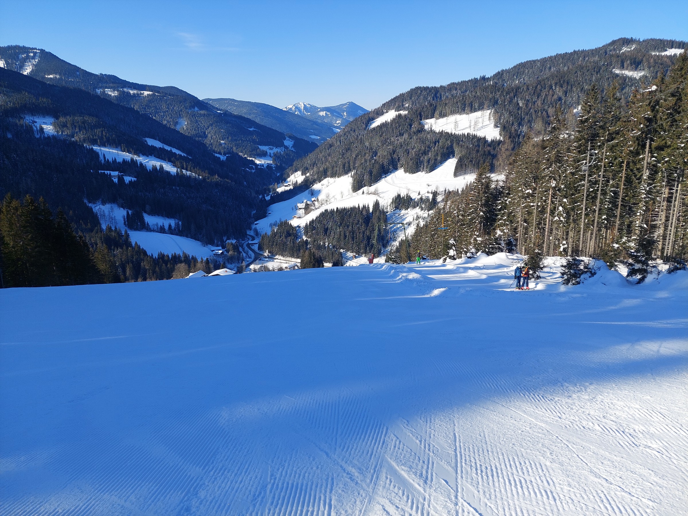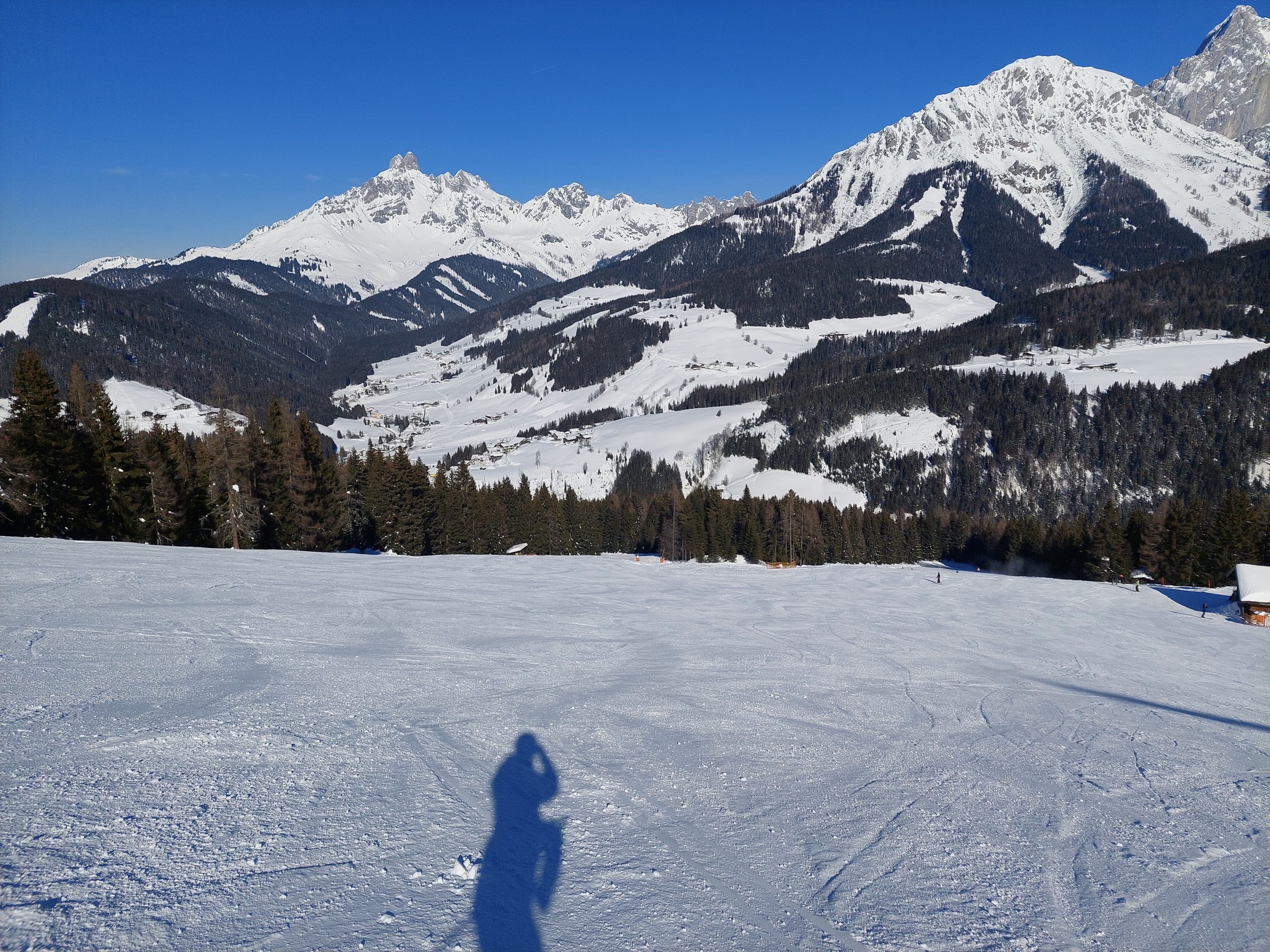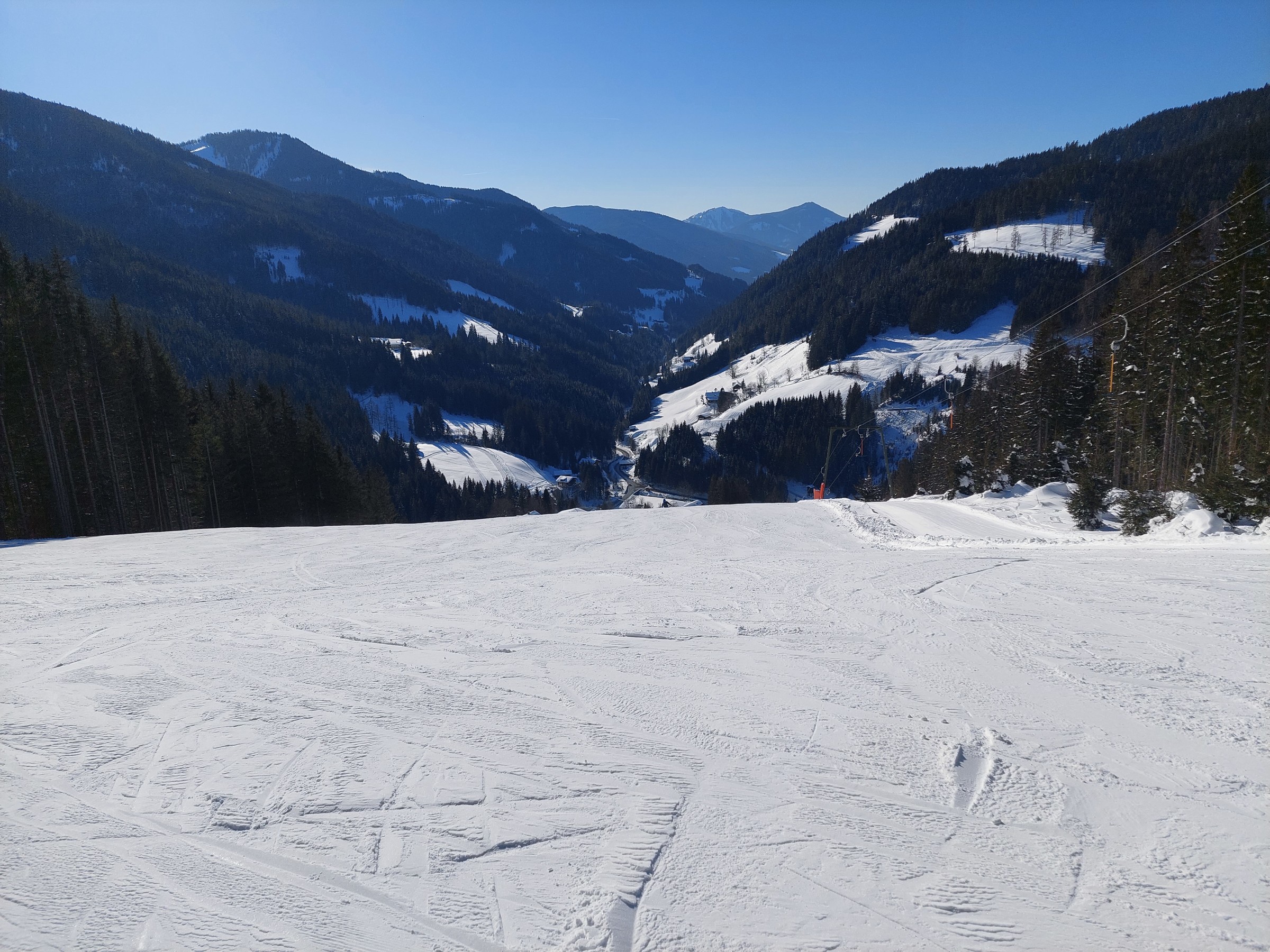 Gut gefallen hat mir auch die Lage des Gebietes, Filzmoos ist noch ein richtiges Skidorf, wo sich die Anlagen rundherum erstrecken, sowie der eigene Charakter der Teilgebiete. Darüber hinaus liegt fast das gesamte Gebiet den ganzen Tag über in der Sonne, lediglich der Schwaigalmlift liegt in einer etwas dunkleren Ecke.