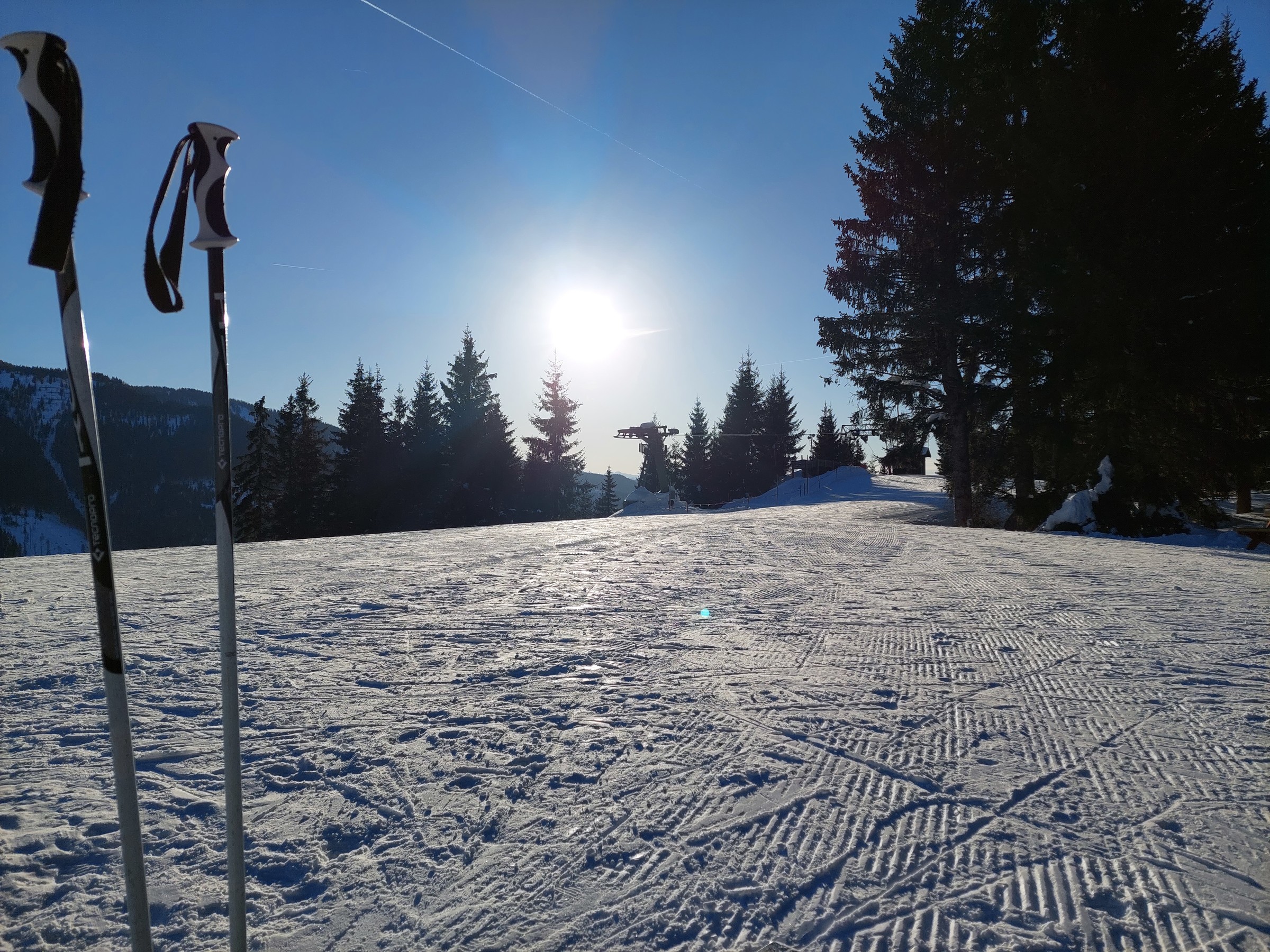 Lifte waren alle geöffnet, Pisten bis auf eine Variante auch. Dabei herrschten von früh bis spät perfekte Verhältnisse, selbst bei der letzten Abfahrt konnte man noch perfekte Carvingschwünge ziehen.