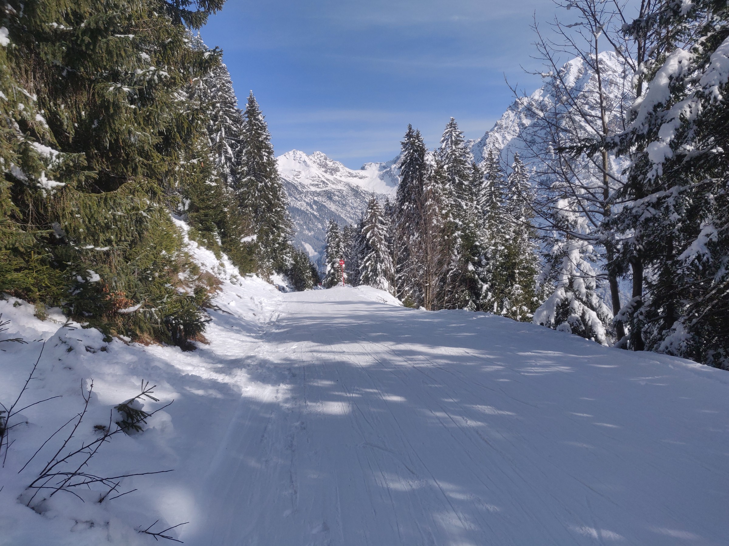 Die Skiwege im Talgebiet laden wirklich zur Entspannung ein. Nach dem anstrengenden Vormittag nun eine Pause beim Wechsel zum Walmendingerhorn.