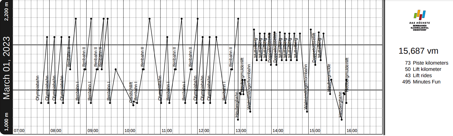 Zum Abschluss zur Übersicht noch Skiline. Vielleicht könnte man an der Olympiabahn an einem guten Tag an die 20000 hm kommen. Aber dafür sind mir gute Tage zu schade.