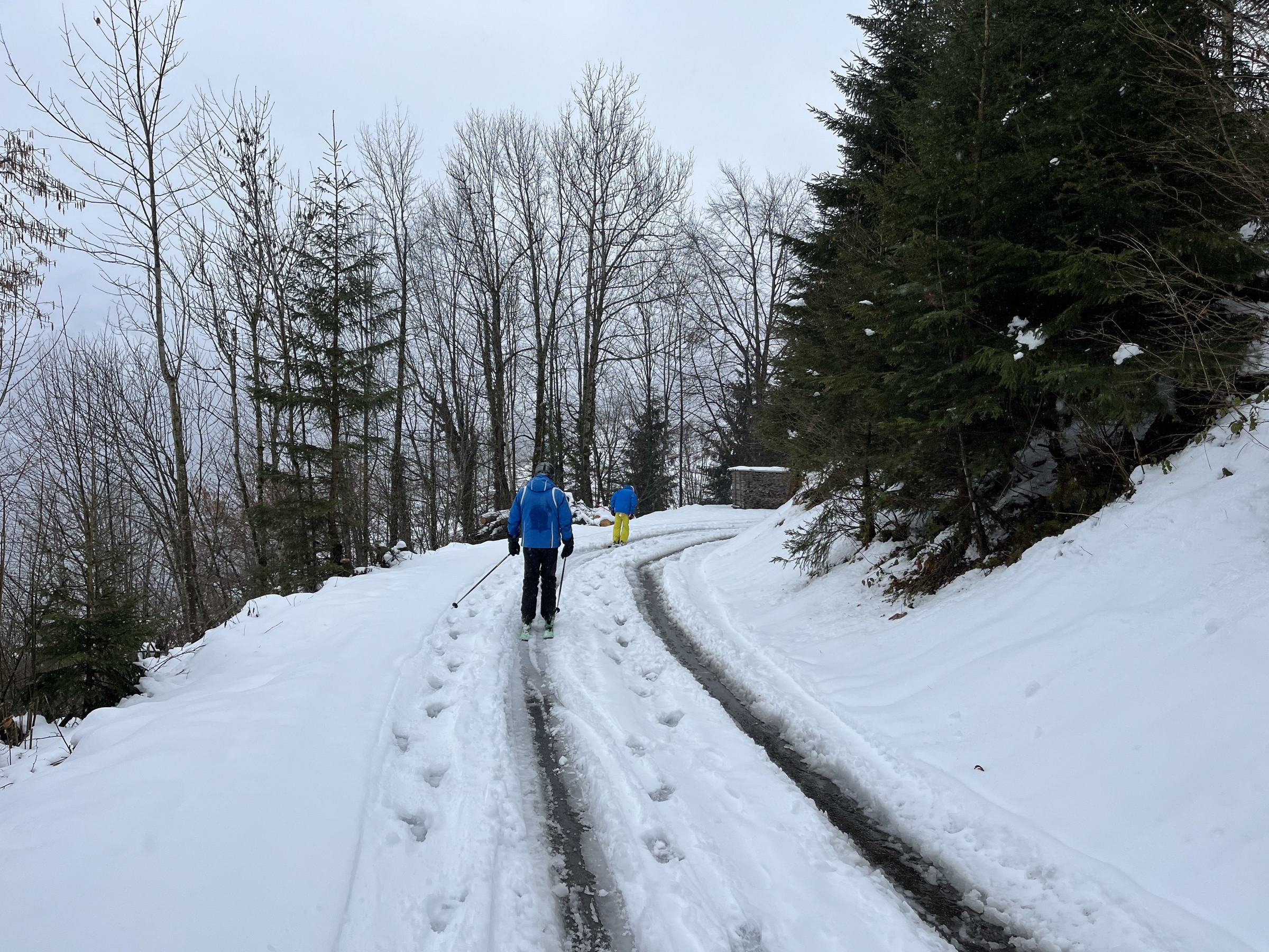 Heute braucht es etwas Überwindung, bei dem zeitweiligen Regen die Skier anzuschnallen. Aber wenn man dies vor dem eigenen Haus kann, dann kann ich das nicht sein lassen.