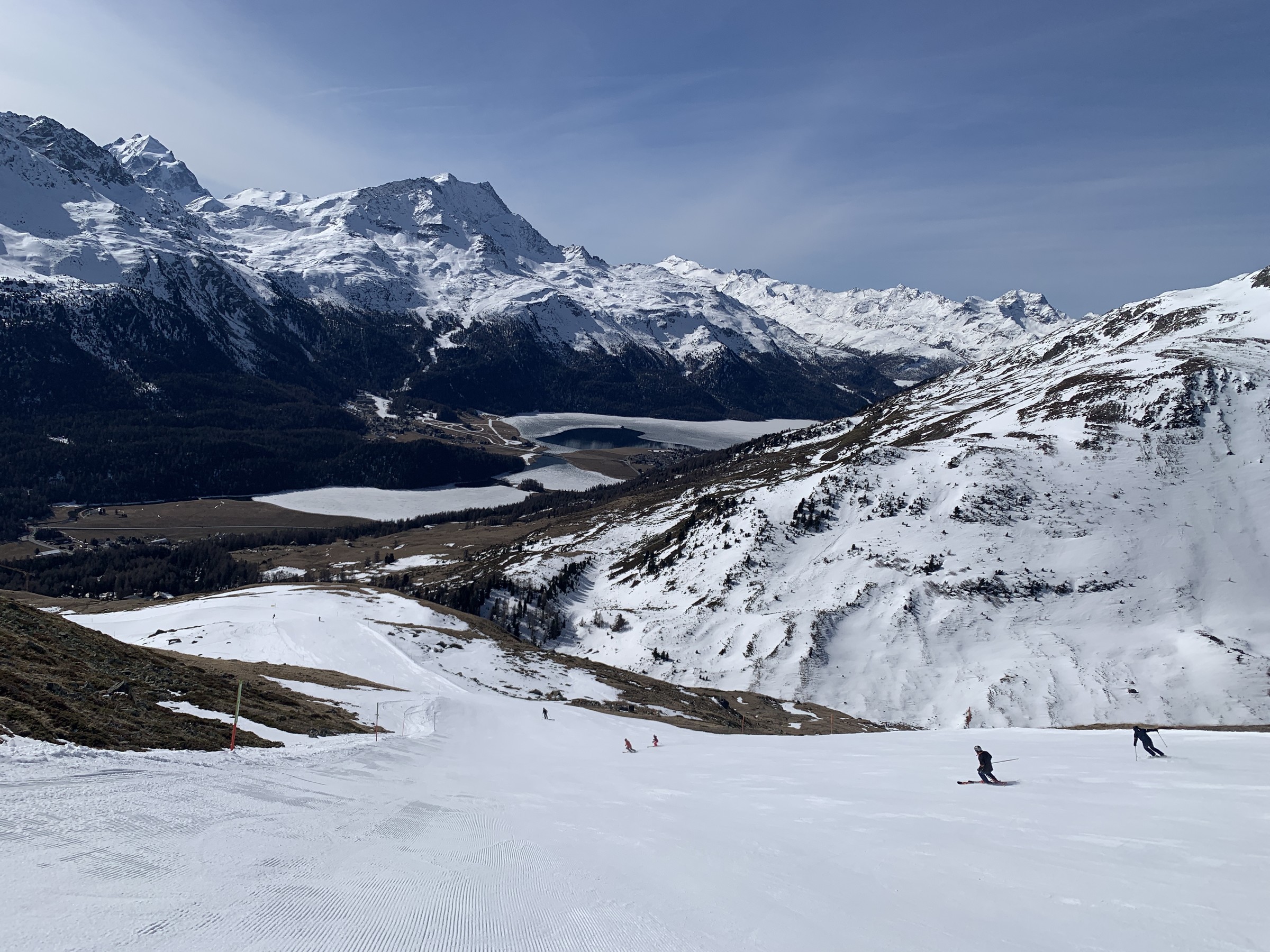 Gestartet sind wir um 9:30h vom (völlig leeren) Suvretta Parkplatz, wo wir um 16:30h dann auch den Tag beendeten. Die Talabfahrt hätte keinen weiteren Tag geschafft auf den letzten Metern, die war völlig am Ende.