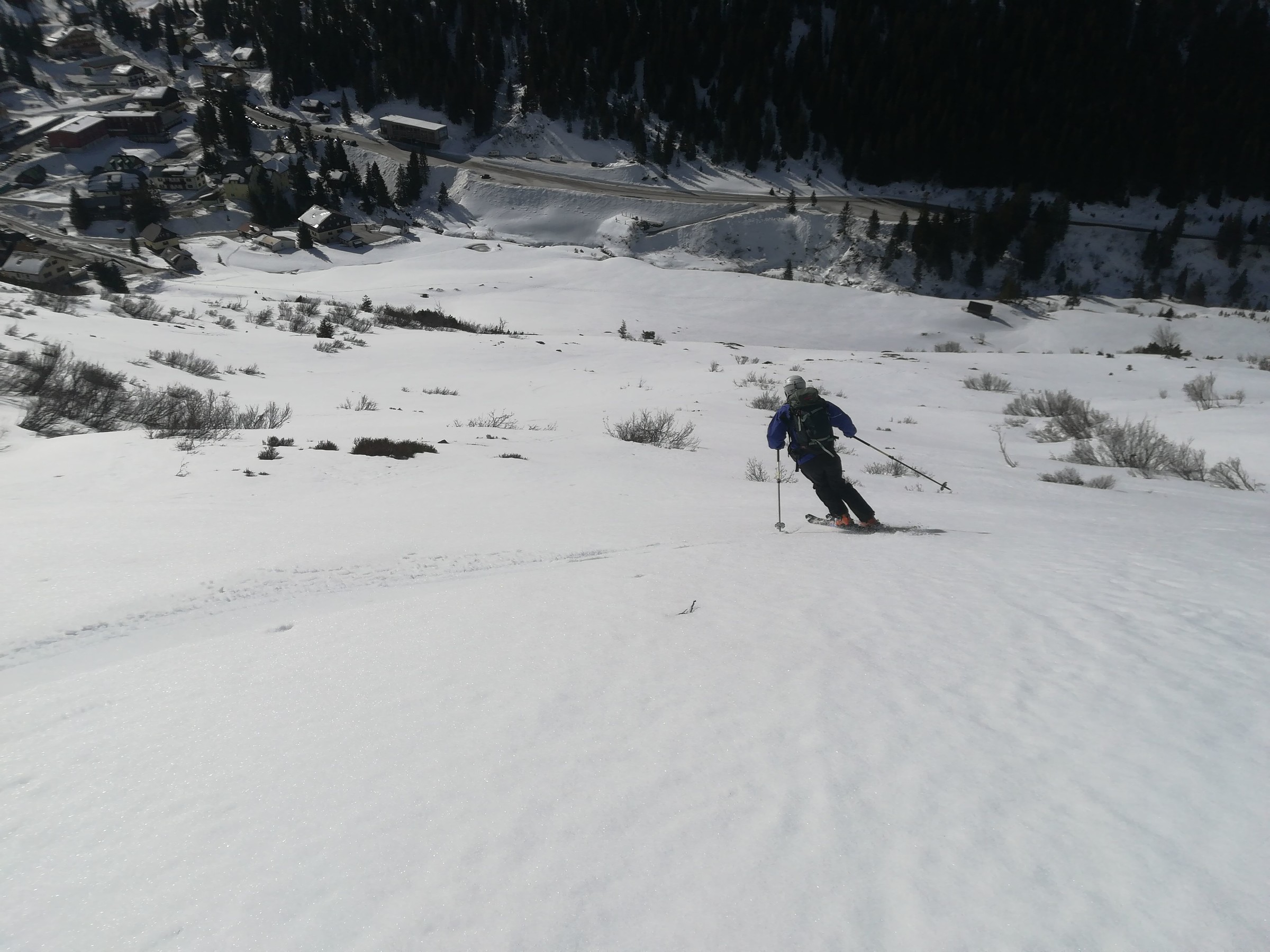 Die Tour auf die Gstemmerspitze war ja lediglich eine Halbtagsbeschäftigung, legendär war dann der Nachmittag im komplett geöffneten aber von vielleicht lediglich 20 bis 30 Gästen frequentierten Schigebiet mit Powercarving auf perfekt präparierten Pisten.