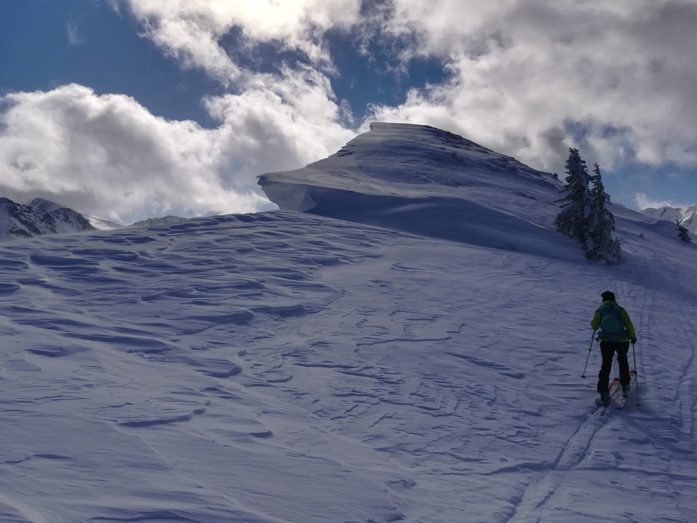 Beeindruckend sind aber vor allem die imposanten Wechten, die die häufigen Stürme in diesem Winter modelliert haben!