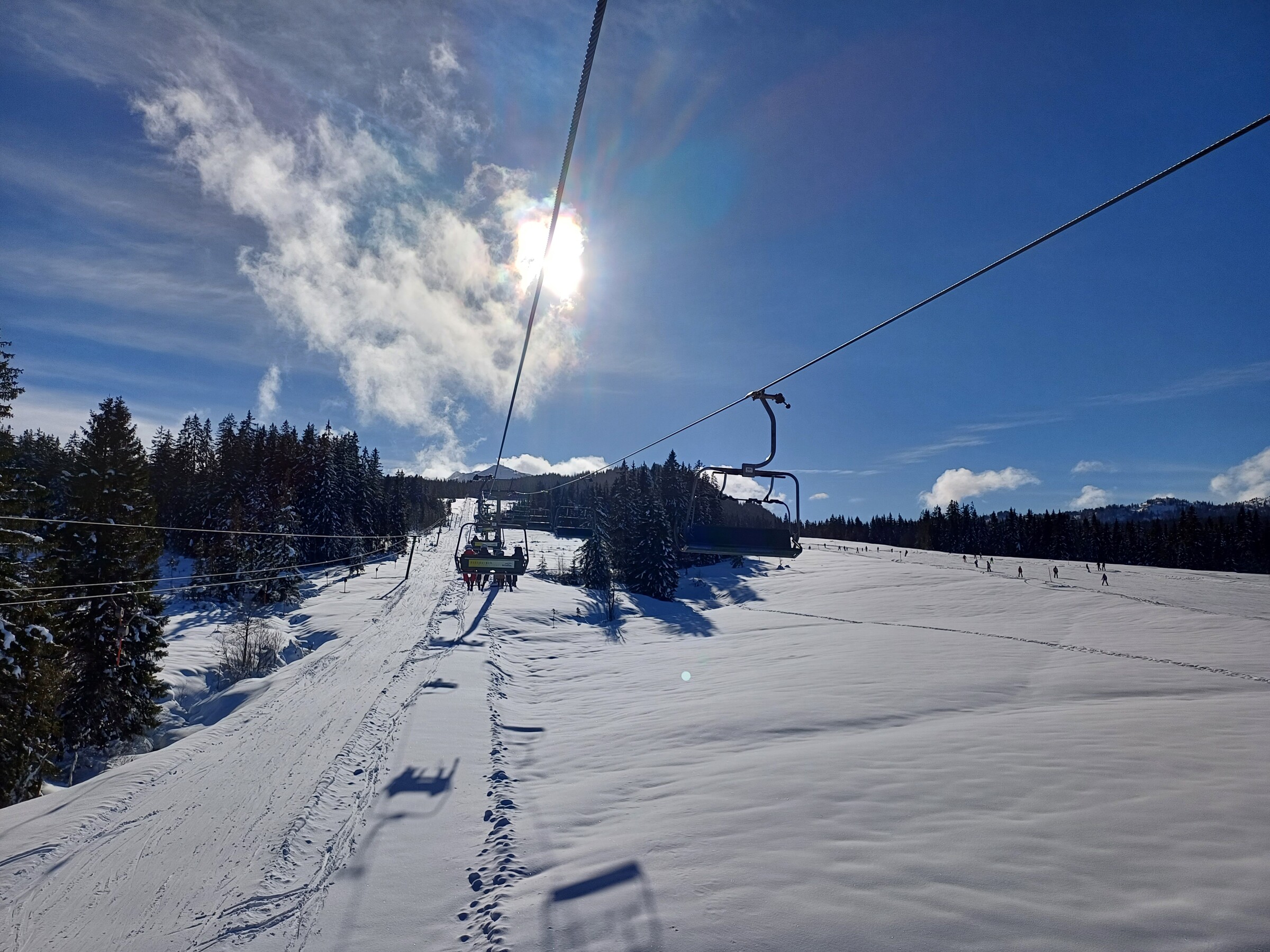 Ein klassisches Fanilienskigebiet, viele Kinder und viele Anfänger sowohl auf deutscher als auch österreichischer Seite. Eigentlich kaum Andrang und nur mittelmäßige bis geringe Auslastung laut einem Liftler, aber ehrlich gesagt war es mir teils schon zu voll und man musste echt aufpassen wer von hinten kommt. Ich möchte mir nicht vorstellen was hier an starken Tagen abgeht auf den Pisten bei den kapazitätsstarken Anlagen. Auf meinen Bildern kommt die Auslastung nicht so rüber.