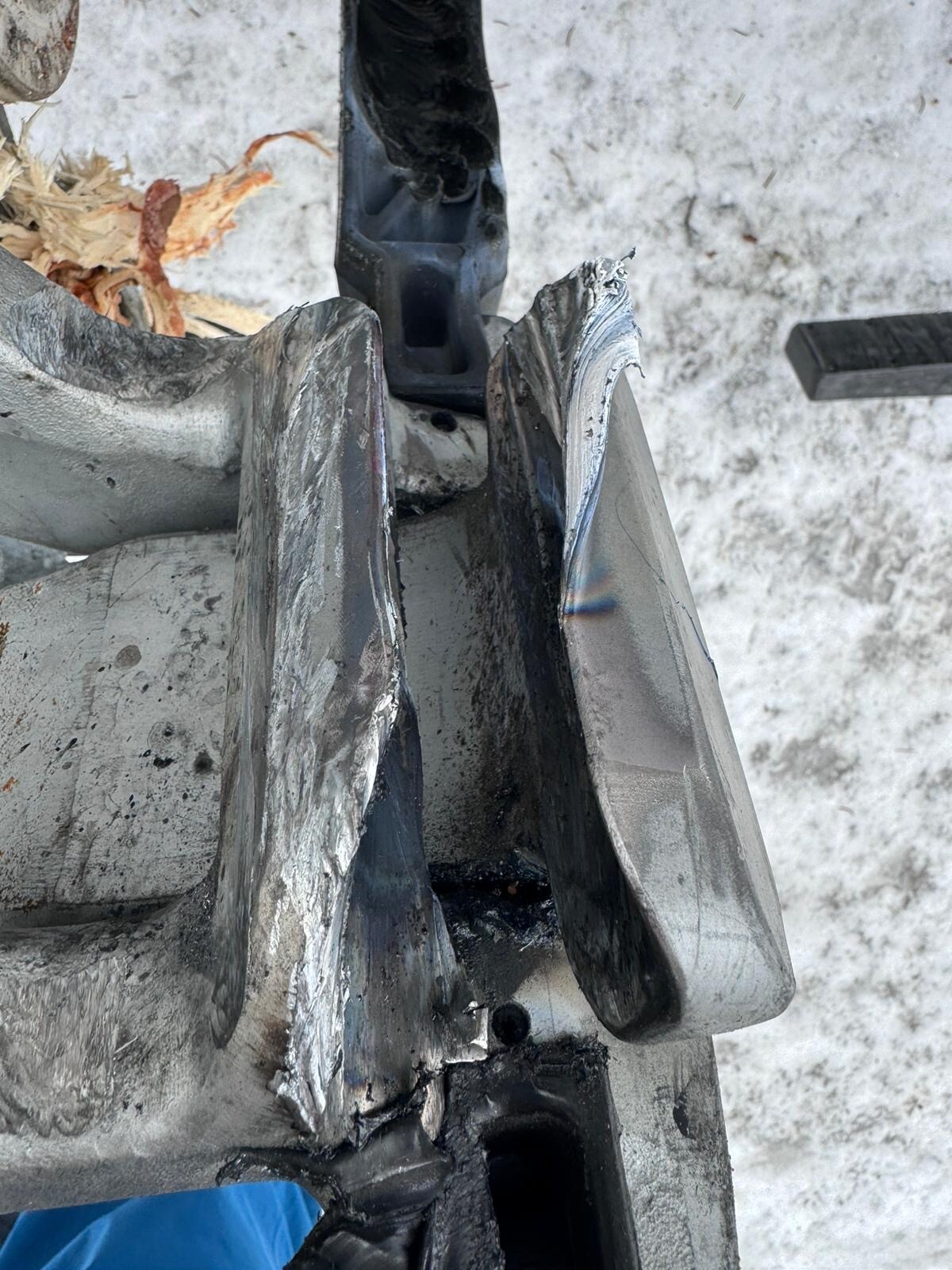 Die Verformung kommt vom Seil, denke ich. Man sieht's an den Anlauffarben.