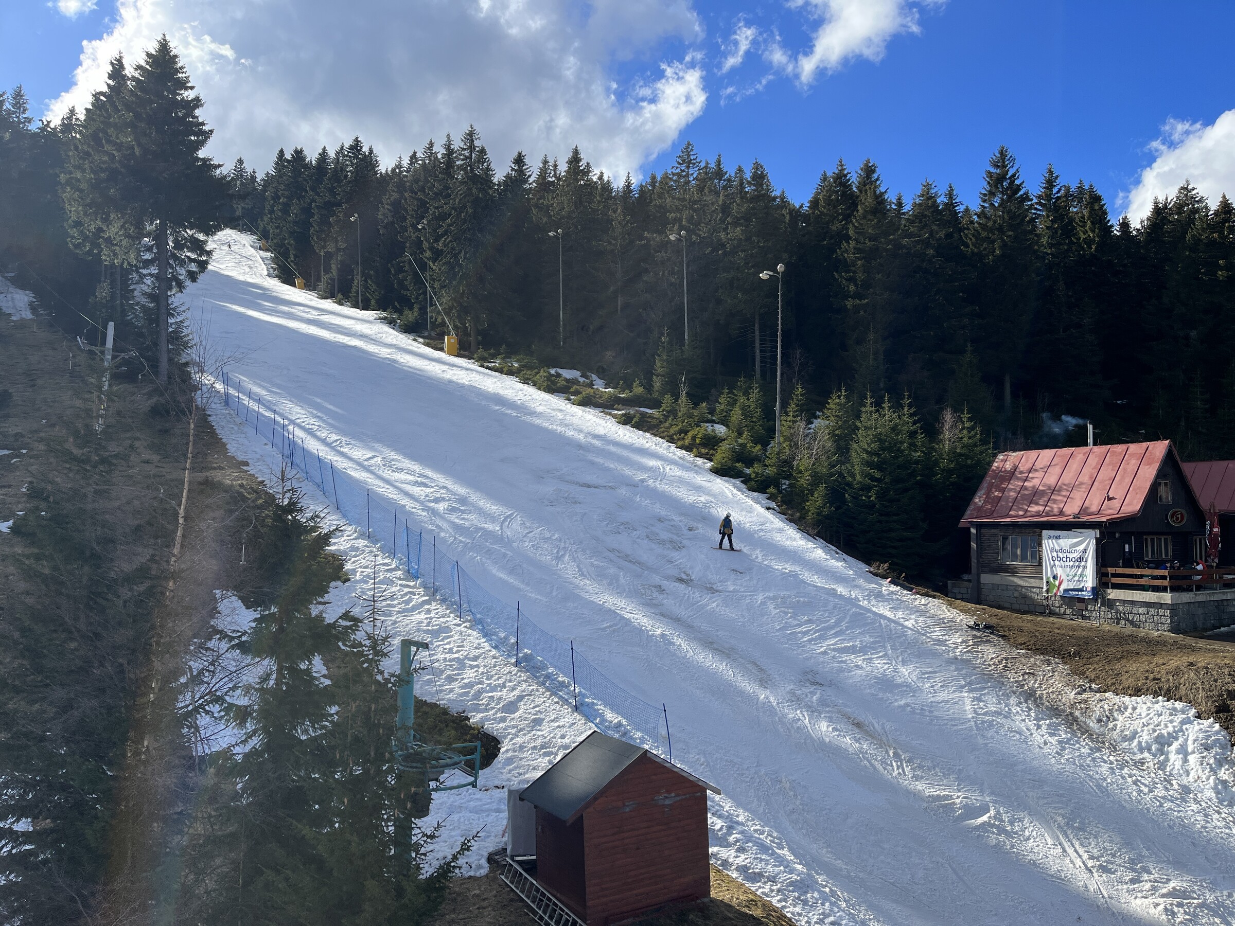 Ich kann mir nicht vorstellen dass man diese Piste halbiert, eher baut man dort einen Funslope oder "erntet" schlicht Schnee falls auf der einen Seite mehr liegen sollte als auf der anderen. Möglich wäre auch dass die schwarze U Zabiteho bewusst geschlossen wurde um von dort den Schnee auf andere wichtigere Pisten zu verteilen. Denn knapp war es dort in den letzten Jahren selten, maximal im Bereich des Gipfel dünne Stellen. Gerade die steilen Bereiche nah am Wald halten dort gut dem Tauwetter stand, die letzten Schneefelder finden sich nach Saisonende immer talwärts rechts.