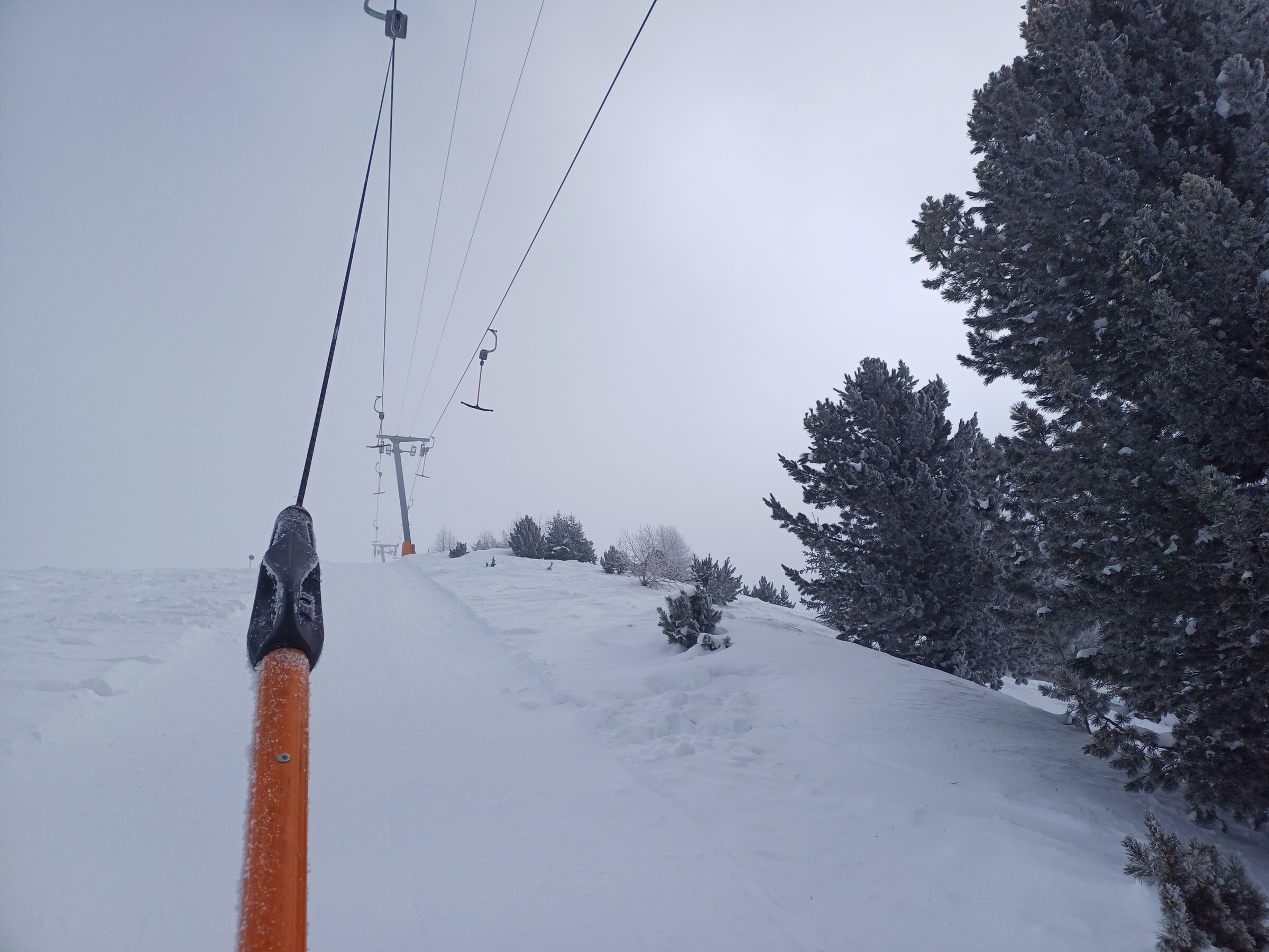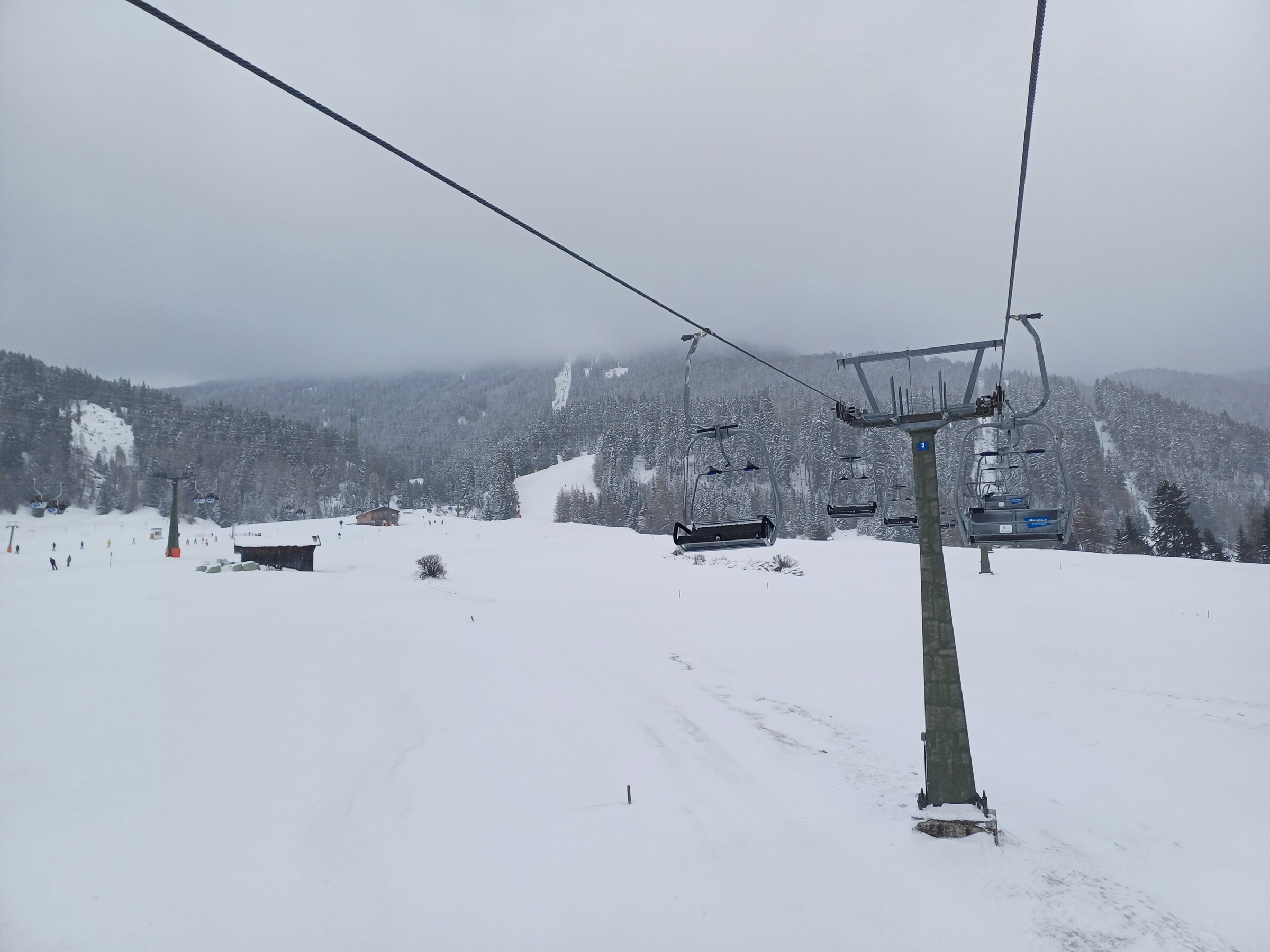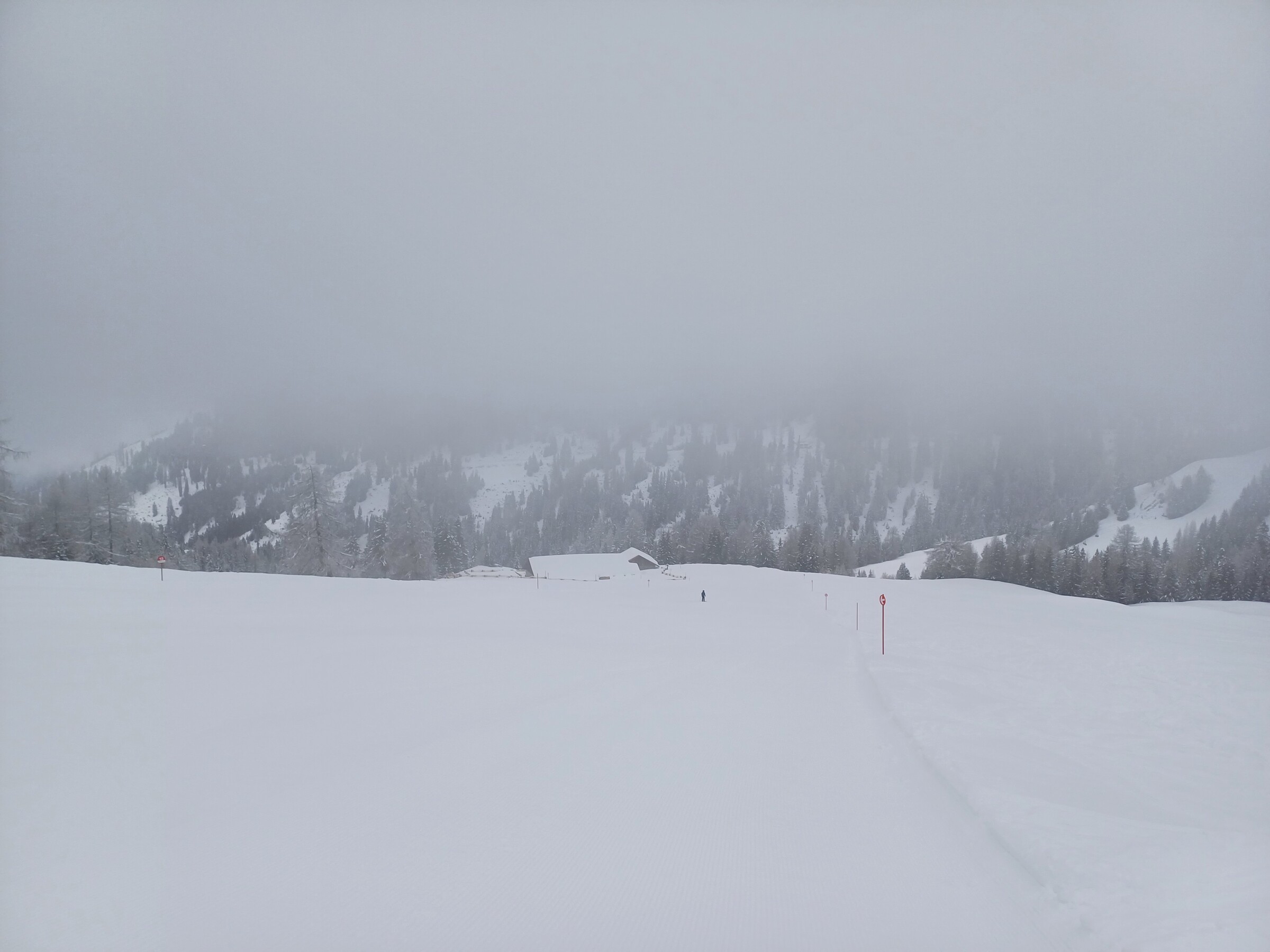 Wetter war leider nicht so toll. Teils Schneefall, teils Nebel, mal mehr aber auch mal null Sicht. Nachmittags tendenziell etwas besser.
