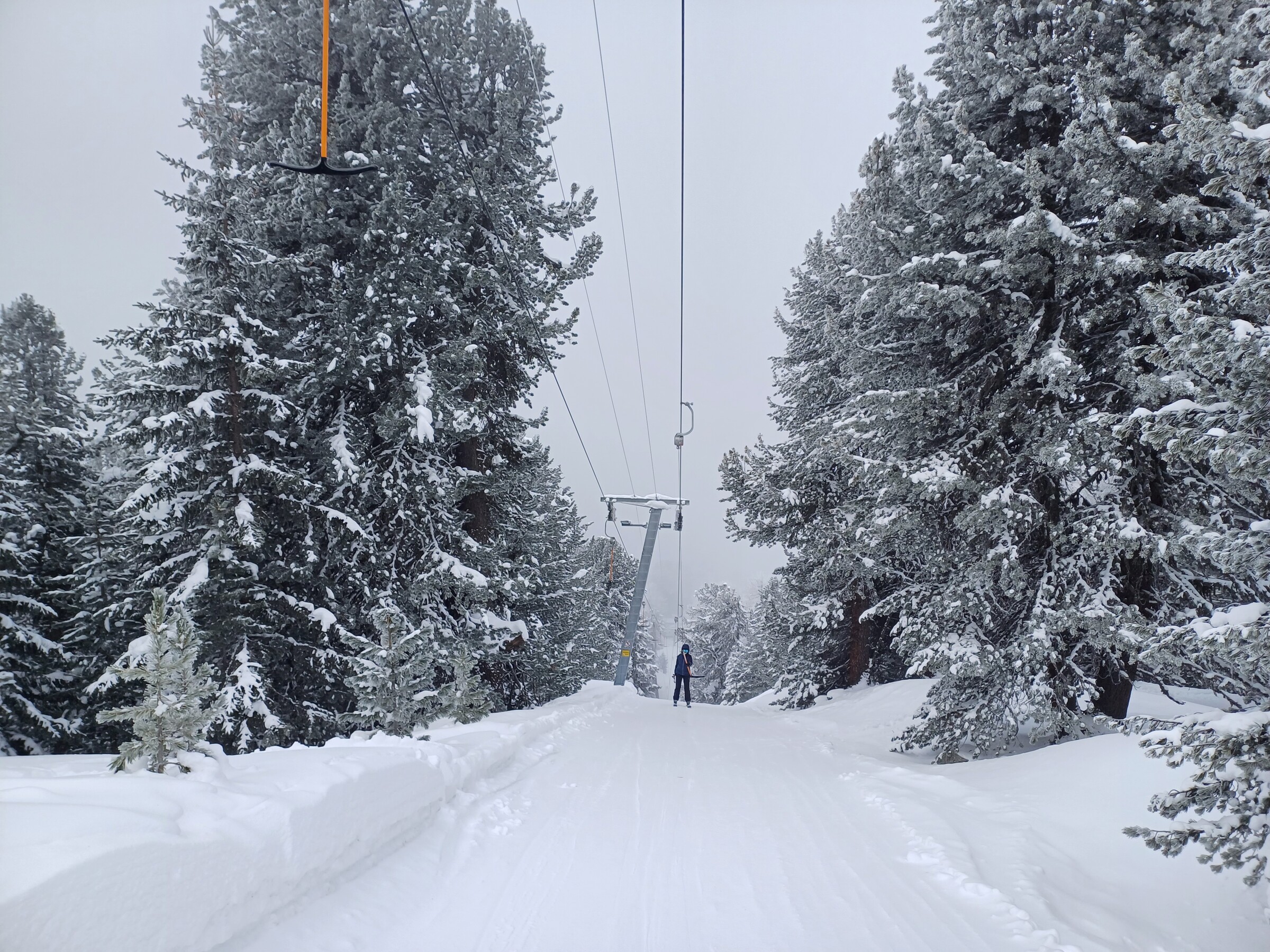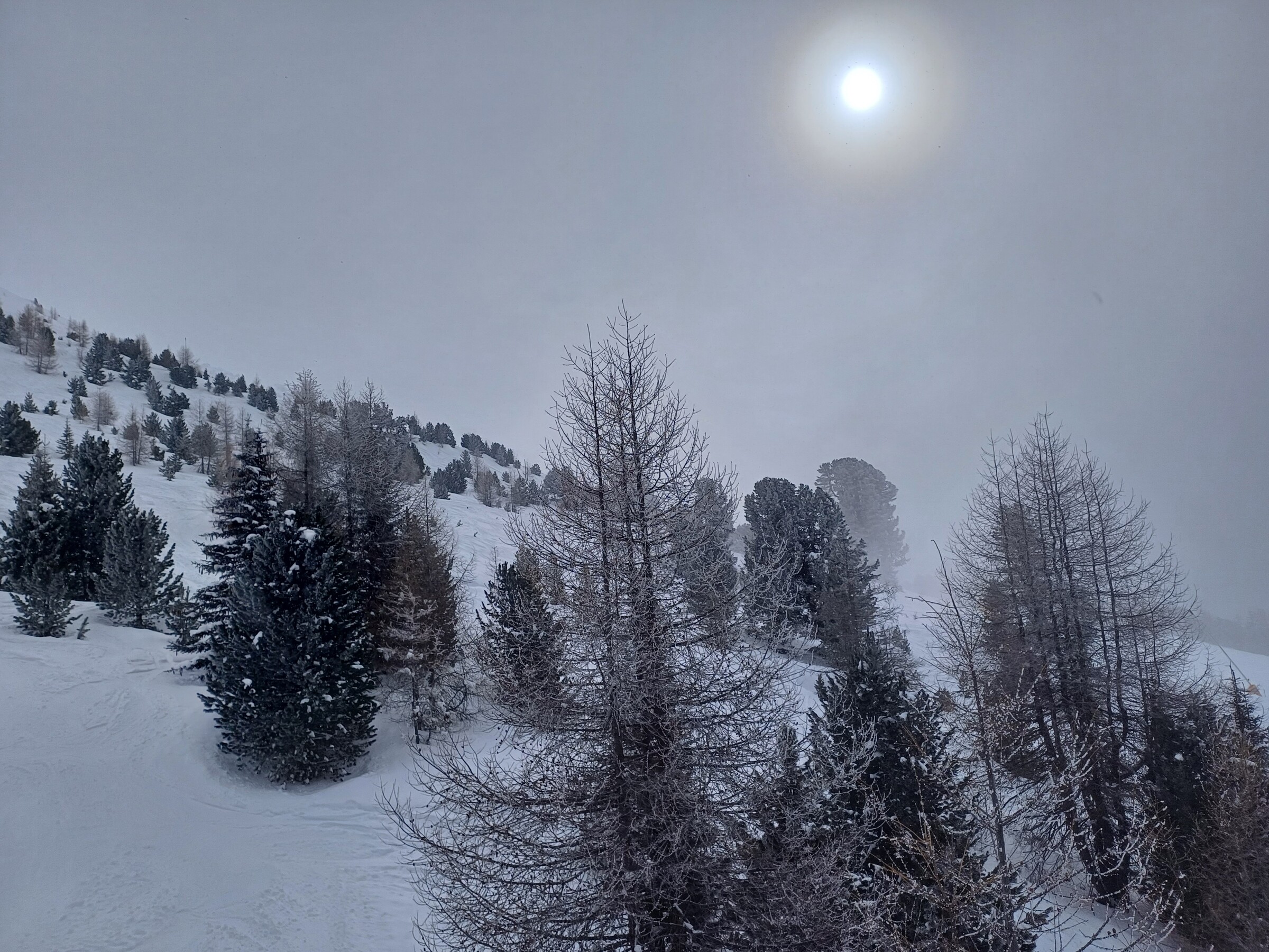 Gleich in der Früh sind wir zur Tscheyeggbahn, leider ab der Hälfte wirklich null Sicht, war zum Vergessen. Ein absoluter Blindflug und mir wurde seit langem wieder mal übel und schwindelig. Die Bahn hatte kurze Zeit später einen Defekt und fiel den Rest des Tages aus. Der Rest hat mir eigentlich ganz gut gefallen. Schöne Zirbenwälder (Ich glaube es sind Zirben).