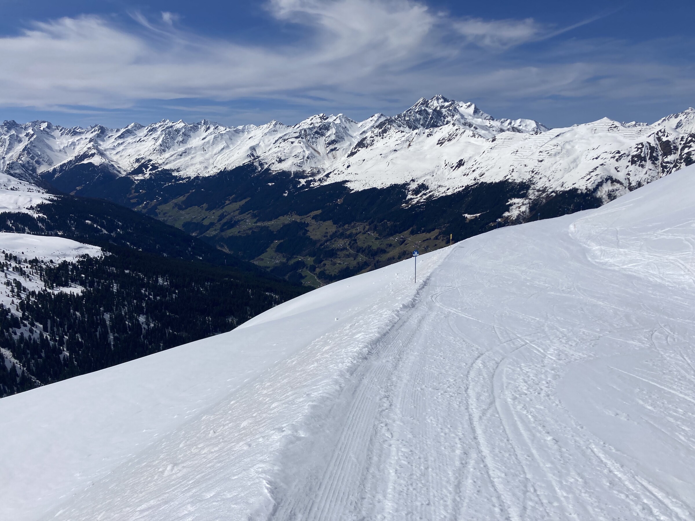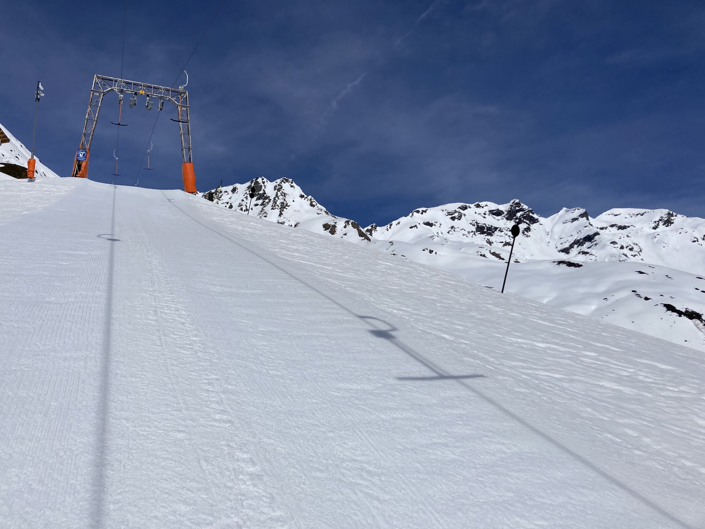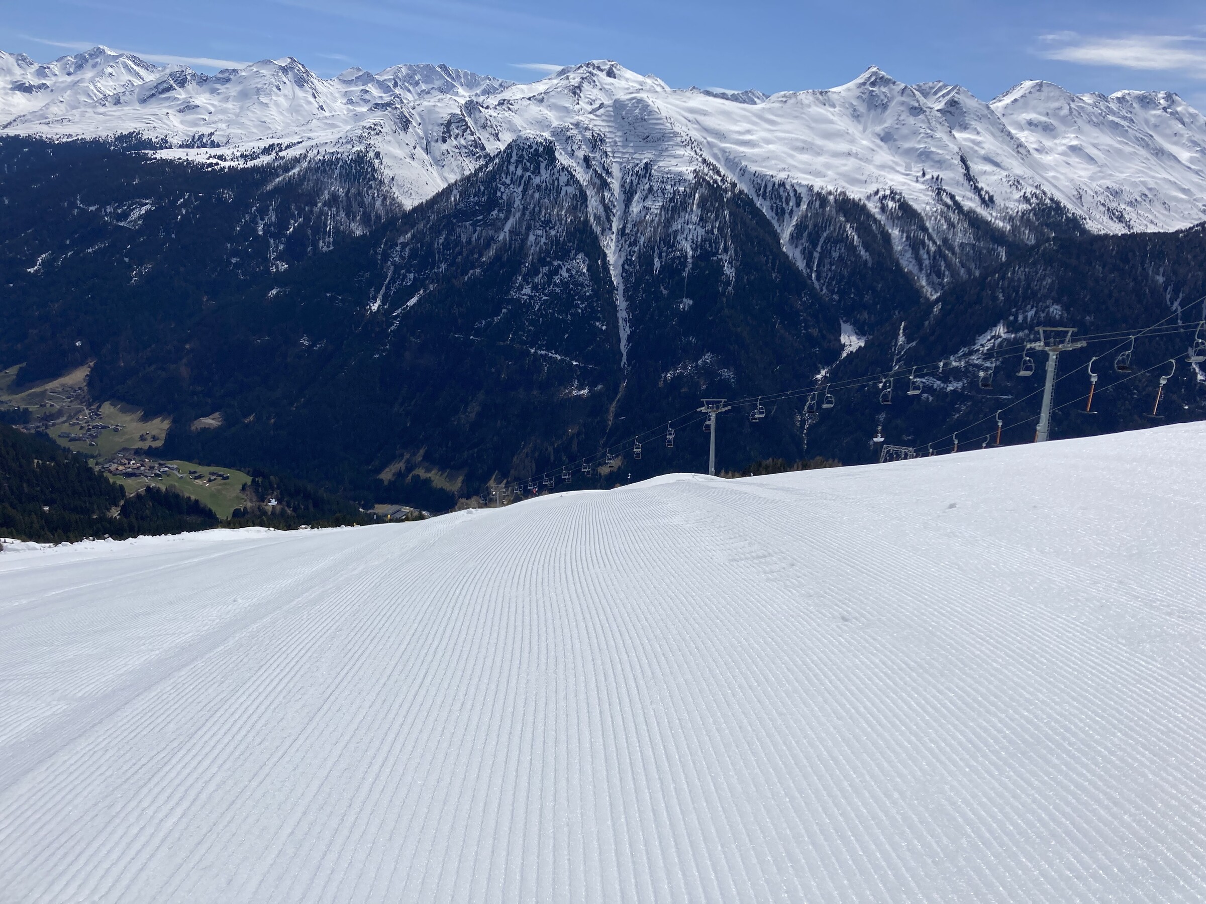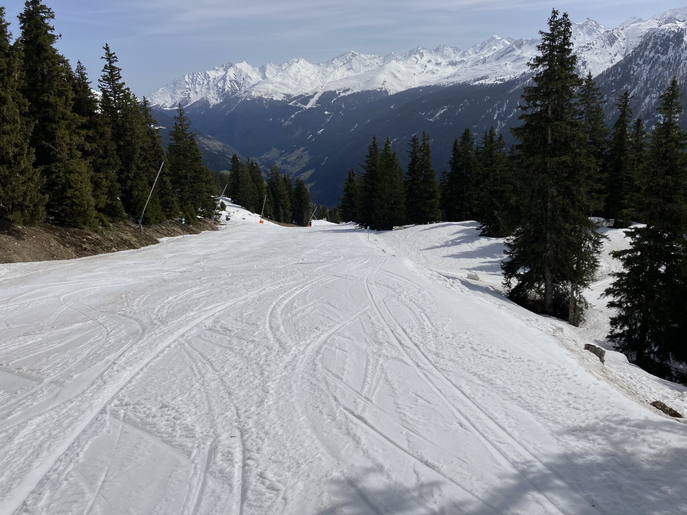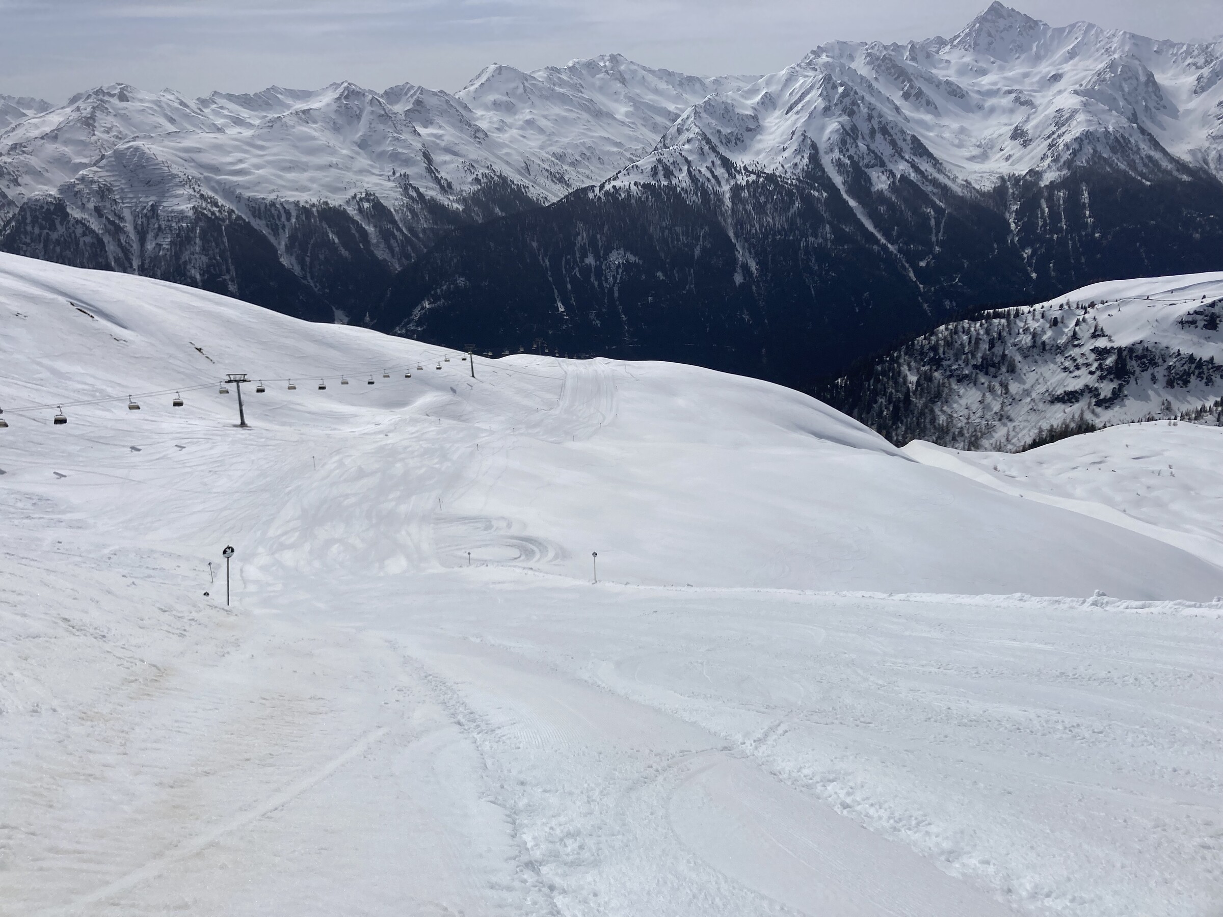 - Der gemeinsame Skipass macht an sich schon Sinn. Im Frühjahr bei diesen Bedingungen erfordert es aber hohe Disziplin, da der Wechsel „Hang zu Hang“ locker 45 Minuten dauert und man damit einen Teil des Firnfensters opfern muss - also auf der Südseite gehen, wenn es am besten ist und hoffen, dass man trotzdem nicht zu spät auf der Westseite ist. Das habe ich an beiden Tagen nicht wirklich geschafft bzw. geht das Auffirnen bei diesen Bedingungen dann auch zu schnell. Aber generell bei ‚normaleren‘ Frühjahrsbedingungen schon eine gute Idee - auch wenn ich wohl kein wirklicher Fan der Pisten in See werde und das Gesagte für das (an sich interessante) Gelände nochmals strenger gilt.