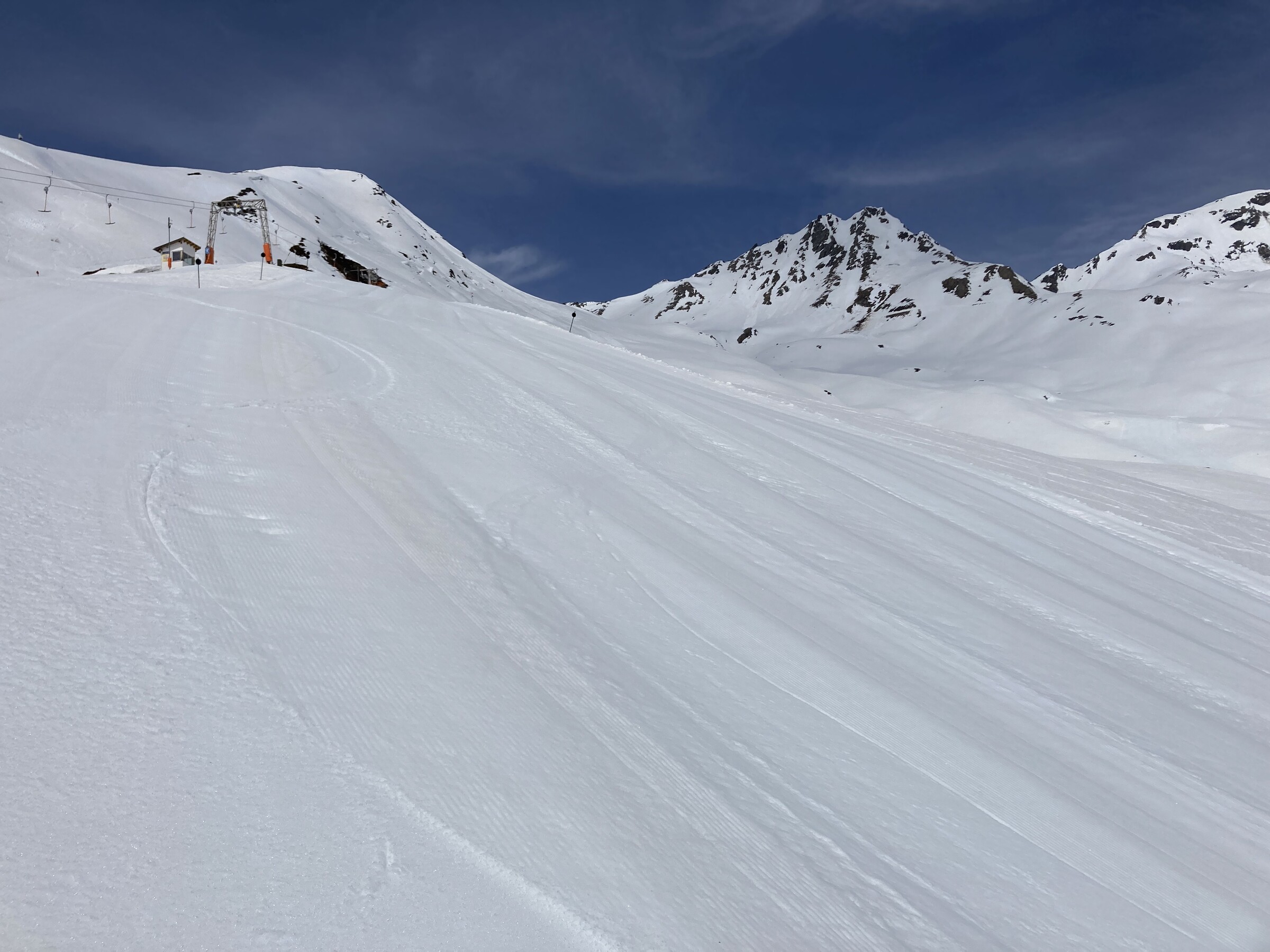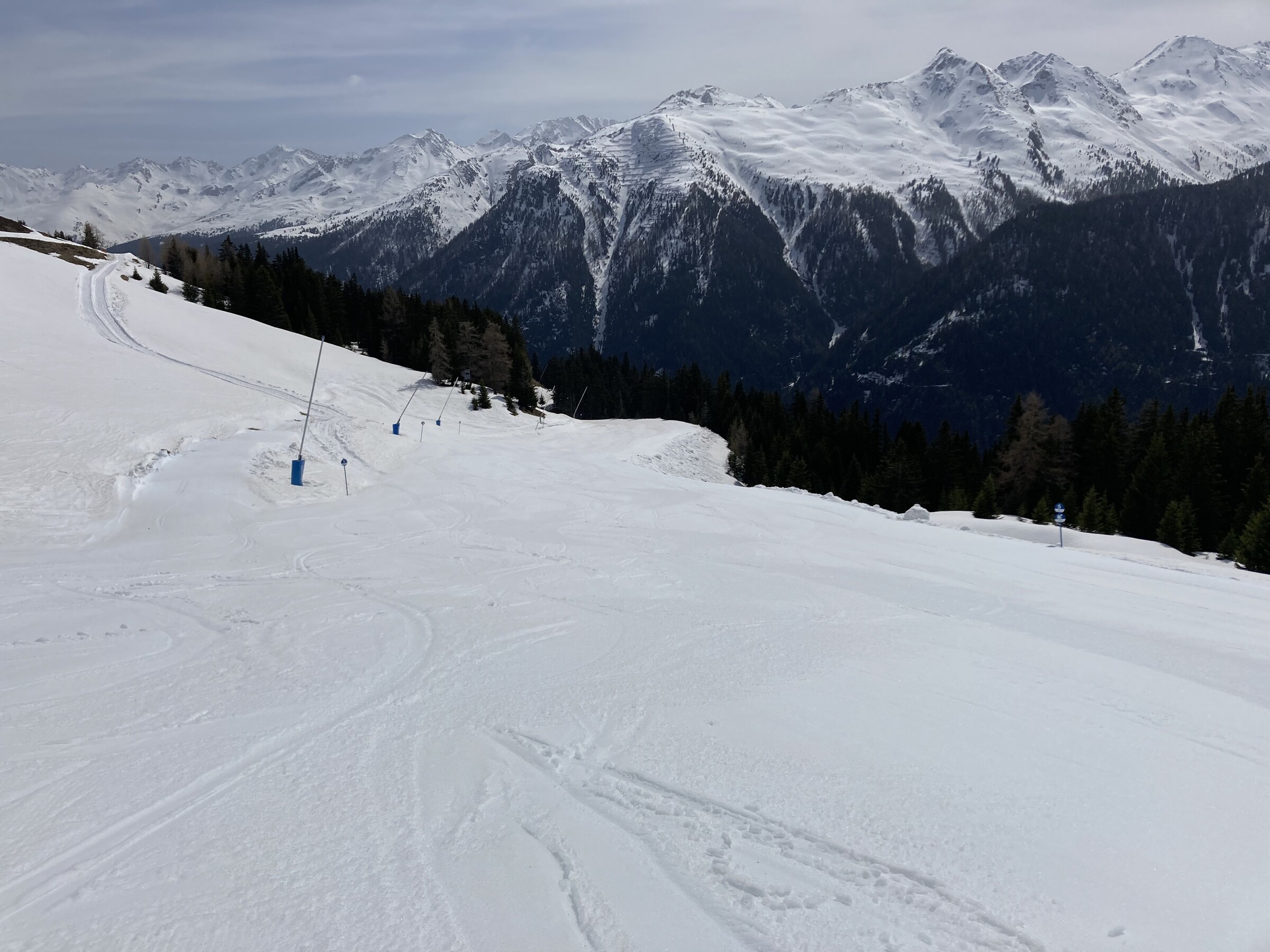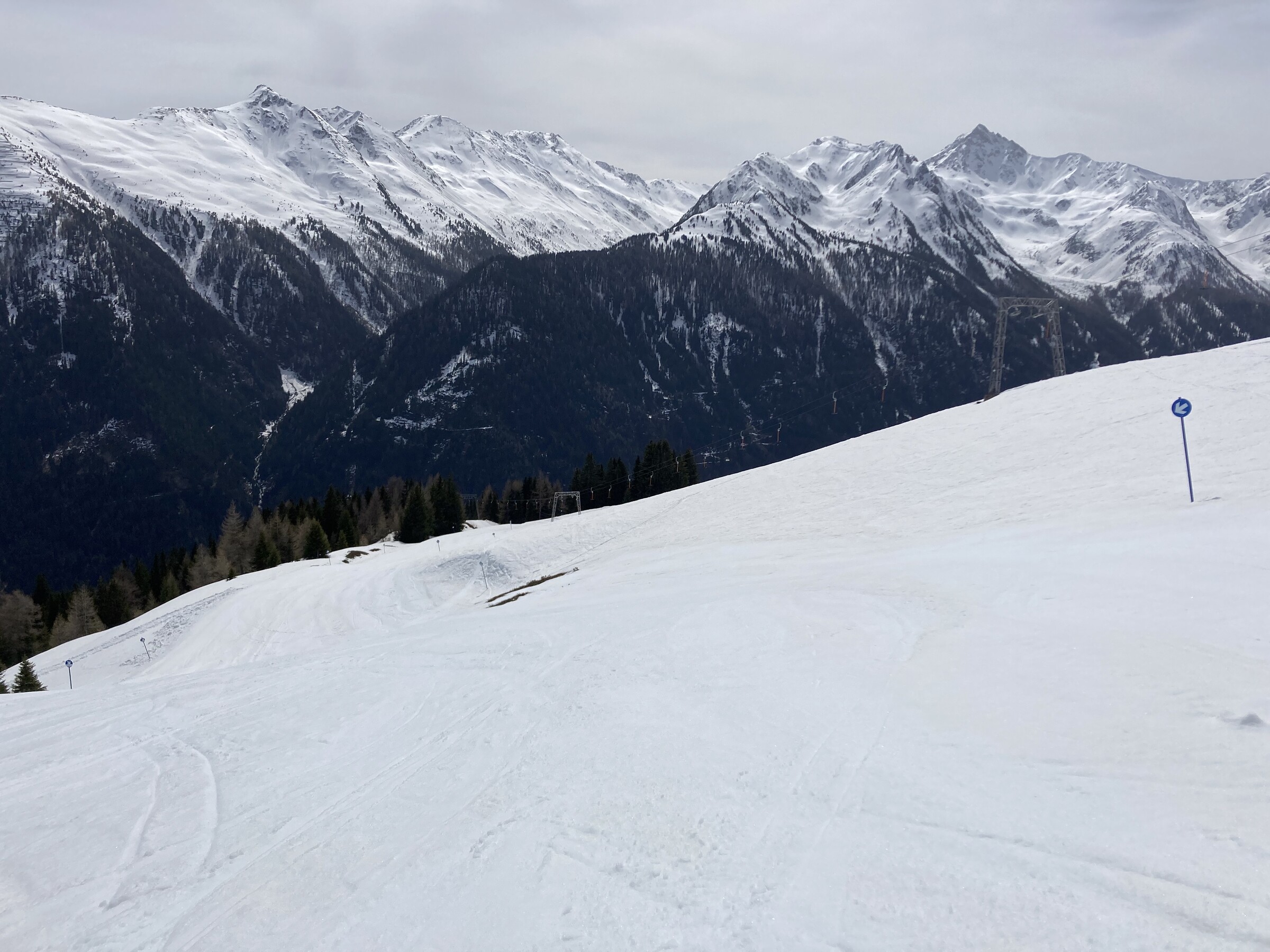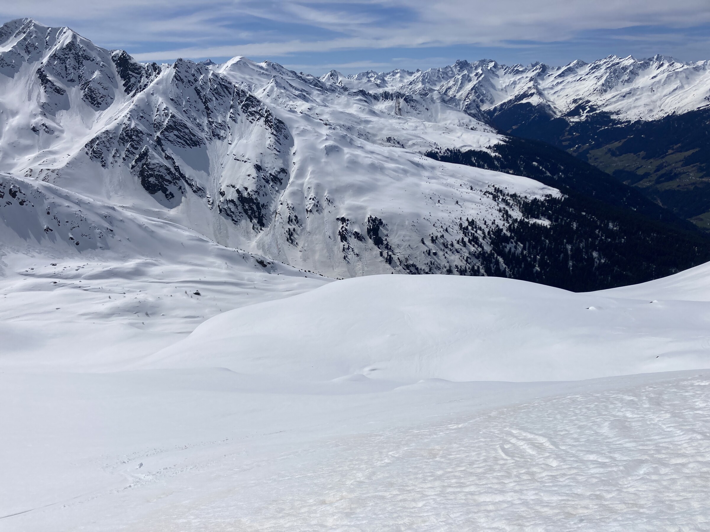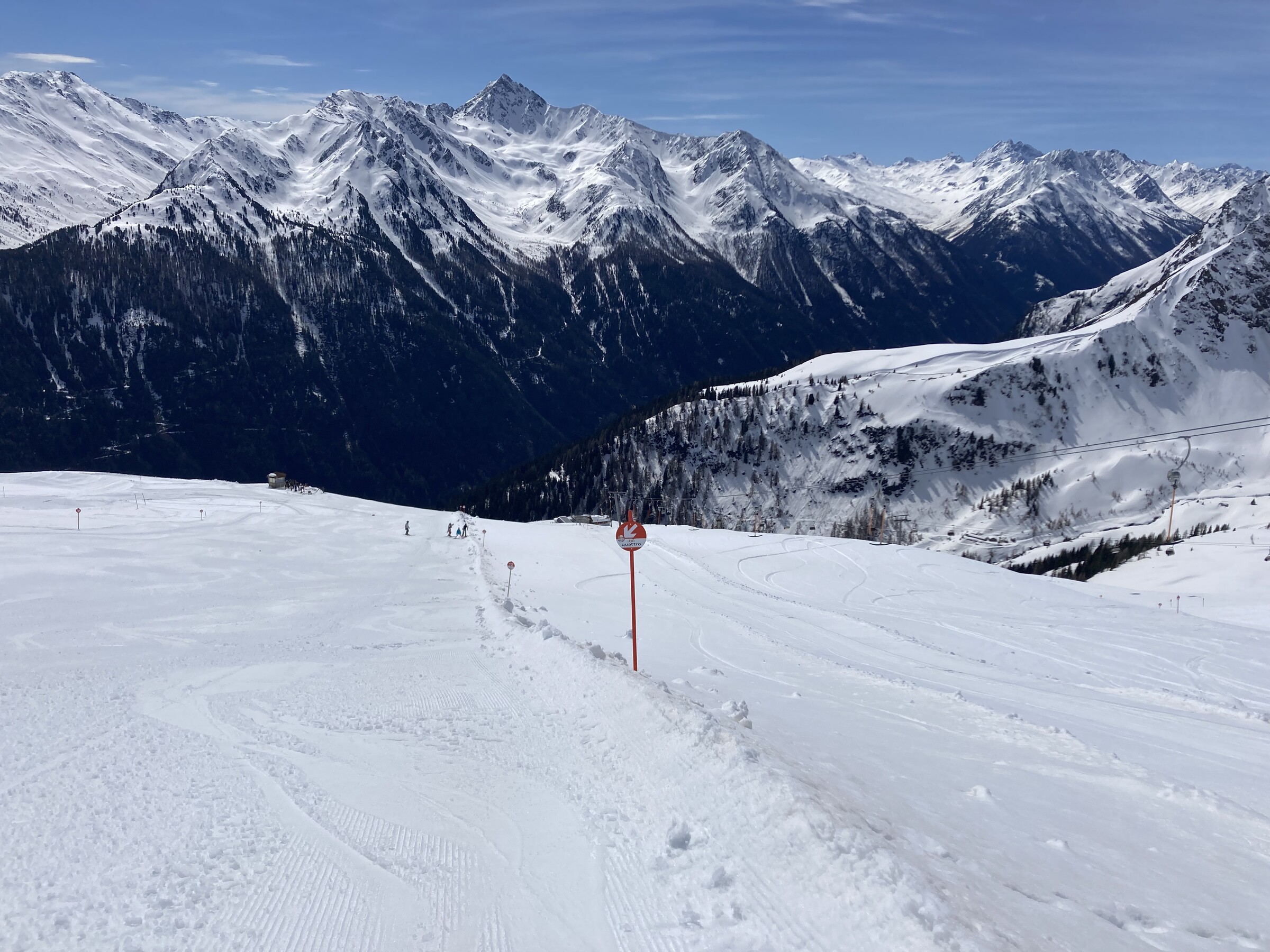 - Der gemeinsame Skipass macht an sich schon Sinn. Im Frühjahr bei diesen Bedingungen erfordert es aber hohe Disziplin, da der Wechsel „Hang zu Hang“ locker 45 Minuten dauert und man damit einen Teil des Firnfensters opfern muss - also auf der Südseite gehen, wenn es am besten ist und hoffen, dass man trotzdem nicht zu spät auf der Westseite ist. Das habe ich an beiden Tagen nicht wirklich geschafft bzw. geht das Auffirnen bei diesen Bedingungen dann auch zu schnell. Aber generell bei ‚normaleren‘ Frühjahrsbedingungen schon eine gute Idee - auch wenn ich wohl kein wirklicher Fan der Pisten in See werde und das Gesagte für das (an sich interessante) Gelände nochmals strenger gilt.
