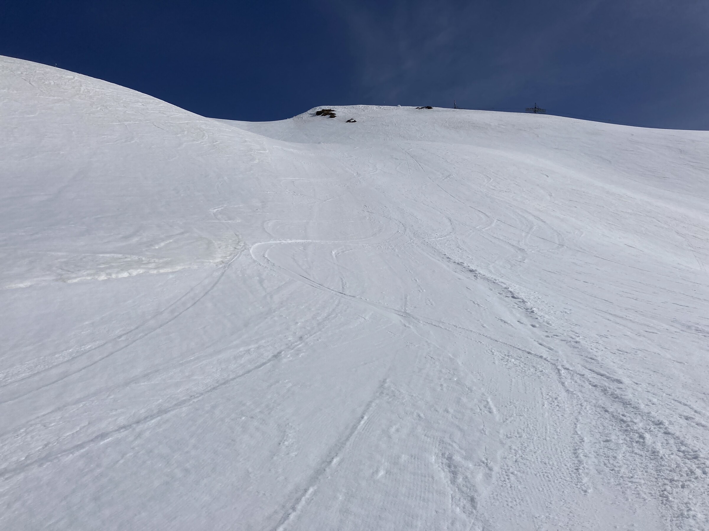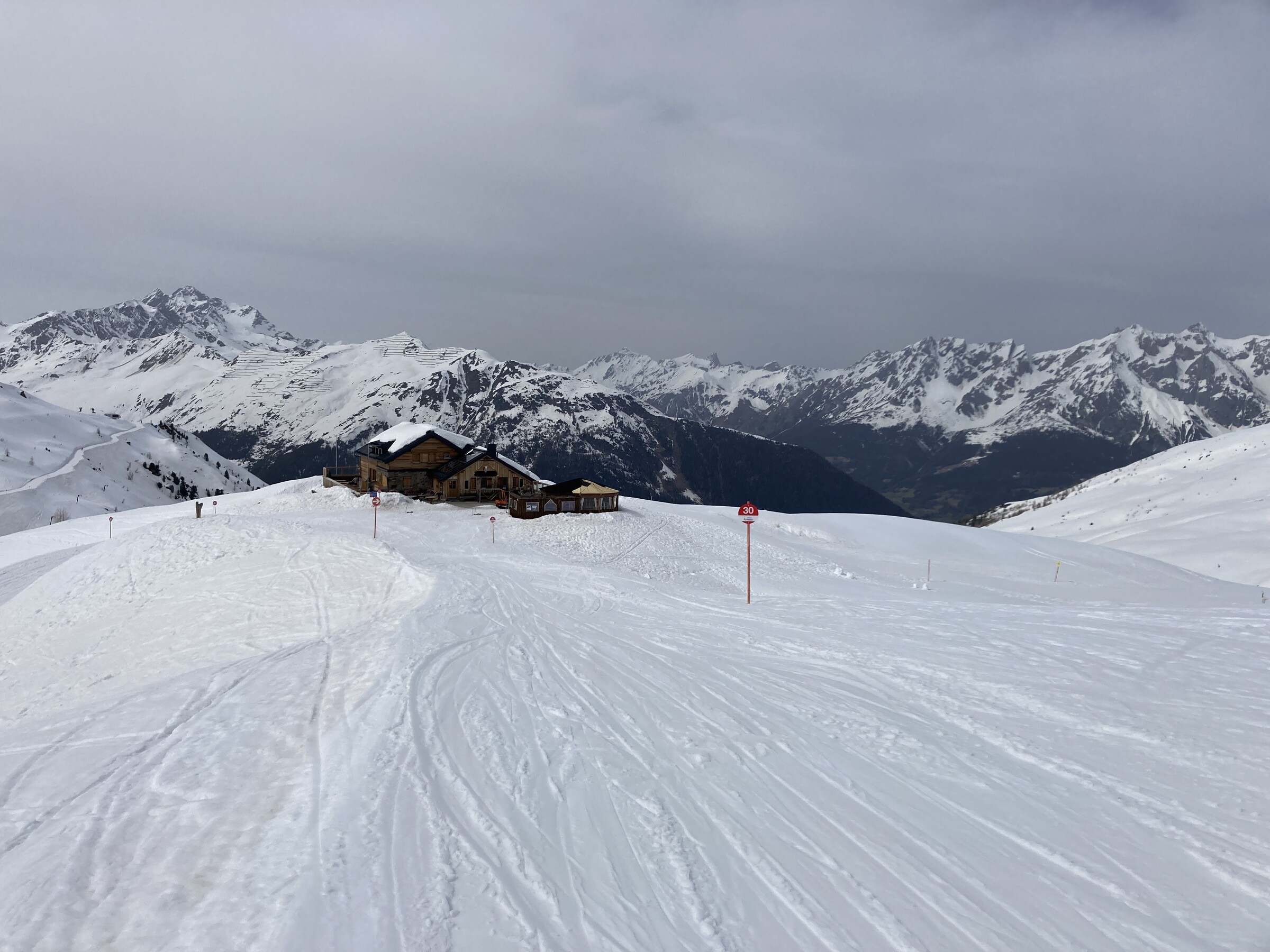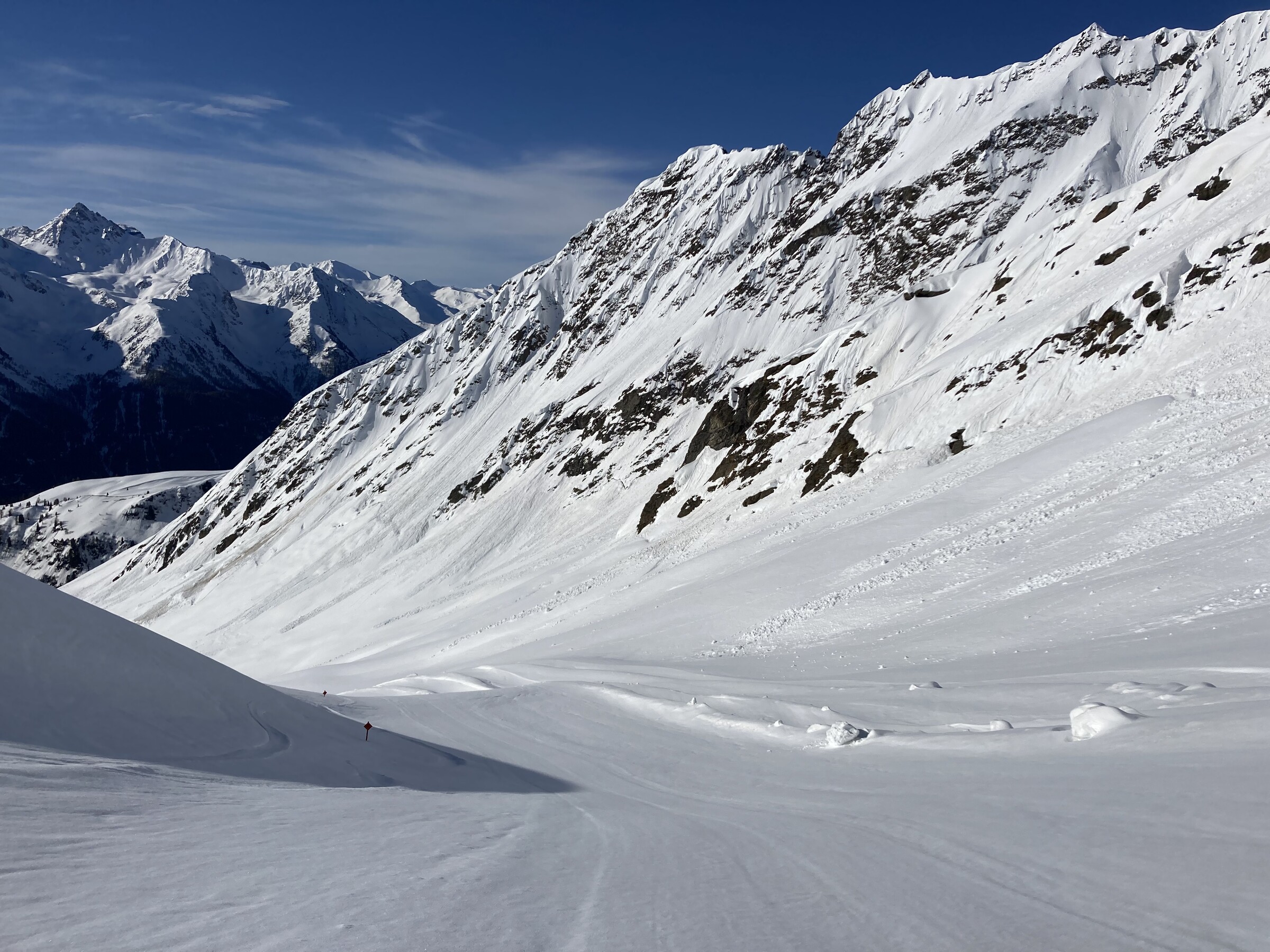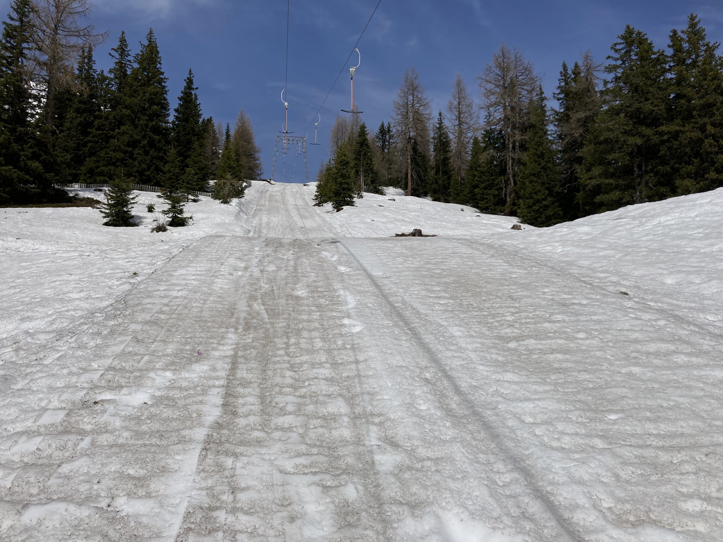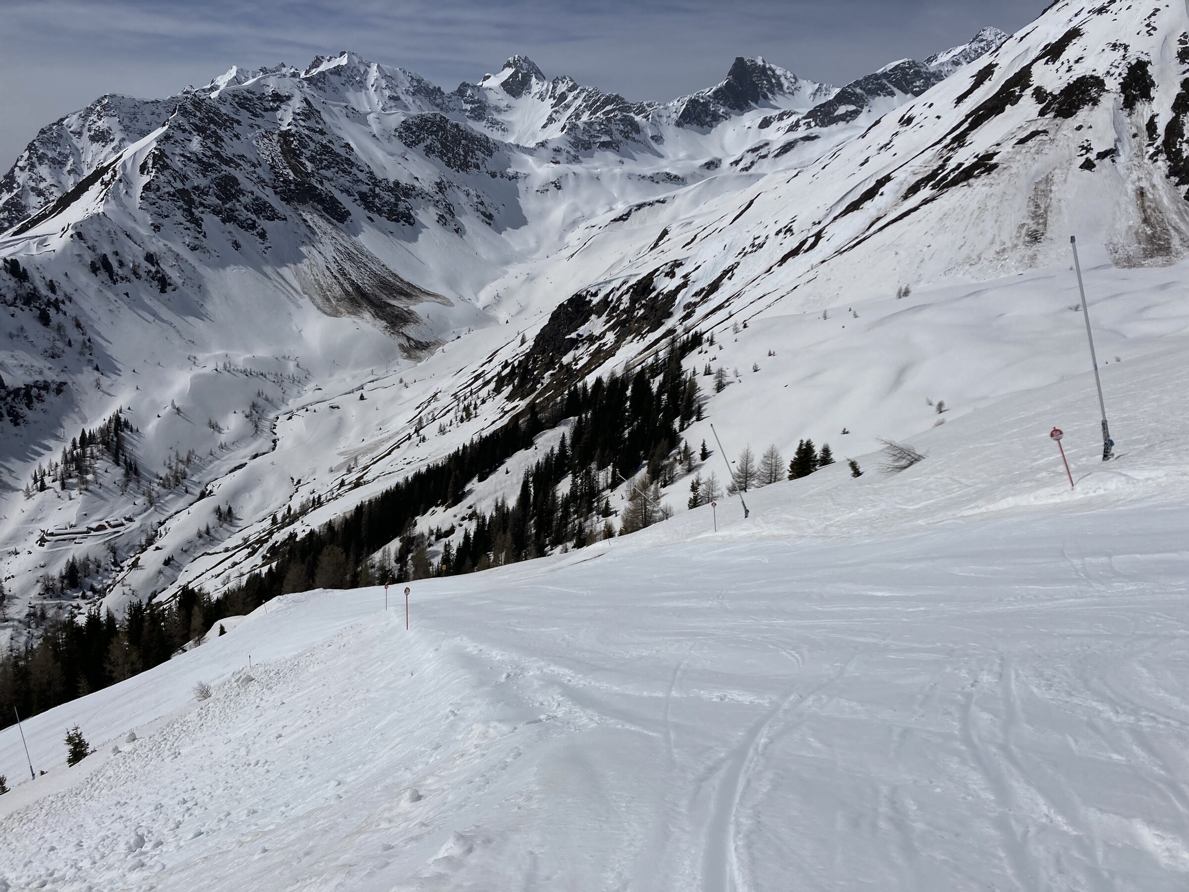 - Der gemeinsame Skipass macht an sich schon Sinn. Im Frühjahr bei diesen Bedingungen erfordert es aber hohe Disziplin, da der Wechsel „Hang zu Hang“ locker 45 Minuten dauert und man damit einen Teil des Firnfensters opfern muss - also auf der Südseite gehen, wenn es am besten ist und hoffen, dass man trotzdem nicht zu spät auf der Westseite ist. Das habe ich an beiden Tagen nicht wirklich geschafft bzw. geht das Auffirnen bei diesen Bedingungen dann auch zu schnell. Aber generell bei ‚normaleren‘ Frühjahrsbedingungen schon eine gute Idee - auch wenn ich wohl kein wirklicher Fan der Pisten in See werde und das Gesagte für das (an sich interessante) Gelände nochmals strenger gilt.
