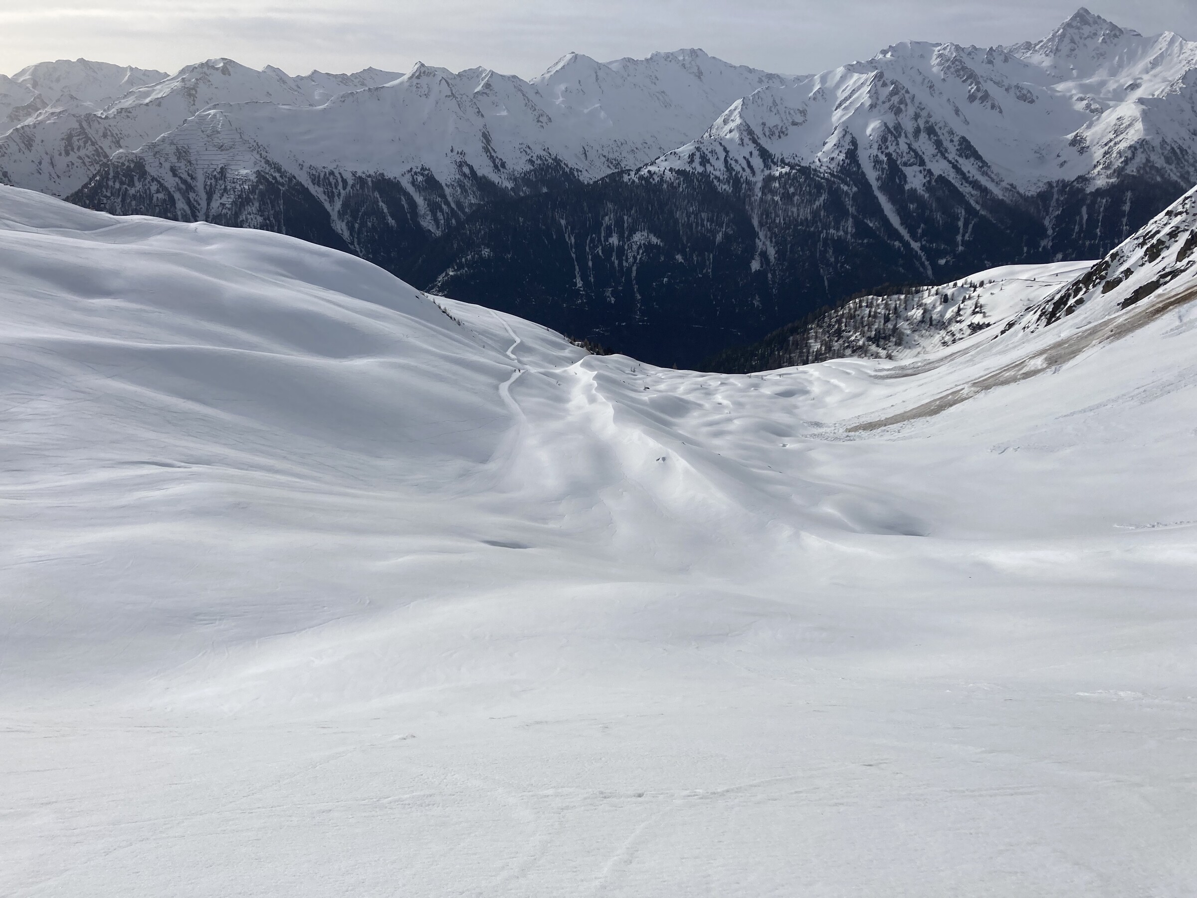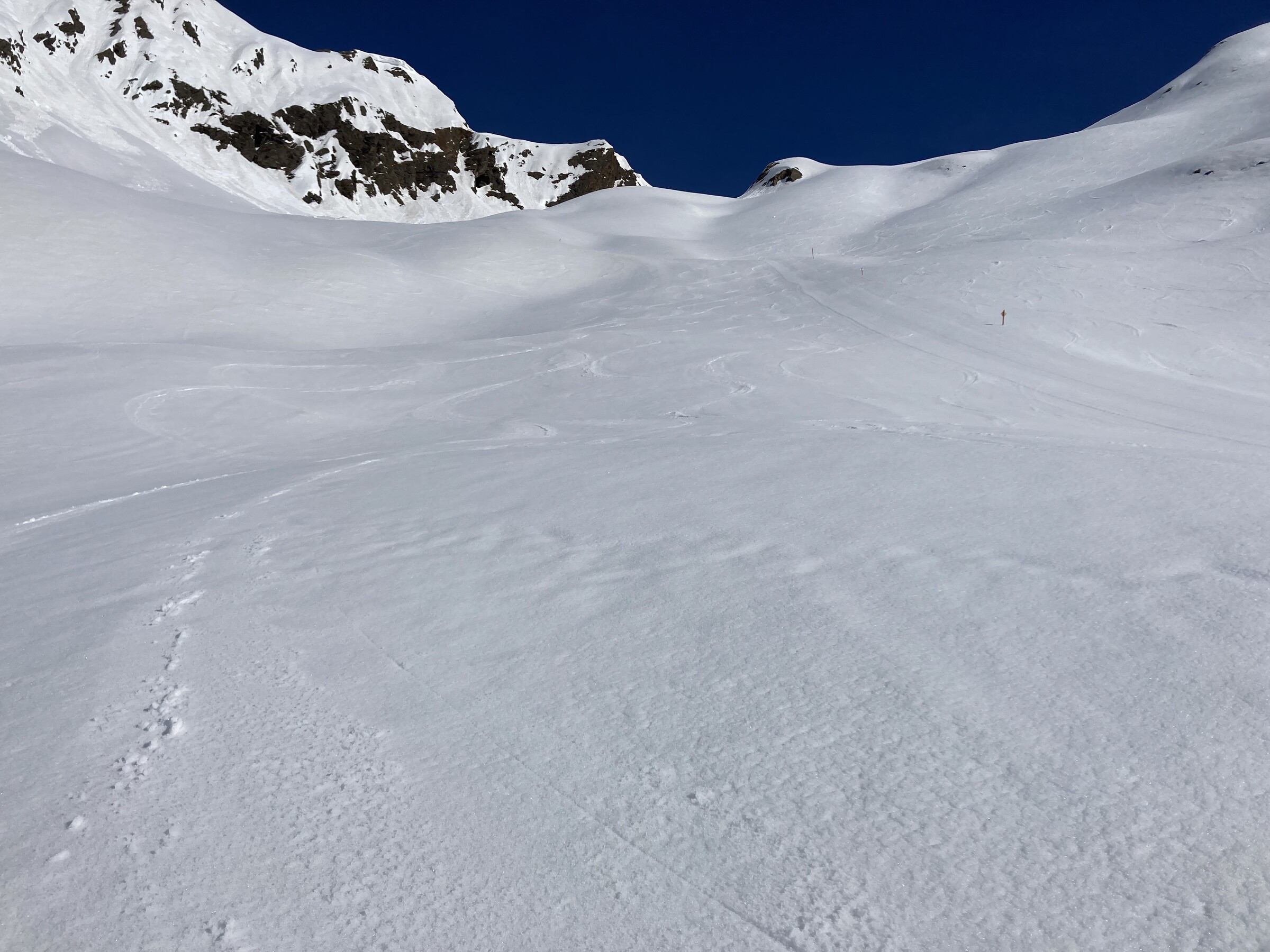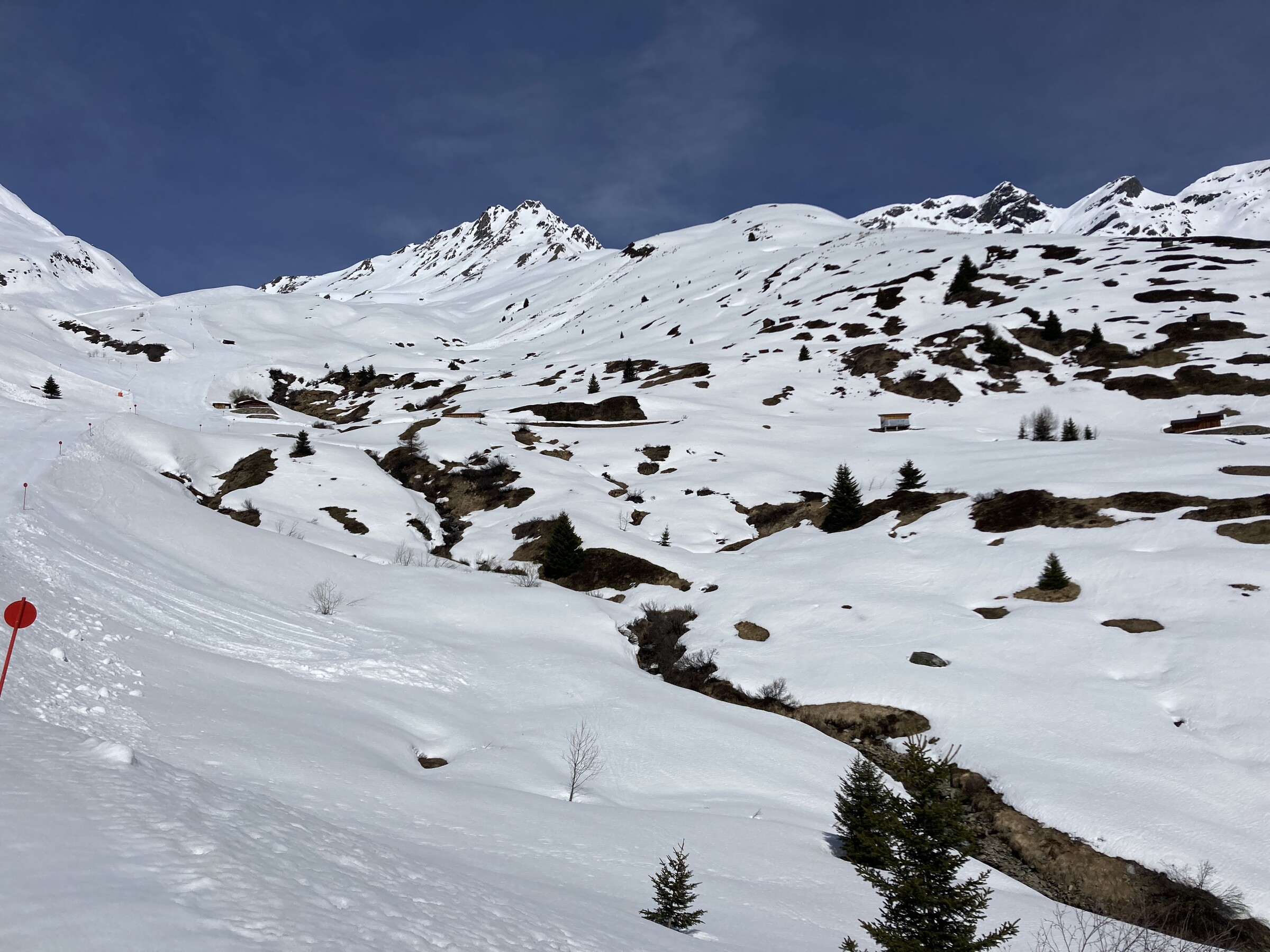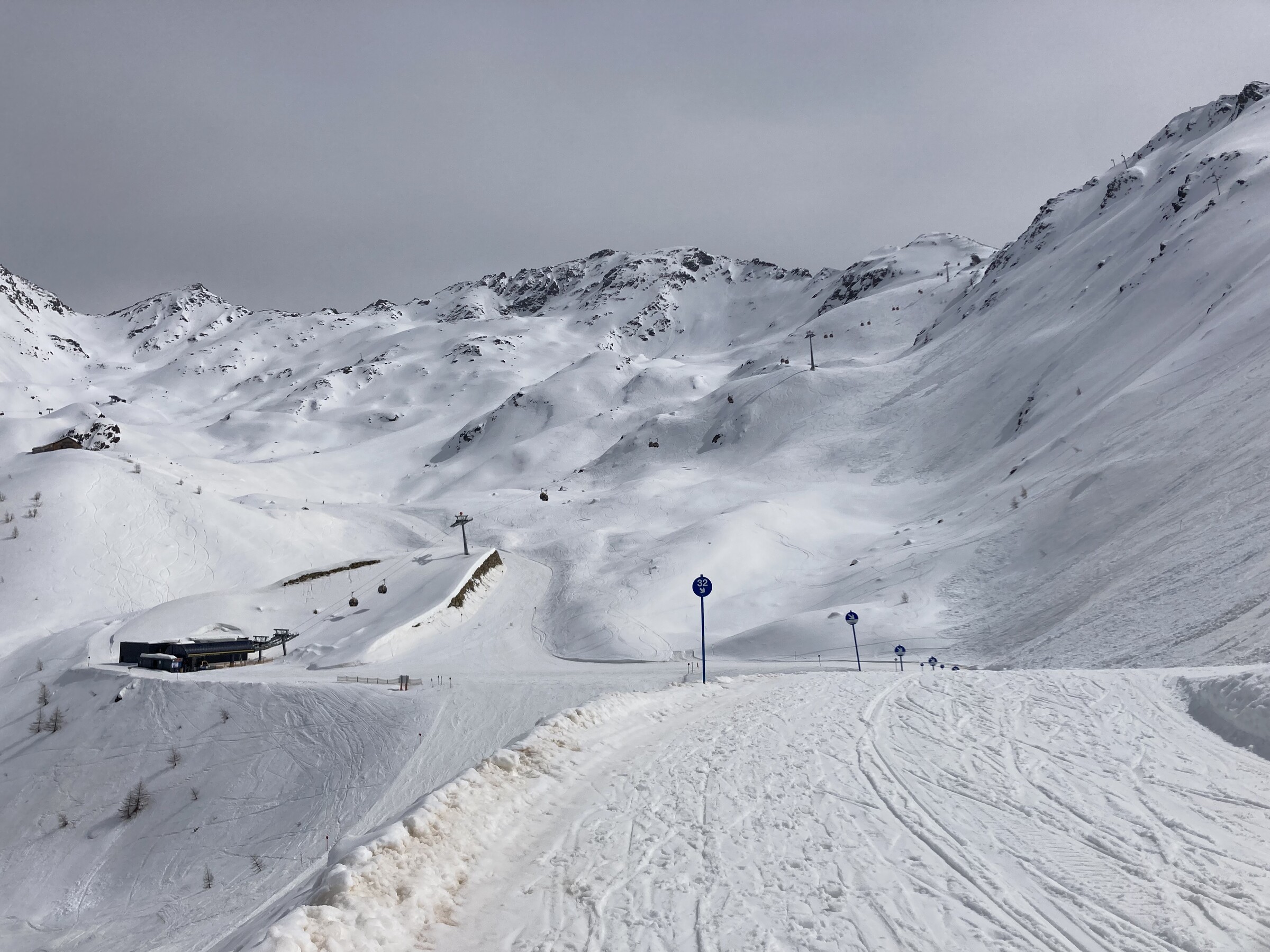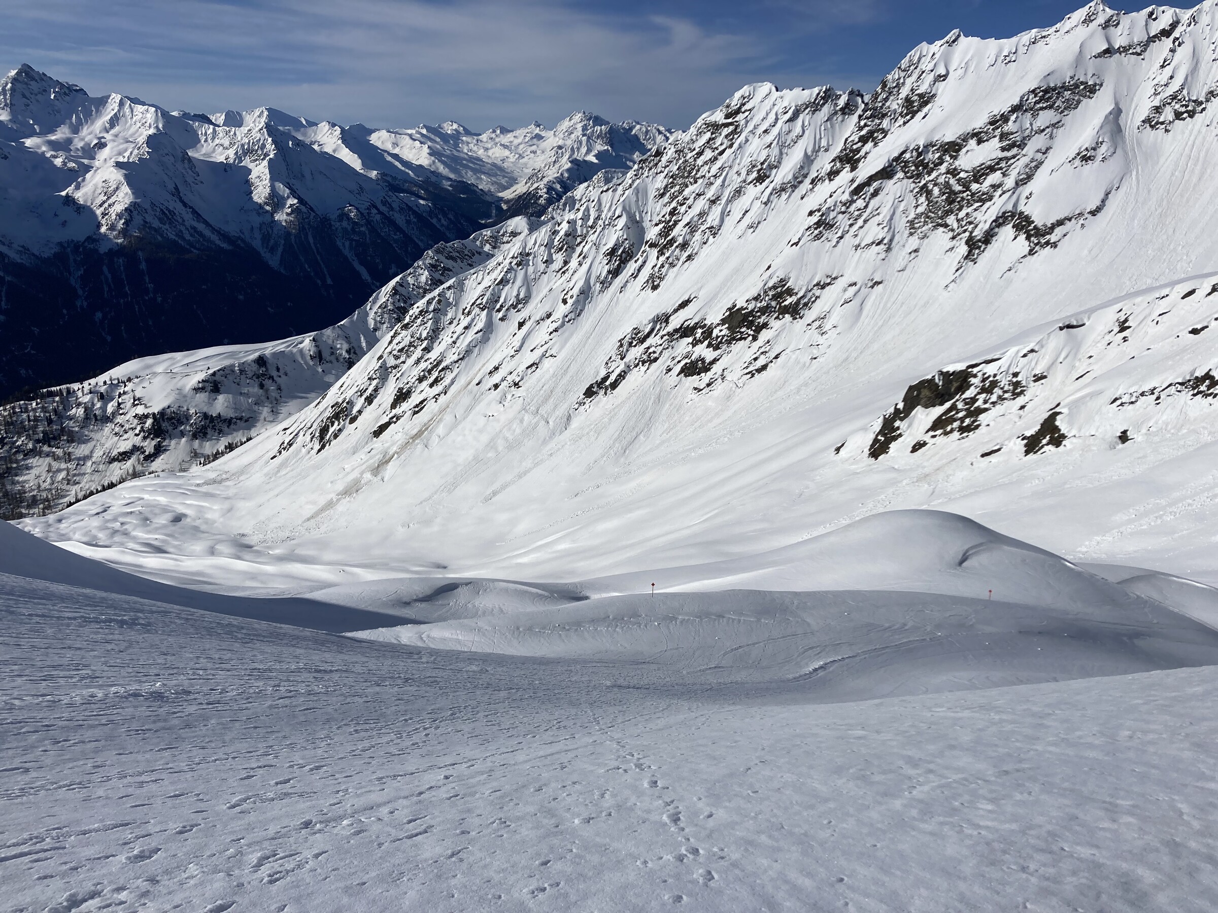 - Der gemeinsame Skipass macht an sich schon Sinn. Im Frühjahr bei diesen Bedingungen erfordert es aber hohe Disziplin, da der Wechsel „Hang zu Hang“ locker 45 Minuten dauert und man damit einen Teil des Firnfensters opfern muss - also auf der Südseite gehen, wenn es am besten ist und hoffen, dass man trotzdem nicht zu spät auf der Westseite ist. Das habe ich an beiden Tagen nicht wirklich geschafft bzw. geht das Auffirnen bei diesen Bedingungen dann auch zu schnell. Aber generell bei ‚normaleren‘ Frühjahrsbedingungen schon eine gute Idee - auch wenn ich wohl kein wirklicher Fan der Pisten in See werde und das Gesagte für das (an sich interessante) Gelände nochmals strenger gilt.
