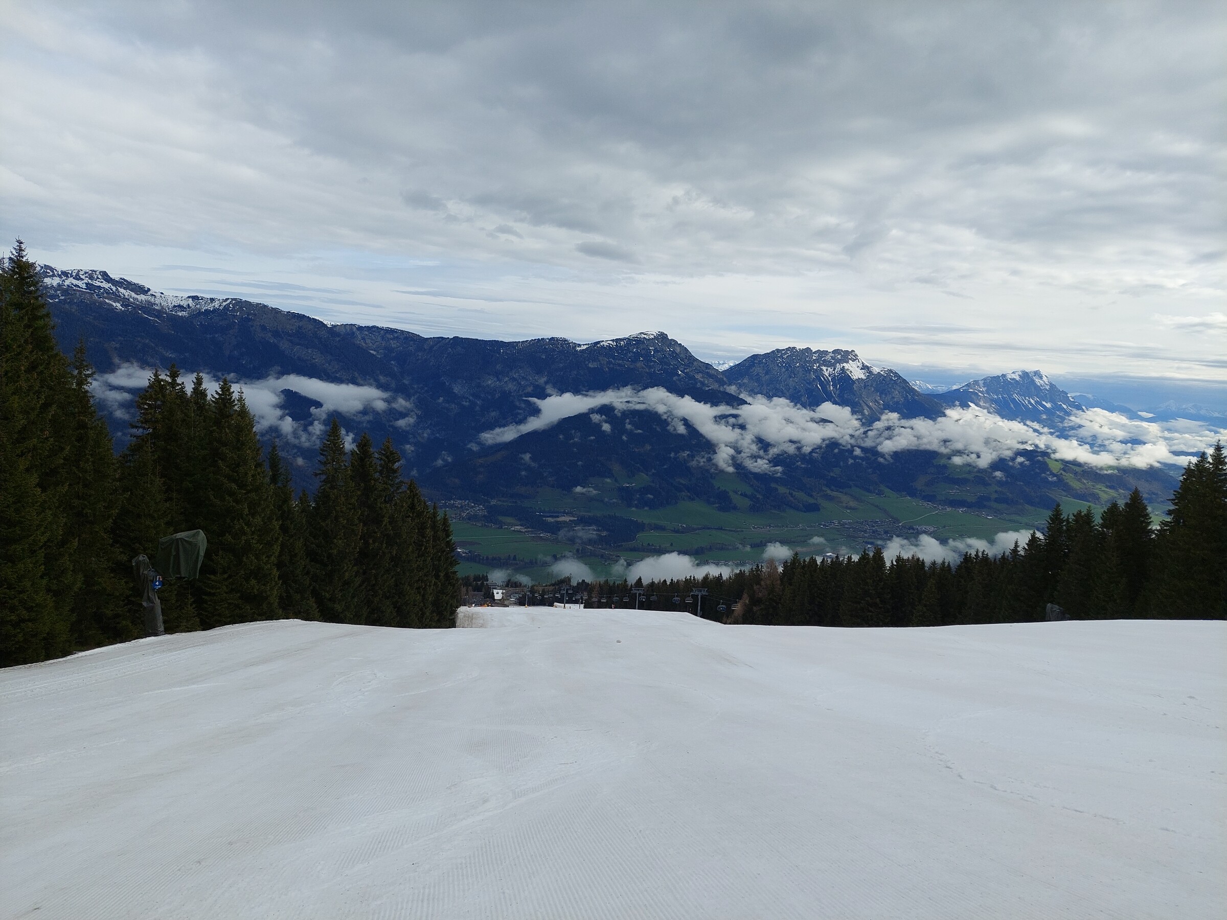 Genau 7 Tage vorher sind wir durchs Ennstal nach Wagrain angereist und da waren ja schon alle Talabfahrt im Ennstal mehr braun als grün und ich glaube auch schon alle geschlossen. Da waren wir froh, dass es für uns über Ostern die Sportwelt wurde, wo noch einige Talabfahrten offen waren. Aber oben ging es dann ja auf allen Bergen zum Glück noch gut.