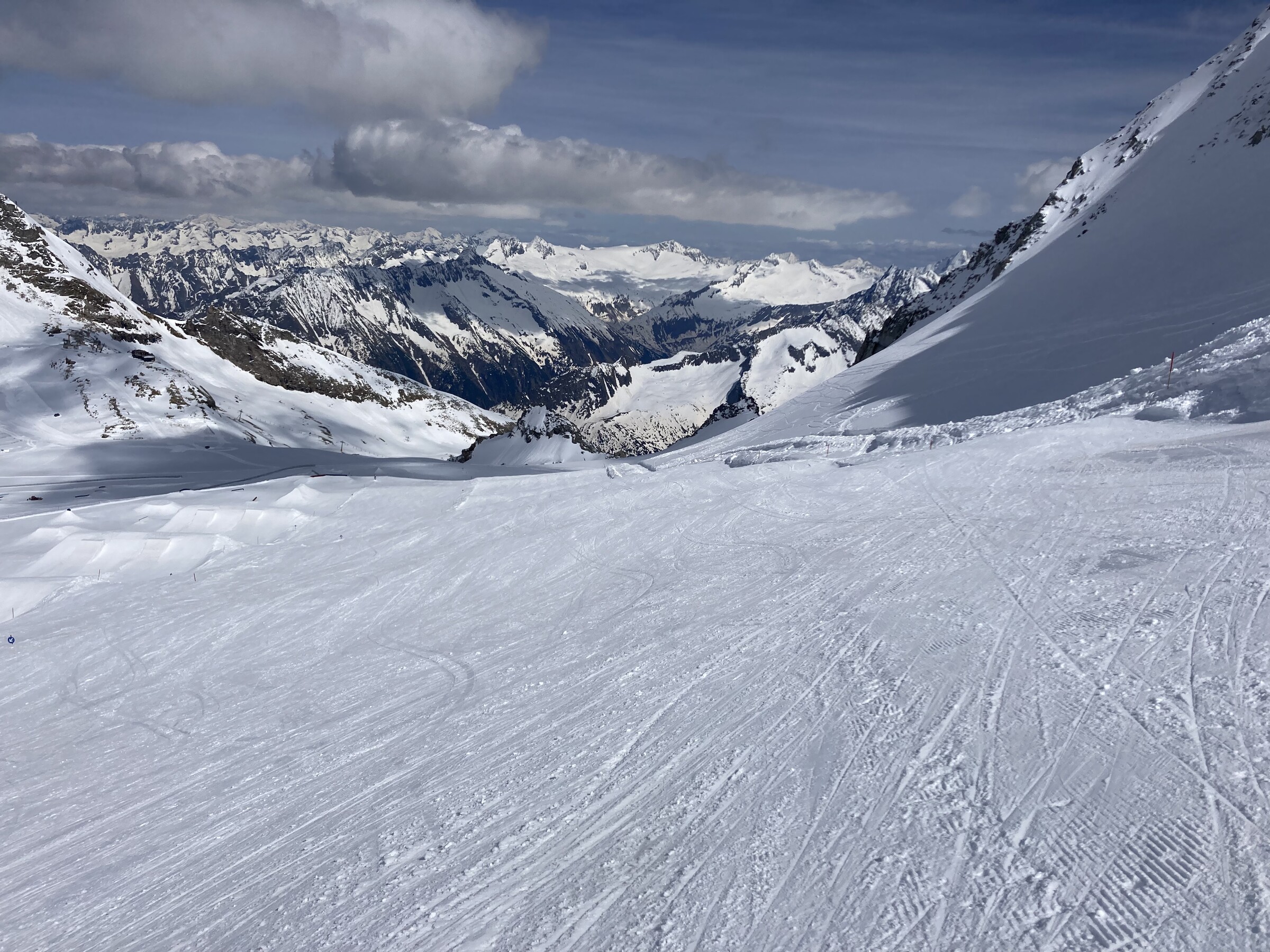 Nach einer längeren Pause ging es um 15 Uhr nochmal ganz hoch auf die Pisten. Natürlich sind die Erwartungen nicht hoch und im Vergleich zu diesem Firnzauber kann das so oder so nicht ansatzweise mithalten. Tatsächlich sind die Pisten schon ziemlich zerfahren und teils wuselt es etwas, auch wenn es keine Wartezeiten hat. Ziemlich gut geht aber auch diesmal wieder die äußere Olpererpiste mit ihren (künstlichen?) Kupierungen. (24) Blick von oben auf den ZwiDeGo Hang - wohl noch ein paar Wochen zu früh (25) K2 (26) Die 11a am L2 geht nur im flachen Cruiserstück noch gut (27) Olperer (28) Die äussere Piste geht bis um 4 gut (29) Auf frischer Bullyspur (noch nicht der Präparierung) gehts zum TFH, wo der einzige wirkliche Buckelhang wartet (30) Hier gibts aber eine frische Bullyspur - da keine Piste, auch gut vertretbar (31) Statistik Teil 1 (32) Statistik Teil 2