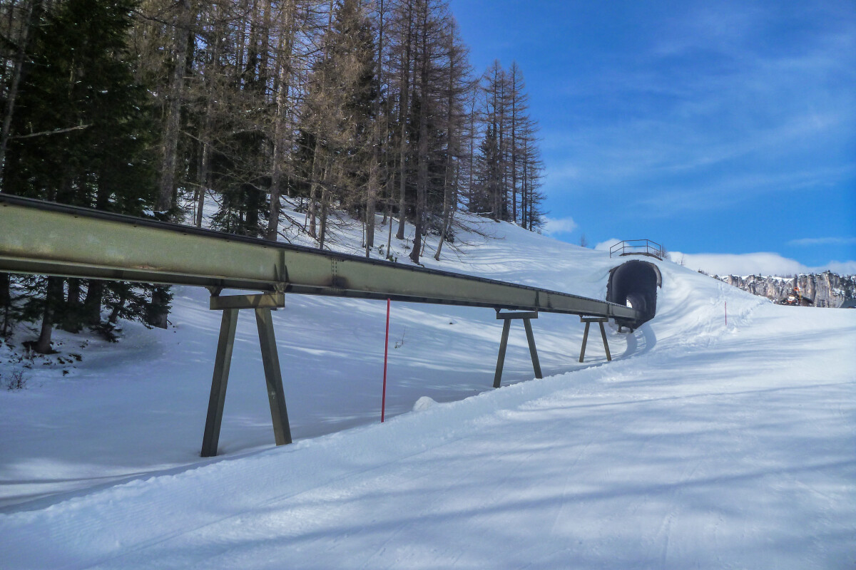 Die Fahrt ist recht interessant – es geht auf Stelzen durch den Wald und zum Teil auch unterirdisch in Richtung Wurzeralm hinauf. Aber im Vergleich zur Auffahrt am Pitztaler Gletscher kann man allenfalls von „Tunnelchen“ sprechen.