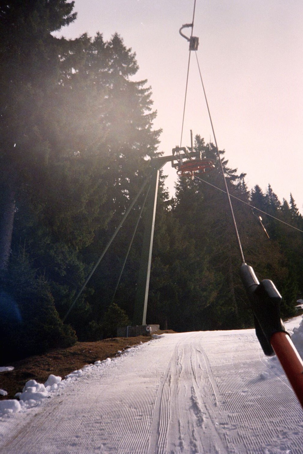 Du wirst lachen, ich war der einzige Skifahrer im ganzen Gebiet. Die Lifte wurden nur für mich ein und danach sofort wieder ausgeschaltet. Der Im ESL iat der Liftler der in die Mittagspause geht. ;-)