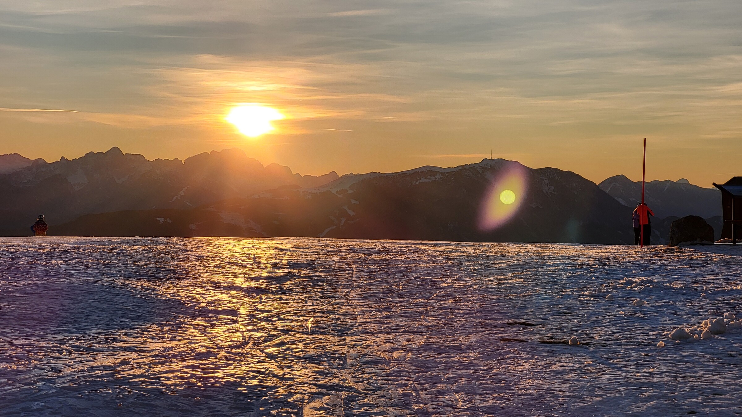 Waren die Pisten morgens noch eher hart, so machte sich schnell der warme Wind bemerkbar. So nässten bereits mittags die Pisten auf und wurden teils sogar leicht sulzig.