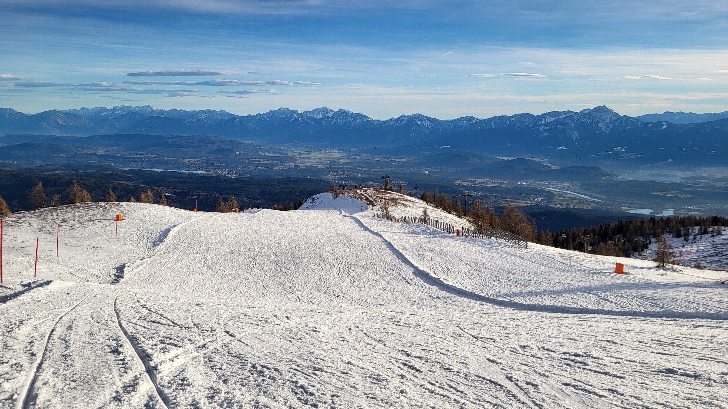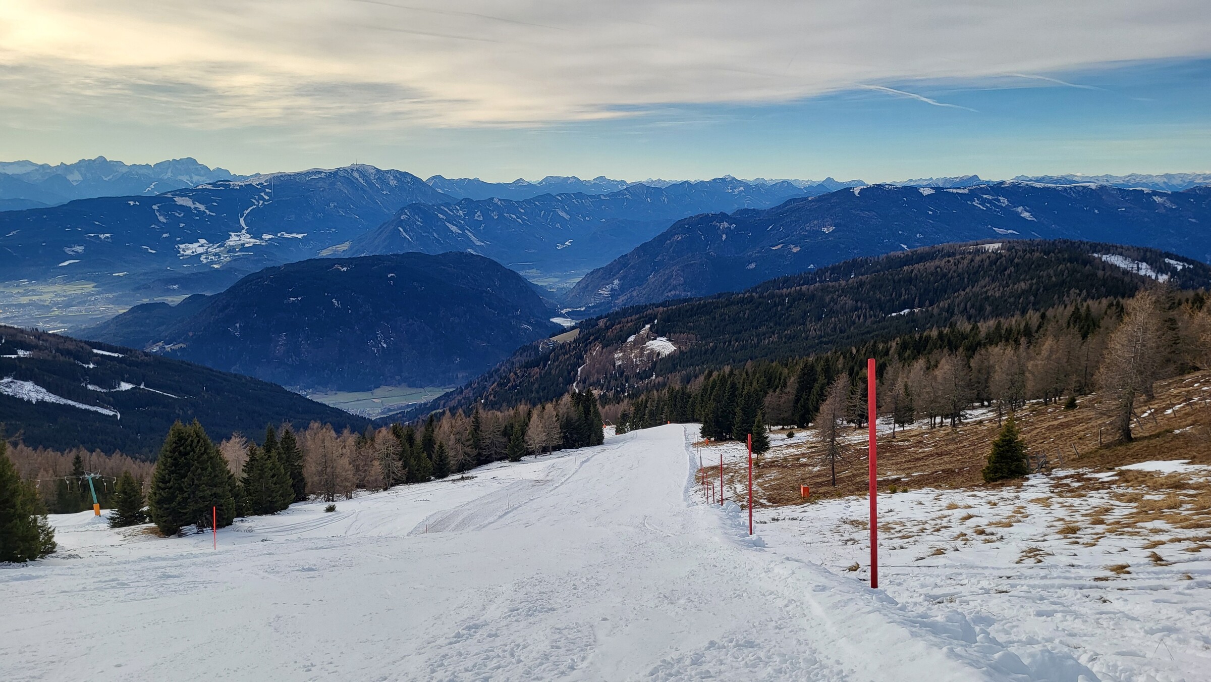 Auf der Gerlitzen die Hauptanlagen geöffnet, meist mit je 1-2 eher schmaleren Pisten aus Kunstschnee.