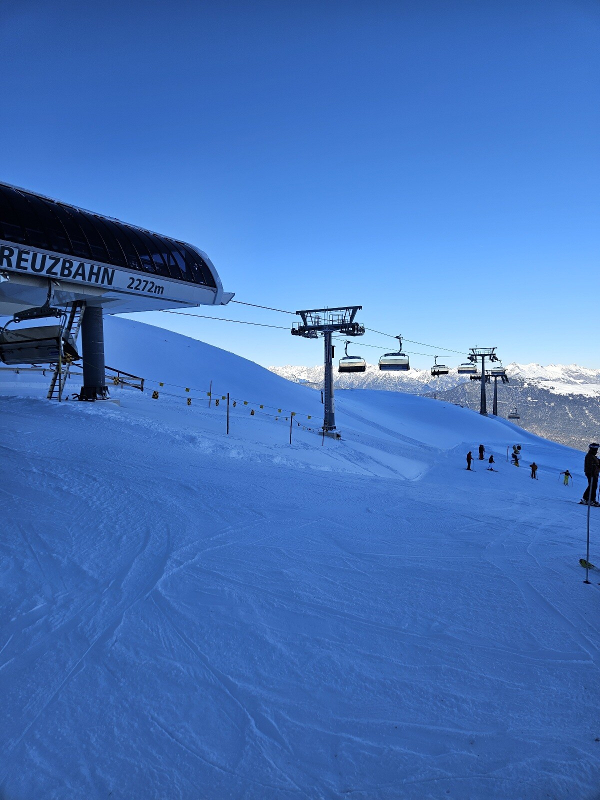 der Ausstieg der Kühtailebahn. Wenn da mal richtig was los ist und auch viele Anfänger dabei sind (ist ja blau), wird das nachmittags vermutlich ein kleiner Problemhang werden..